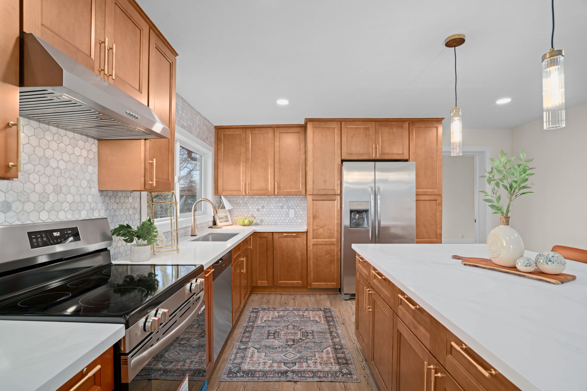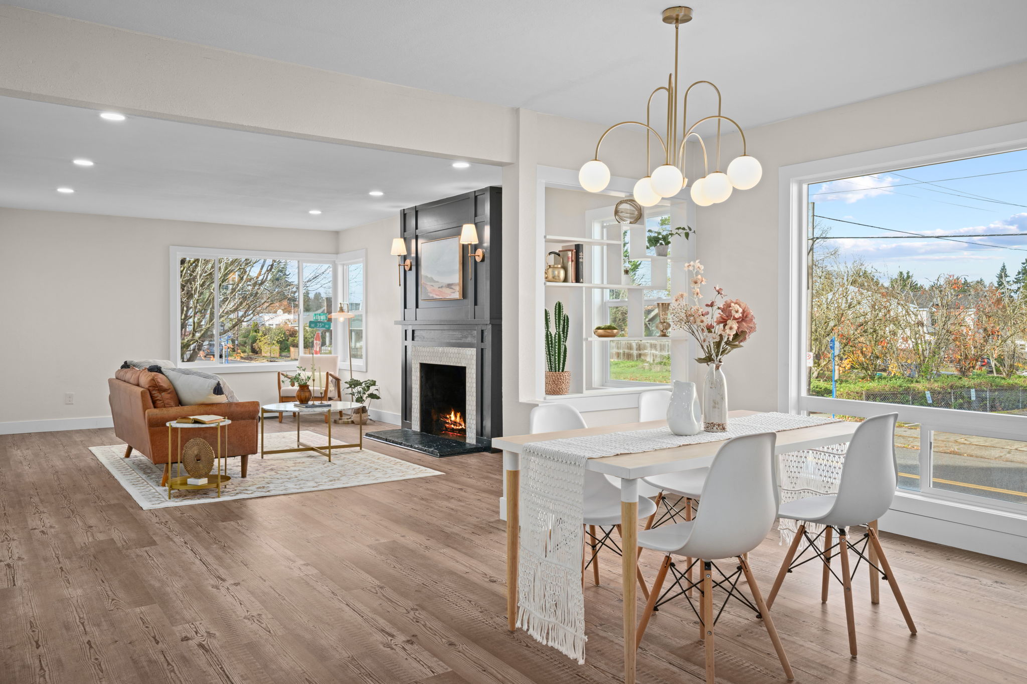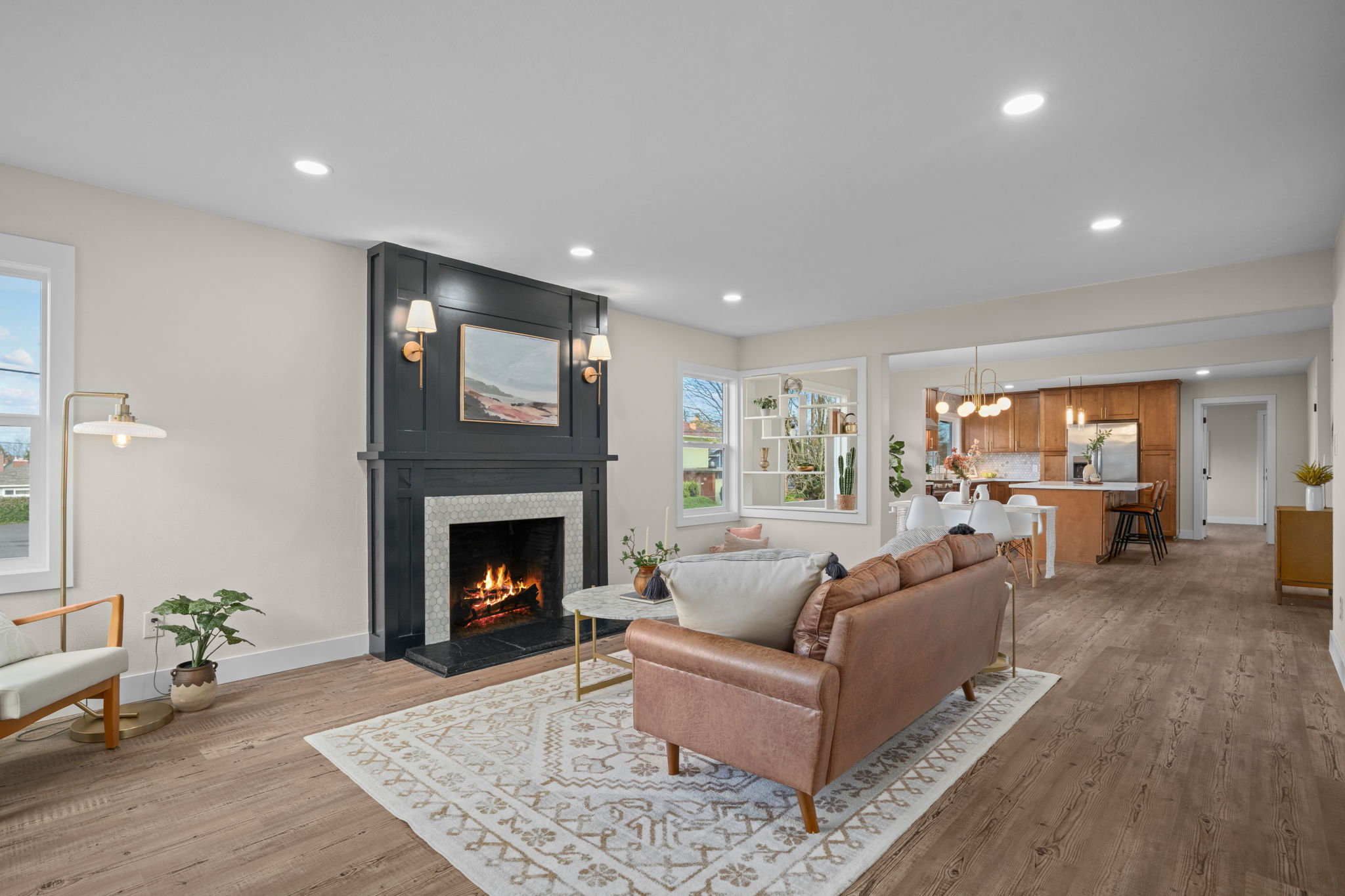 View ListingStunning, fully renovated ranch in the heart of Northeast Portland! This beautifully updated home blends modern design with timeless charm, featuring a newly reimagined open-concept living room, kitchen, and dining area anchored by a custom tiled fireplace that adds warmth and style. Designer-curated finishes throughout create a polished, elevated atmosphere. With 4 spacious bedrooms and 2 refreshed bathrooms, this ranch offers exceptional versatility. The thoughtful renovation includes an added bedroom on the main level plus a dedicated office and an extra den/flex room in the finished basement—perfect for work, hobbies, or additional living space. Entertain outside and enjoy all of Portland’s beautiful seasons with the covered patio area and brand new deck. Enjoy a location that places you close to the best of NE Portland, including vibrant shops, eateries, parks, and neighborhood amenities. Move-in ready, stylish, and exceptionally functional—this home is a must-see. Listing agent (licensed OR broker) is related to seller and has financial interest in the property.