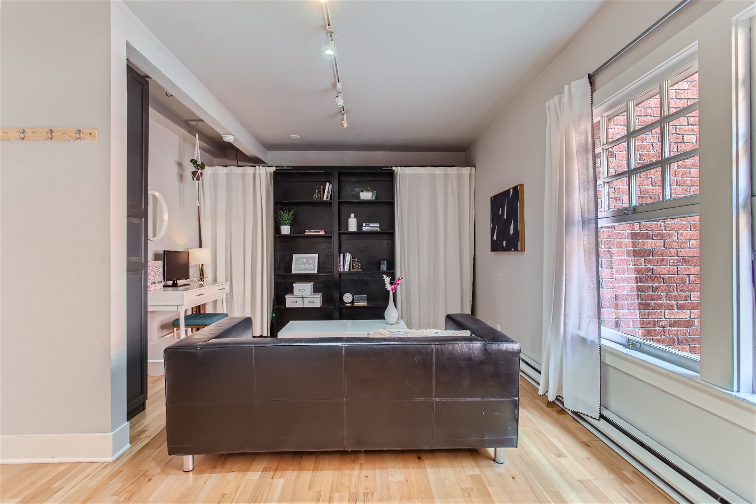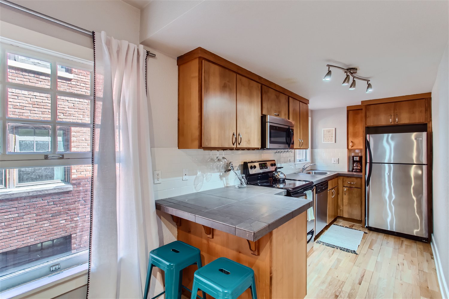 Charming studio with strong mid term rental history. This darling studio includes a built-in murphy bed with built-in shelving. Tidy layout allows for sleeping space, living space and work space. Lovely hardwood floors shine throughout. The streamlined kitchen has stainless steel appliances, tile countertops and bright subway tile backsplash. Enjoy privacy with the interior courtyard view while being located in the bustling Alphabet District. Just steps to all the shops and restaurants on NW 21st and NW 23rd, the Pearl District, the Streetcar line and Forest Park.