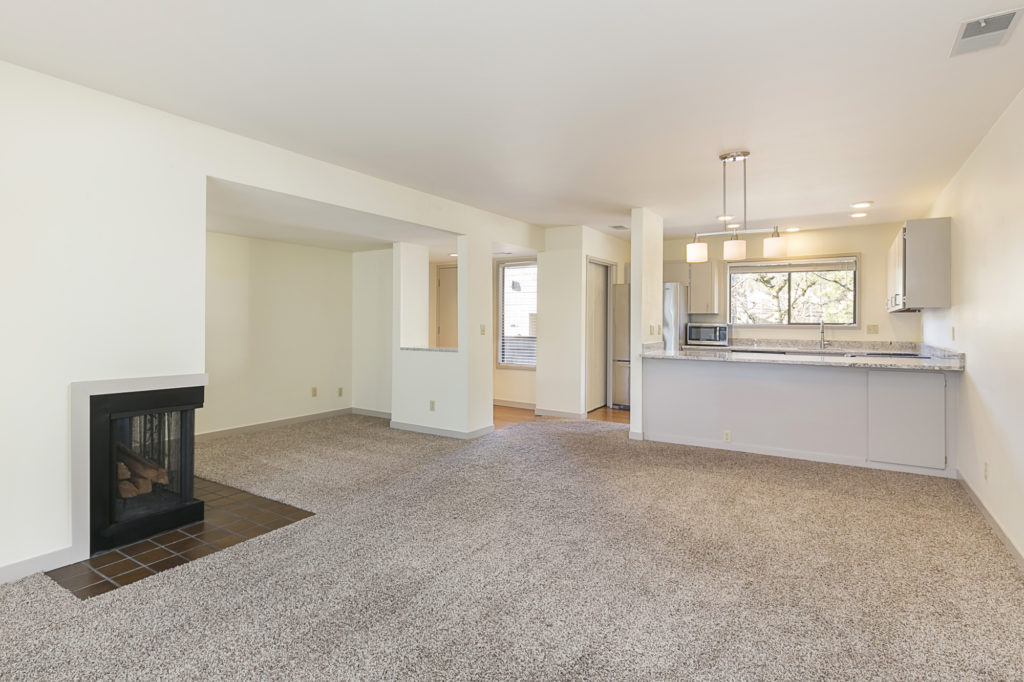 The home features a newly remodeled kitchen with a slab granite countertop, newer stainless steel appliances, nook off the living room that can be used as a den or office, in-unit washer/dryer, and deck off of the master bedroom & living room for outdoor living. There is 1 assigned secure garage parking space, an additional storage closet, and both river & Mt. Hood views.