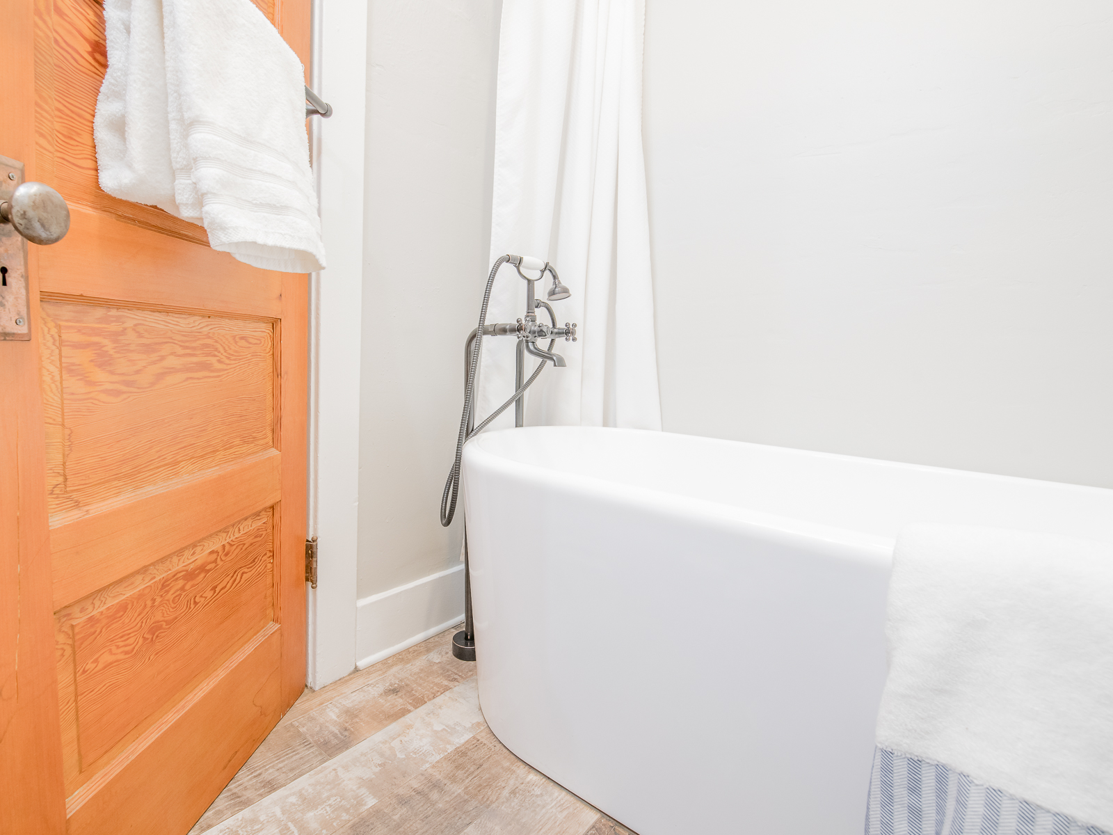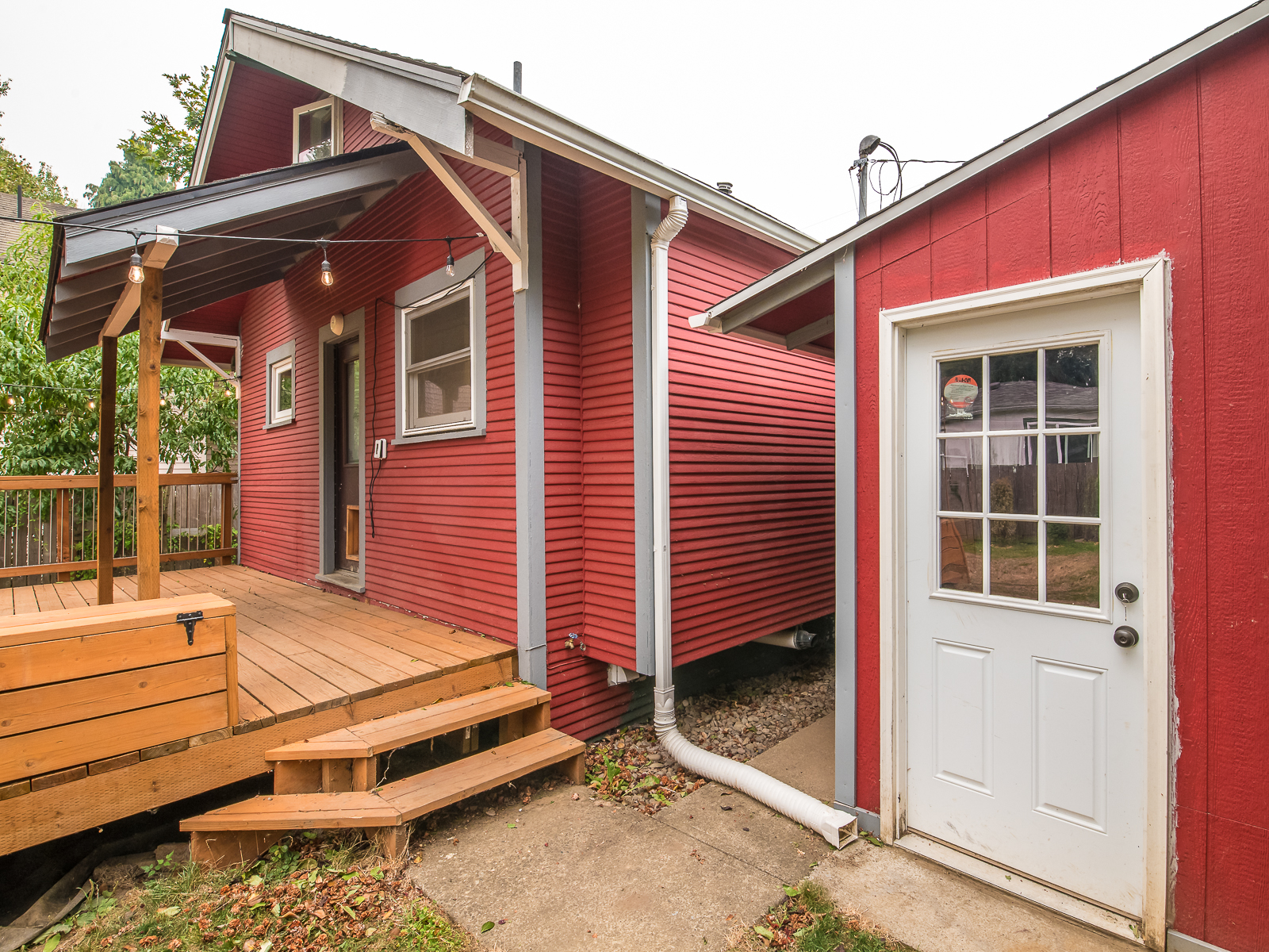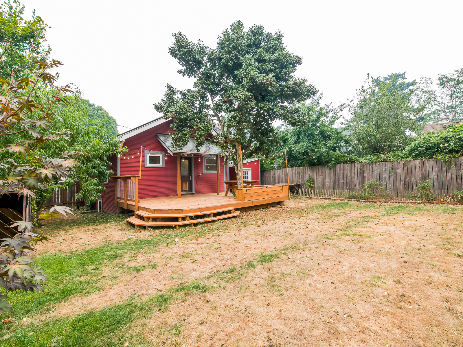 Restored original doors, cabinetry & hardware. Soaking tub + large walk-in shower. Walk-up attic w/potential. The large back deck overlooks a spacious, south-facing & fenced yard with multiple productive fruit trees. Sweet, detached 160sf workshop. Bike Score 90.