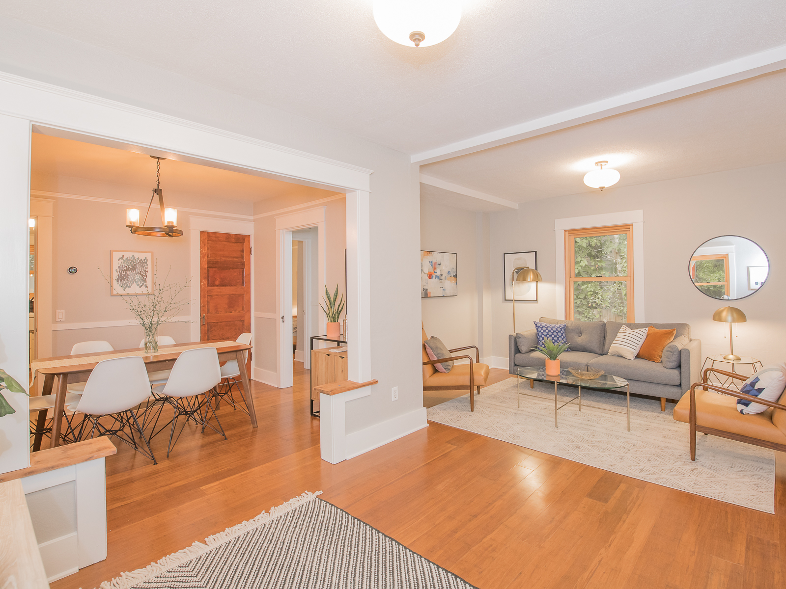 This adorable, highly efficient 1922 bungalow boasts some serious updates and is just blocks from Kenton Park and the neighborhood business district. All big ticket items have been addressed: new double-paned wood windows (w/lifetime warranty); new bamboo floors; fresh interior paint; new roof/sewer/electric (2015); tankless water heater; 95% efficient gas furnace; induction range; seismic retrofits; Nest home thermostat system. Home Energy Score 8/10.