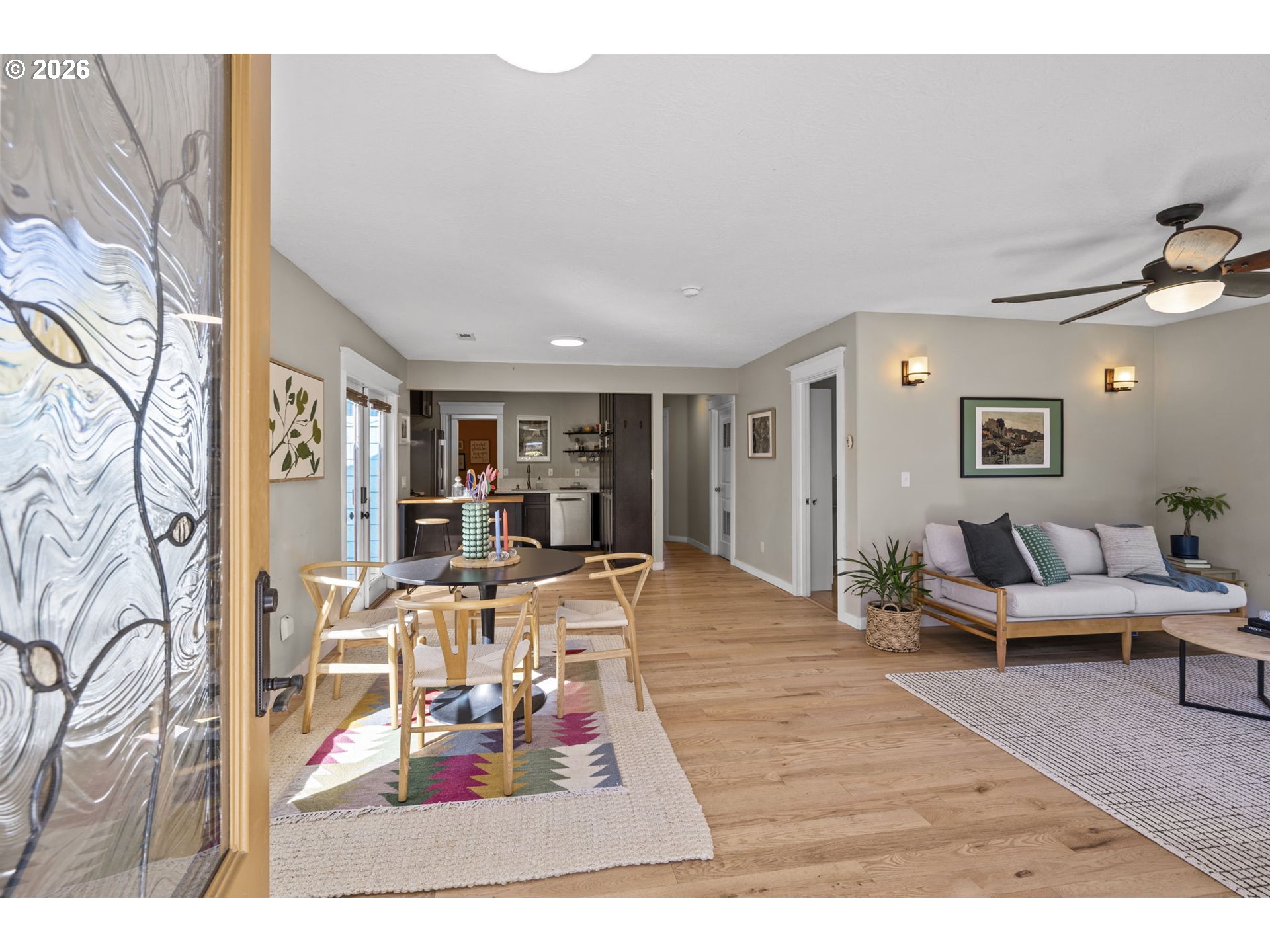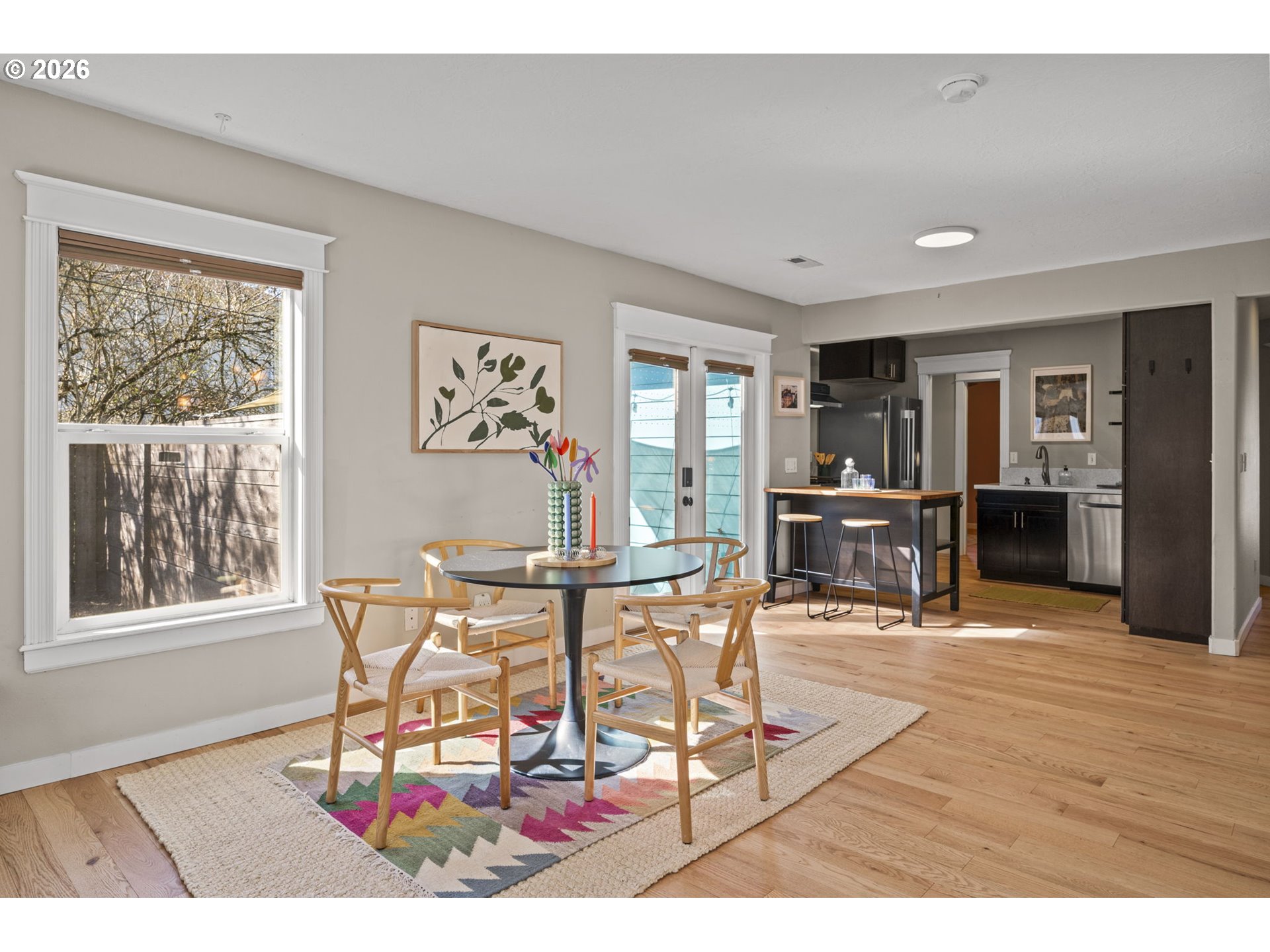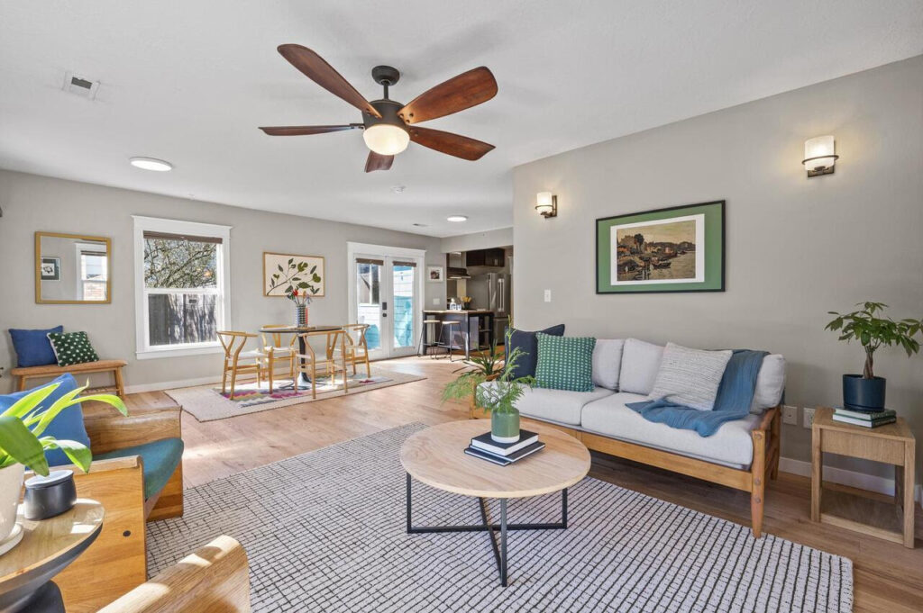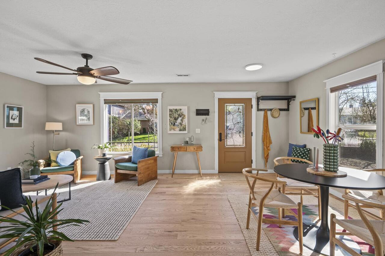 View ListingRe-envisioned and rebuilt from the studs out, this “ranchalow” delivers mid-century soul with a sleek, open, modern floor plan. The bespoke one-level design is awash in natural light and well-appointed with upgrades such as red oak plank floors, stainless steel appliances, quartz countertops, insulated windows and glass doors, and a private office with bamboo flooring. Summer-ready with multiple ceiling fans, this smart, eco-friendly, well-insulated home boasts solar panels, a dedicated laundry room, ample closet space, and central AC! Updates include a new roof and gutters (2023), plus a new furnace, front door, and shed (2022)—and so much more. Dine al fresco on the patio; plant and play in the backyard featuring a tree bearing pears aplenty! Nearby, you’ll find Peninsula School, your choice of parks, downtown Kenton, and everything from banking to brews and burritos on Lombard, plus easy MAX and freeway access. How rare to find such spacious, one-level, carpet-free, move-in-ready living in a high-demand location!