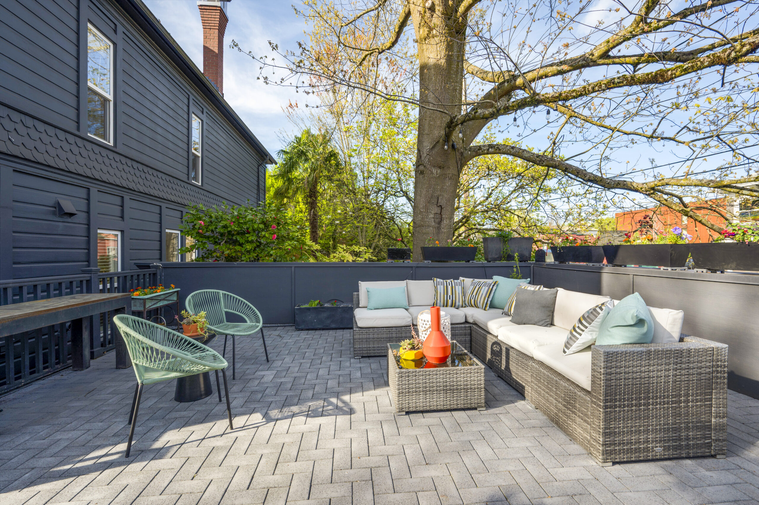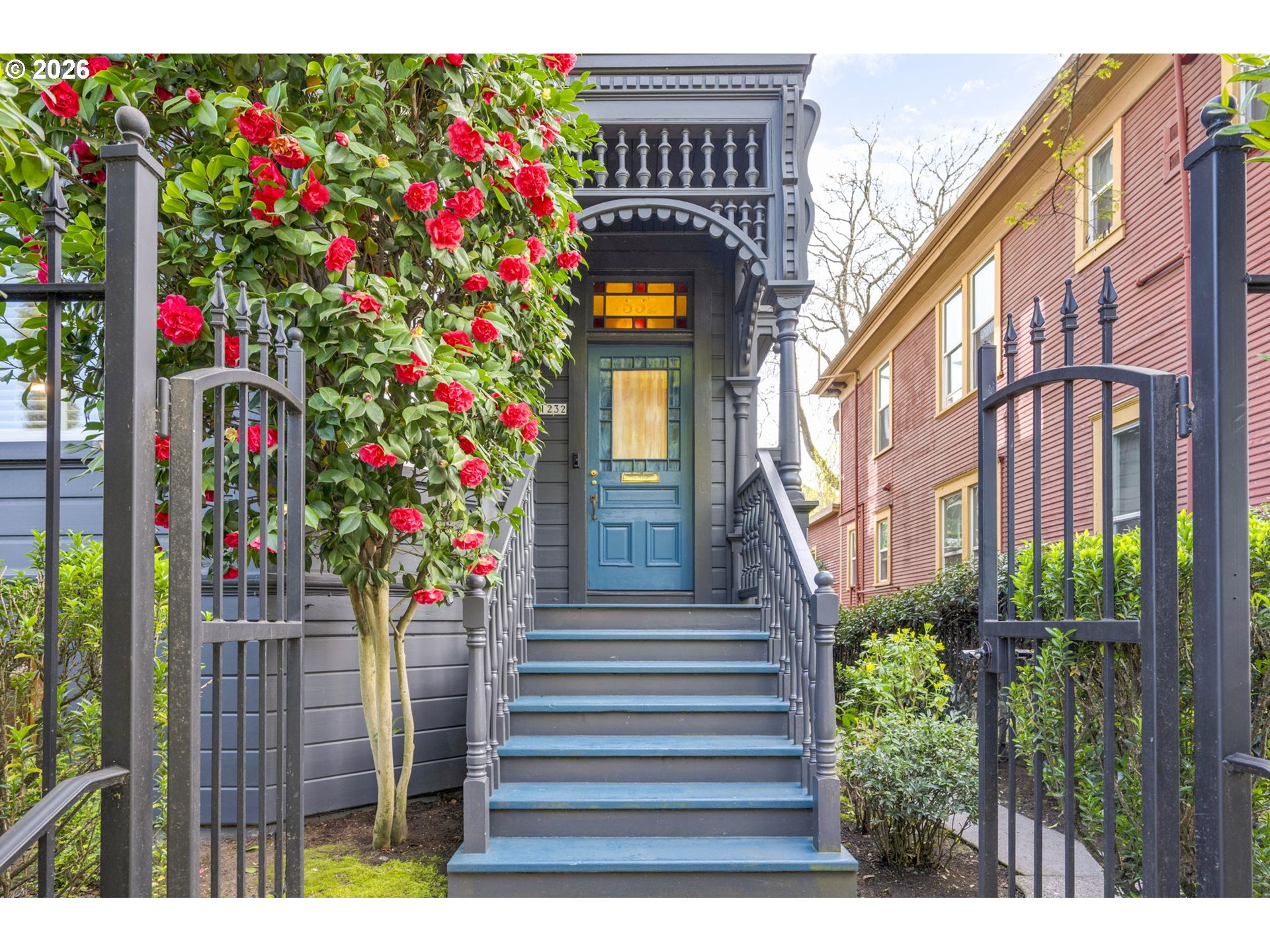 View ListingNostalgic for the City by the Bay? Beyond the secret garden gate, the golden sun shines. A Queen Anne bespoke belle of bustling Belmont with a command presence, she’ll slay you with her stately, bold exterior hue, quiet interior, preserved details and modern updates. Feast your eyes on the architectural morsels: from the porch and balcony ornamentation to the original floors and elegant fireplace. A flexible configuration lends itself to remote work, housemates or extended family, spanning 4 levels, including a private studio with 2nd kitchen, bathroom and Murphy bed. It’s a joy to cook in the well-appointed eat-in kitchen. The party is on the rooftop dreamscape, atop the unheard-of rebuilt 2-car garage, overlooking the courtyard oasis.