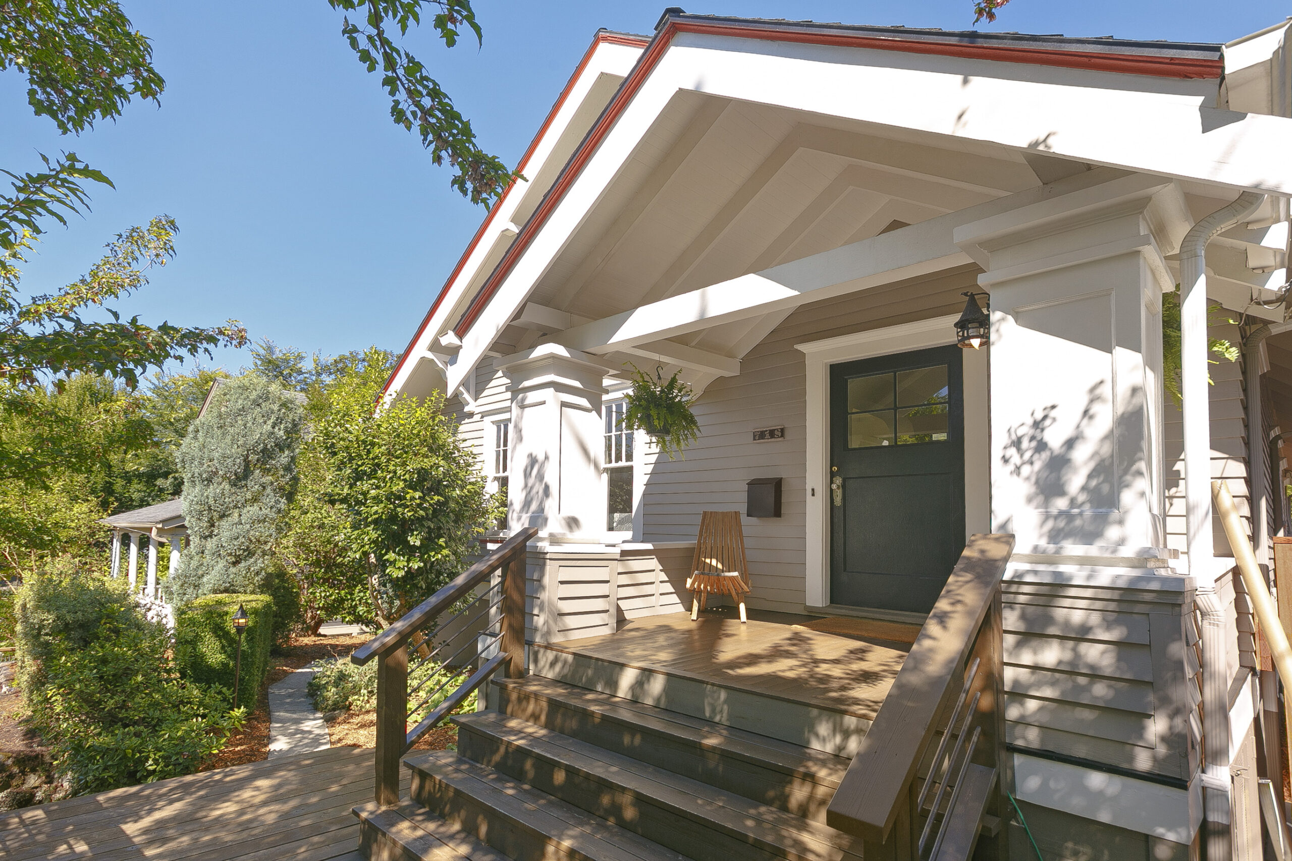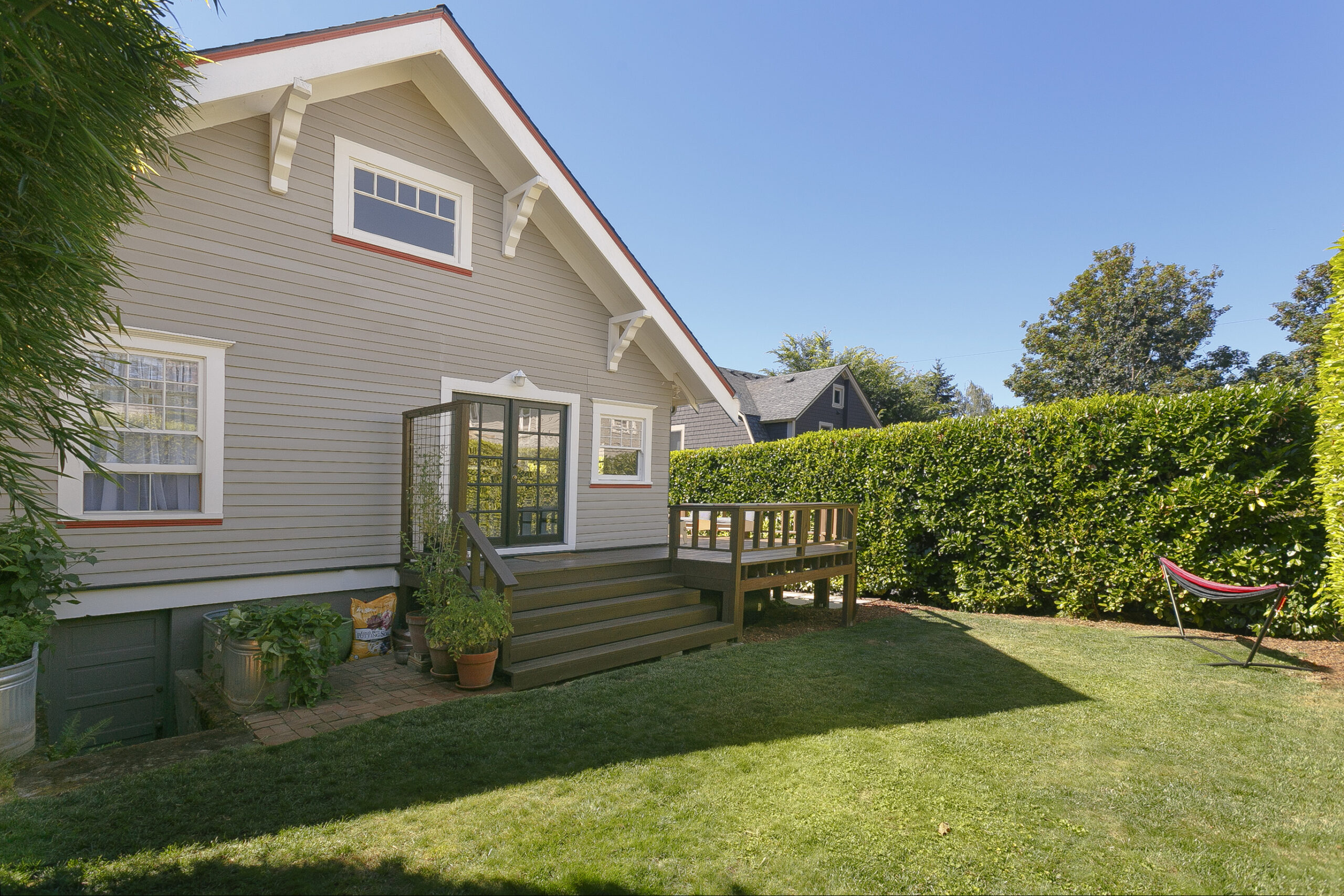 Winter is coming! What better way to beat the Oregon grays than with a home filled with windows and light? Perfectly situated within blocks of Laurelhurst Park, Sunnyside Environmental School, H-Mart, Stumptown Coffee, The Liquor Store and some of the city’s best dining and shopping, this west-facing charmer sits high up off the street and features a covered front porch, hardwood floors and period built-ins. A light and bright living room with wood burning fireplace flows to a formal dining room with a built-in window bench with storage, which in turn opens up to the beautifully updated kitchen, finally transitioning to the back yard via french doors with a large deck and patio area for outdoor dinners and grassy area for kiddos and pets. Large hedges provide privacy galore. Working from home? There is a large upstairs workspace perfectly appointed for your home office needs. Basement has loads of potential with a workshop space and room for an ADU or anything you can dream up.