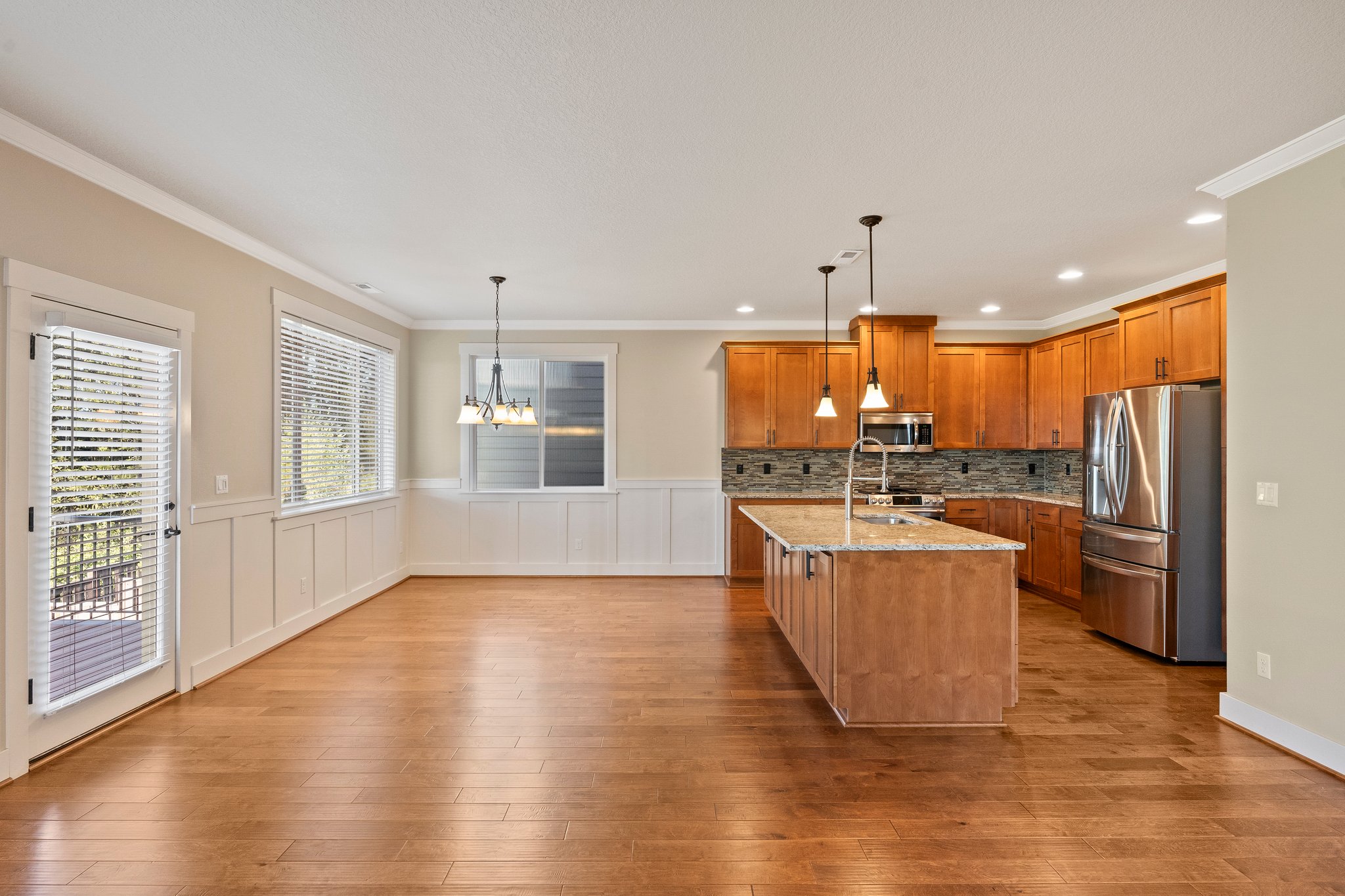 Enjoy the beauty of nature year round with breathtaking territorial views backing to your own private forest! Watch stunning sunsets and enjoy the eagles, hawks, and birds that call the tree tops their home. High ceilings & abundant windows allow natural light to flood in! As you step inside, you’re greeted by an inviting open floorplan that seamlessly combines spaciousness with intimacy. Ideal open concept main floor flows between large great room with fireplace, dining room and gourmet granite kitchen offering island, newer stainless steel appliances and soft close cabinetry. Handsome finishes include expansive engineered hardwoods, wainscotting & light fixtures. A main floor office space + an upstairs nook provides versatility and convenience. Spacious master suite with walk in closet + slider closet, soaking tub, walk-in shower & impressive views. Convenient upper level laundry + endless hot water via 2 water heaters! Huge walkout daylight basement with high ceilings, offering endless possibilities as a bonus room, play room or additional living space. Expansive main level deck provides a wonderful space to enjoy the views & dine alfresco, while also providing a waterproof covering for the spacious patio below! Hot tub hook up/pad adjacent to patio. Two car garage + generous storage throughout