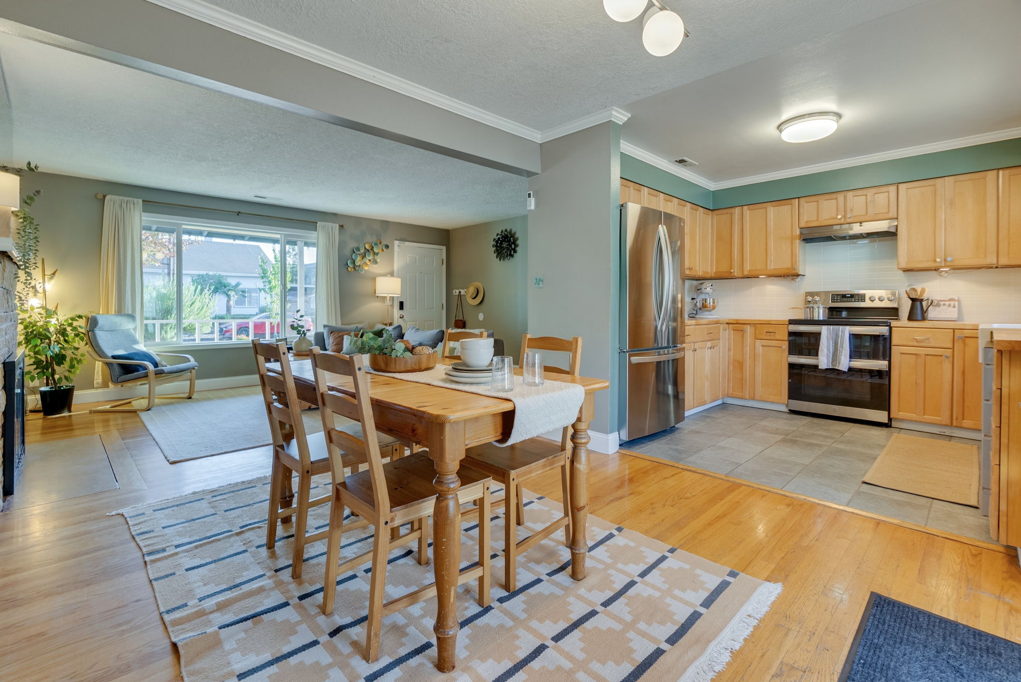 Step inside and the space opens up- kitchen, dining, and living areas flow together for easy one-level living. Four roomy bedrooms, a versatile bonus room, and large bath provide plenty of space to spread out. The spacious kitchen dazzles with fresh counters, tile backsplash, new sink and hardware, complete with upgraded Energy Star appliances. Oak hardwood floors and a brick wood-burning fireplace add timeless mid-century charm while thoughtful updates keep everything fresh: newer windows, light fixtures, paint, carpet, and a recently replaced roof.