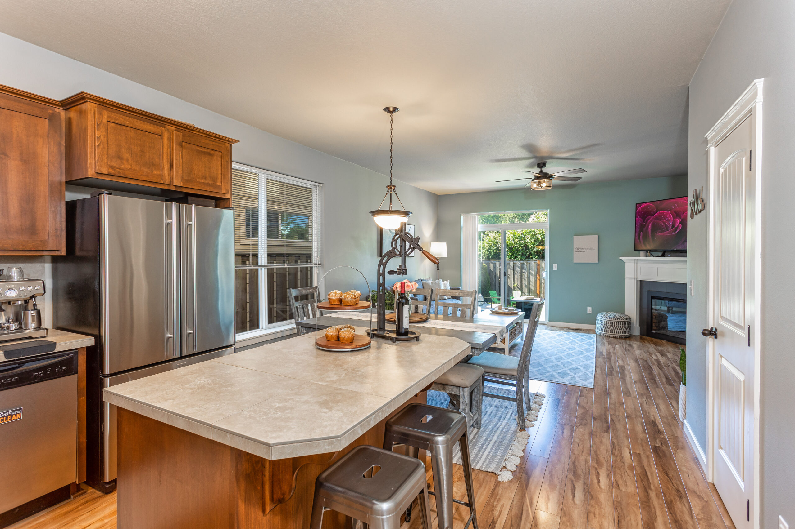 Hugging the greenspace, this cheerful home on a quiet, dead-end street provides the perfect place to nest. Enjoy nearby sites:  Bard, Lincoln, and Stites Nature Parks, Council Creek, and Hanson Stadium. The quick one-mile trip to Pacific University makes this an ideal spot for college employees and students alike. This Casey Meadows area, super well-designed, detached, 2-level home with a great-room style main level has clean lines, plus plenty of warmth. It features an open kitchen with an island/breakfast bar, dining area, living room with fireplace, powder room, glass doors to a fenced backyard with a raised planting bed, space to play, and a patio, plus access to the attached garage. The primary bedroom features vaulted ceilings, an en-suite bath, a walk-in closet, and room for a king-sized bed! Delight in easy living here in this carefully maintained home tucked into a tidy neighborhood community. Hassle-free homeownership!