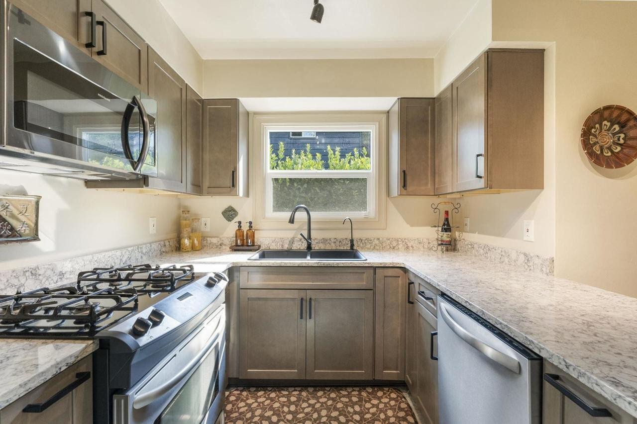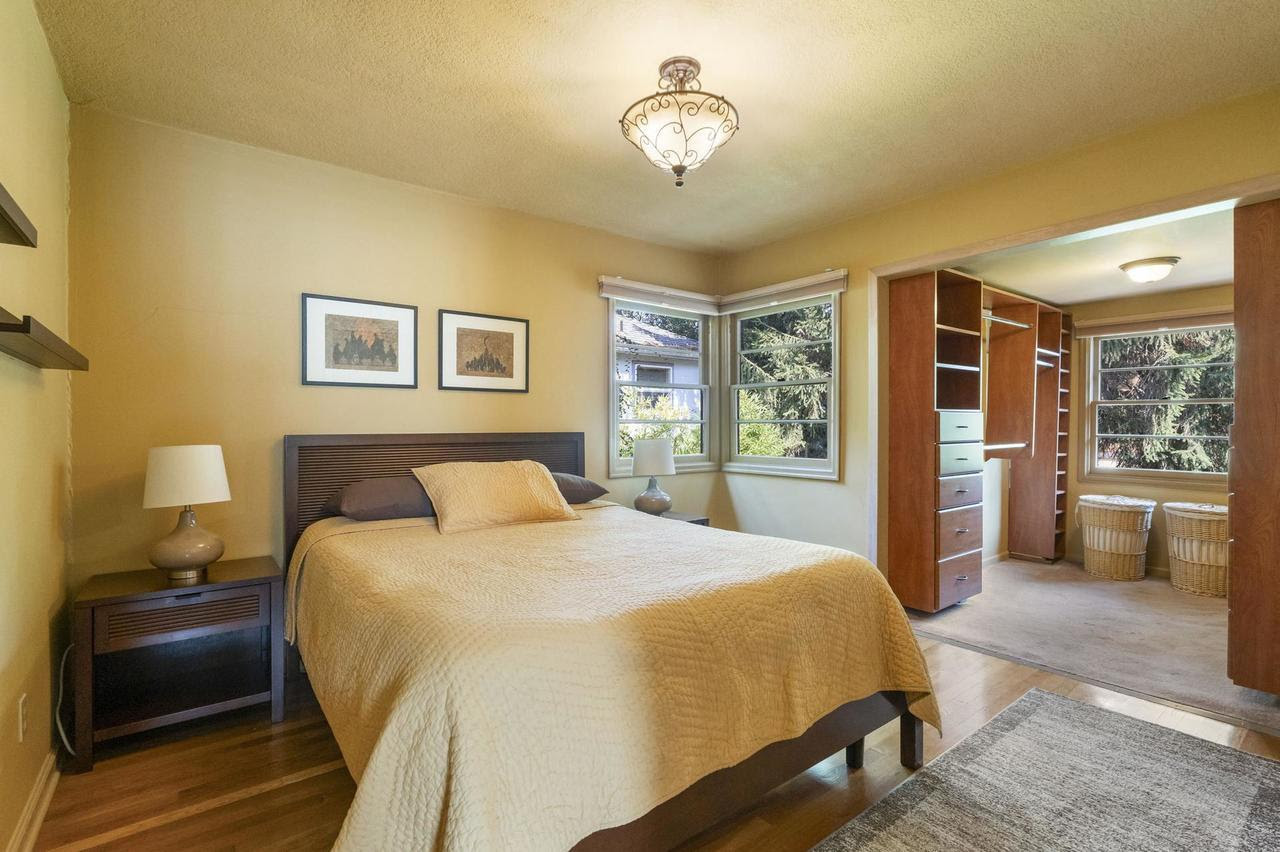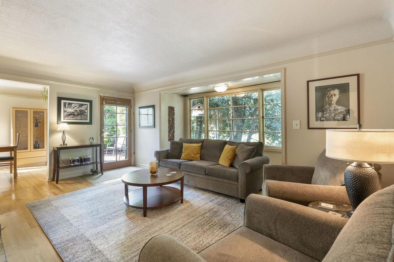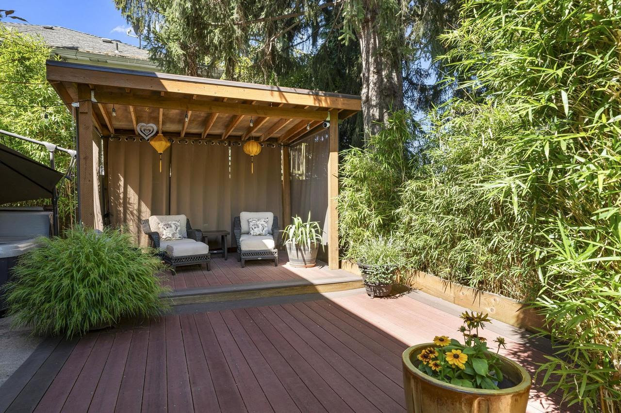 Current owners have cherished this home for 35 years after the original owners lived here for 41 years – a testament to this wonderful neighborhood! Immaculately maintained, this sweet 1948 bungalow offers the best of relaxation in the heart of the city! Located on a quiet dead end street & set back surrounded in intentional greenery. The sunny & spacious front deck welcomes you & is the perfect spot for your morning coffee. Step inside & you’ll appreciate the calming vibe with muted color palate & thoughtful attention to detail. Handsome living room is spacious yet cozy, offering a wood burning fireplace, coved ceilings & large windows to let the outside in. Light filled formal dining room allows for hosting intimate gatherings. Expansive main floor hardwood floors & period details throughout. Freshly remodeled kitchen includes ample storage, new custom cabinets & quartz counters, stainless steel appliances and a smart layout for easy meal prep. Enjoy easy one level living with main floor primary bedroom offering 8.5 ft x 6 ft walk in closet room, typically only found in larger homes! Second main floor bedroom with extra flex space for your changing needs. Stunning remodeled bath adds a touch of luxury, featuring modern fixtures, soaking tub and granite counters. Daylight basement has endless possibilities for 3rd bedrm, separate living space or hobby area! Lower level includes family rm with frplc, bonus/flex rm (currently used as music studio), abundant storage, laundry & full bath. The lower level opens to a tranquil backyard sanctuary: take a soak under the stars year round in the private hot tub under the covered patio, or have a cocktail after a long day on the large deck with arbor. Long driveway, lined by a 75 foot Laurel hedge for privacy, provides generous off street parking + garage. Walk or bike to nearby Mt Tabor for summer concerts; prime location near QFC, coffee shops, schools, bus lines & and the popular Bellwether restaurant/bar!