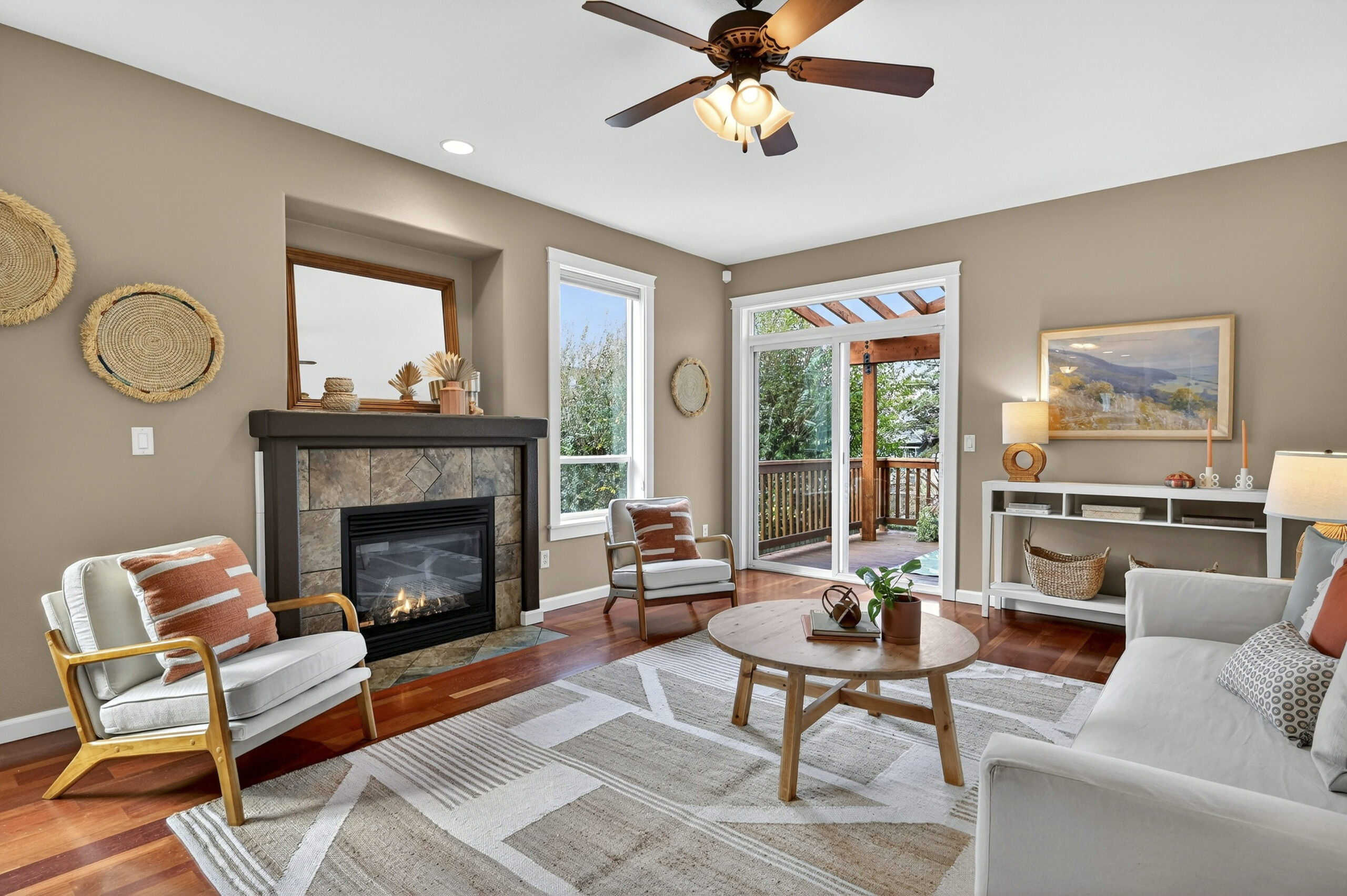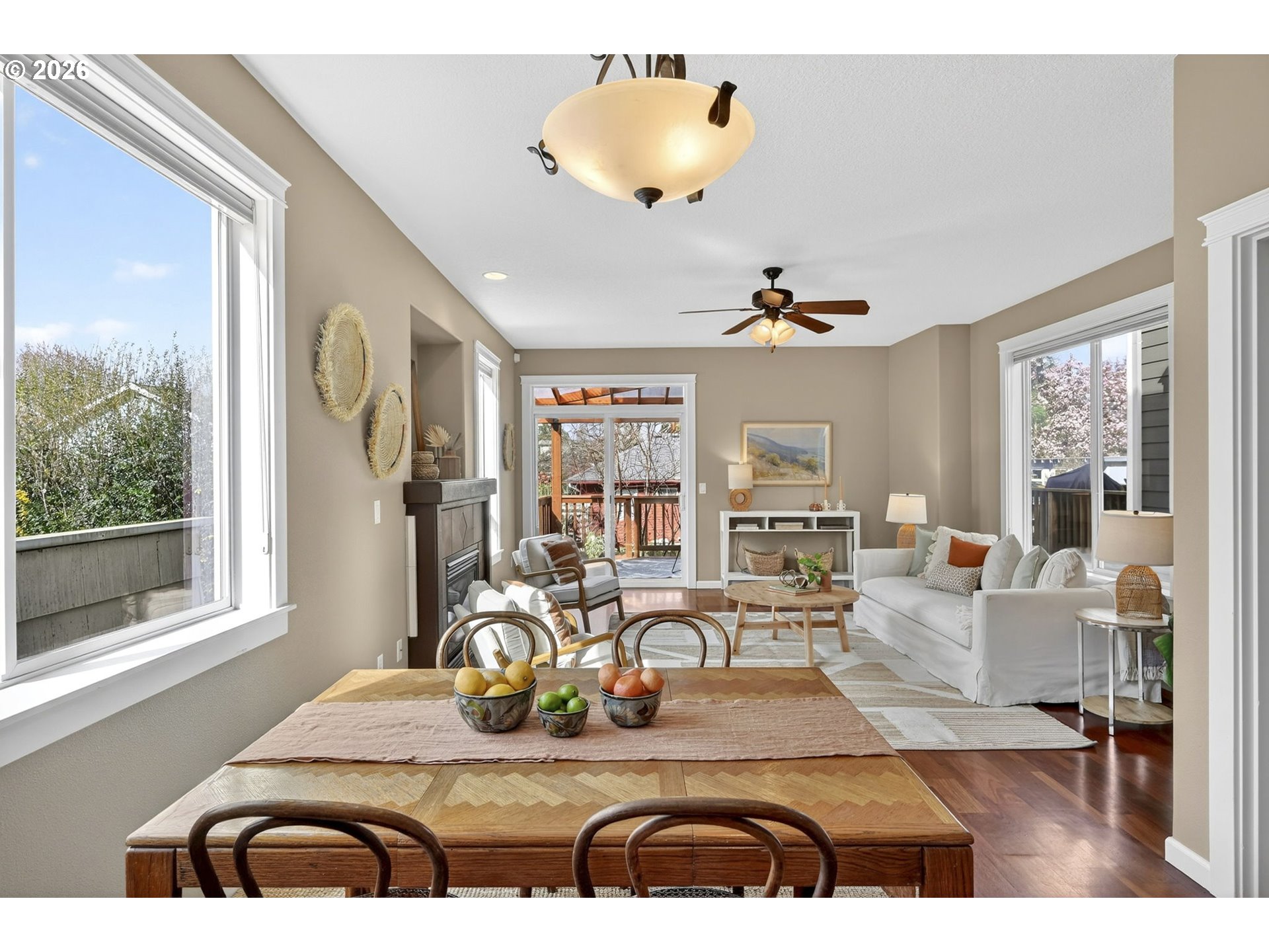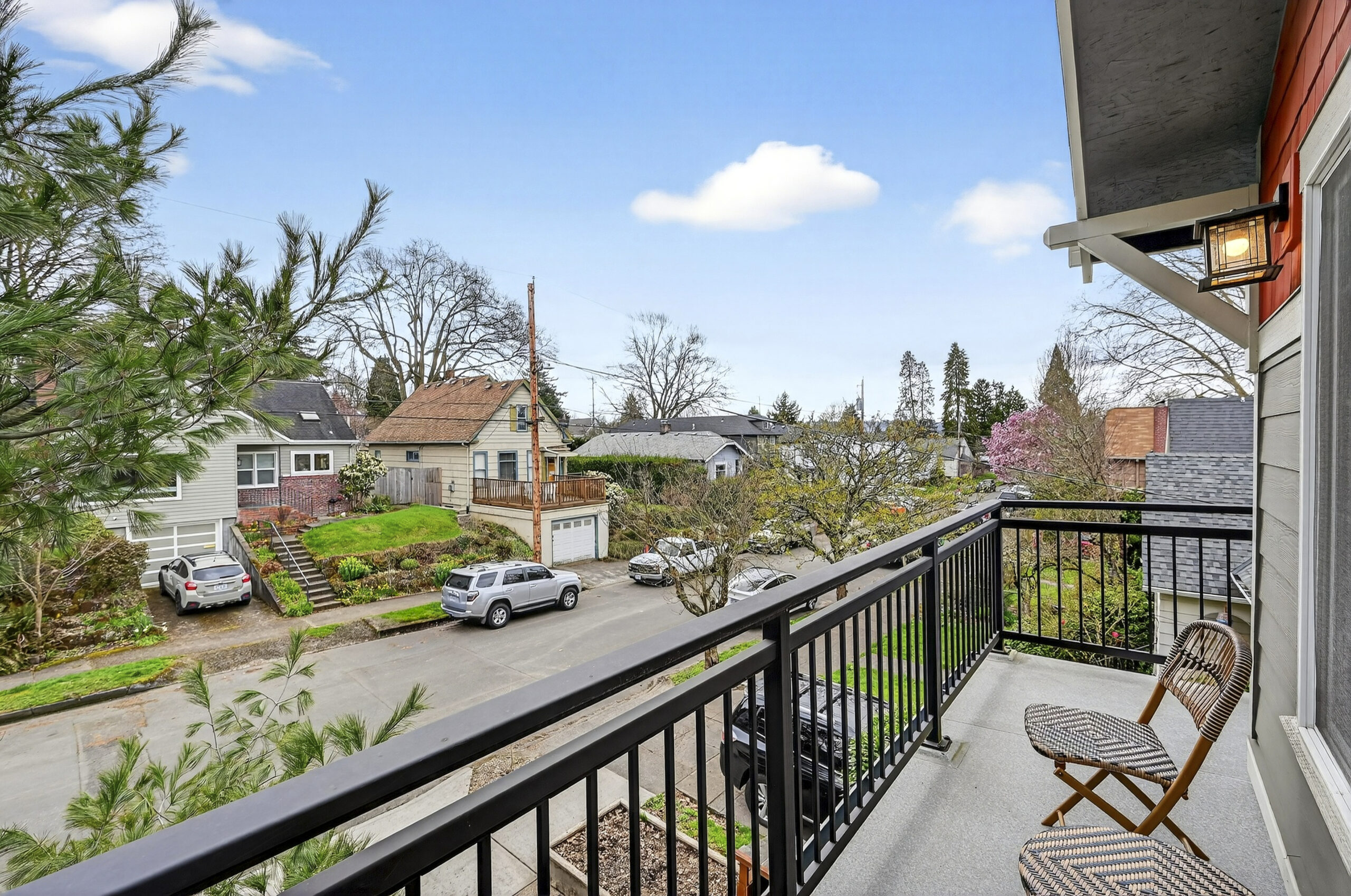 View ListingLive large! The main level features an ample great room style, space-efficient open floor plan. Festivities flow seamlessly from the airy kitchen with stainless steel appliances, to the sundrenched dining area, living room with gas fireplace and out to the covered deck, awash in the filtered light of nearby trees. Up one flight of steps, the vaulted primary bedroom wows with its wall of clear fir-doored closets and en suite bath with sharp newer shower enclosure, a second bedroom with a balcony that is ideal for serene sunsets, plus a third bedroom, second full bath and a convenient laundry setup. The Brazilian cherry hardwood floors exude warmth and quality. Space abounds in the rare, daylight/walk-out lower level, smartly clad in LVP flooring and ideal for home office, lounging, or gym, and a family room with a second gas fireplace and sliders out to a tranquil, protected semi-permeable, covered patio. A garage fit for 3 bikes and a car, basement storage area, and a fantastic location where you can head out on foot to Mt. Tabor, QFC, a dog play area, Belmont, and more! Bike, bus and pedestrian friendly, yet tucked into a quiet residential street – an unmatched choice for your new lifestyle!