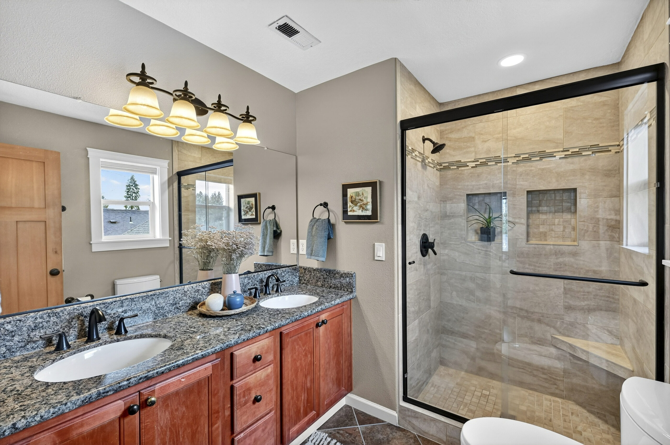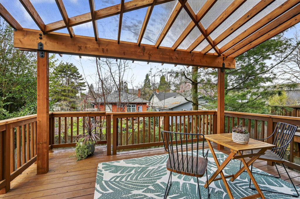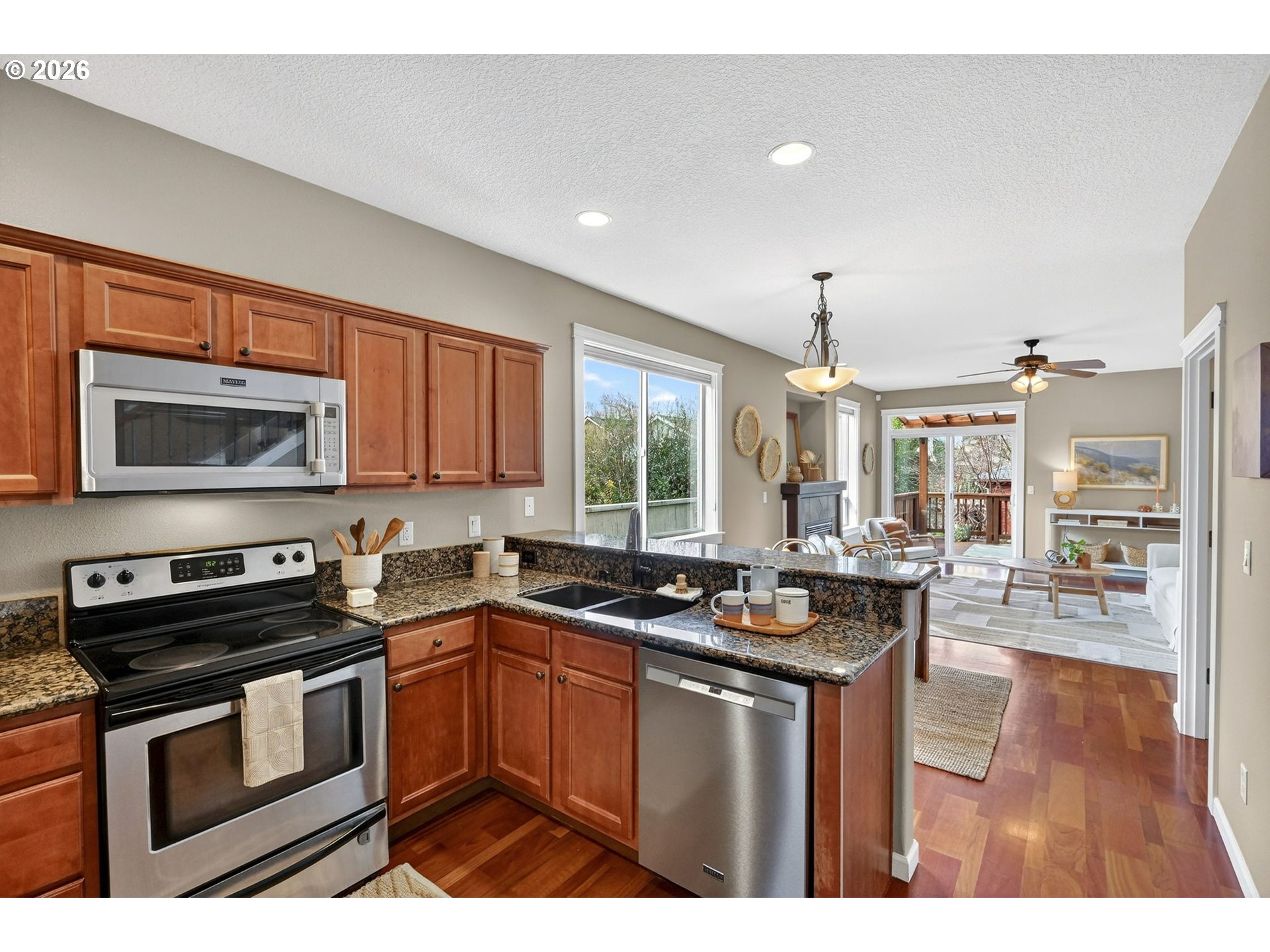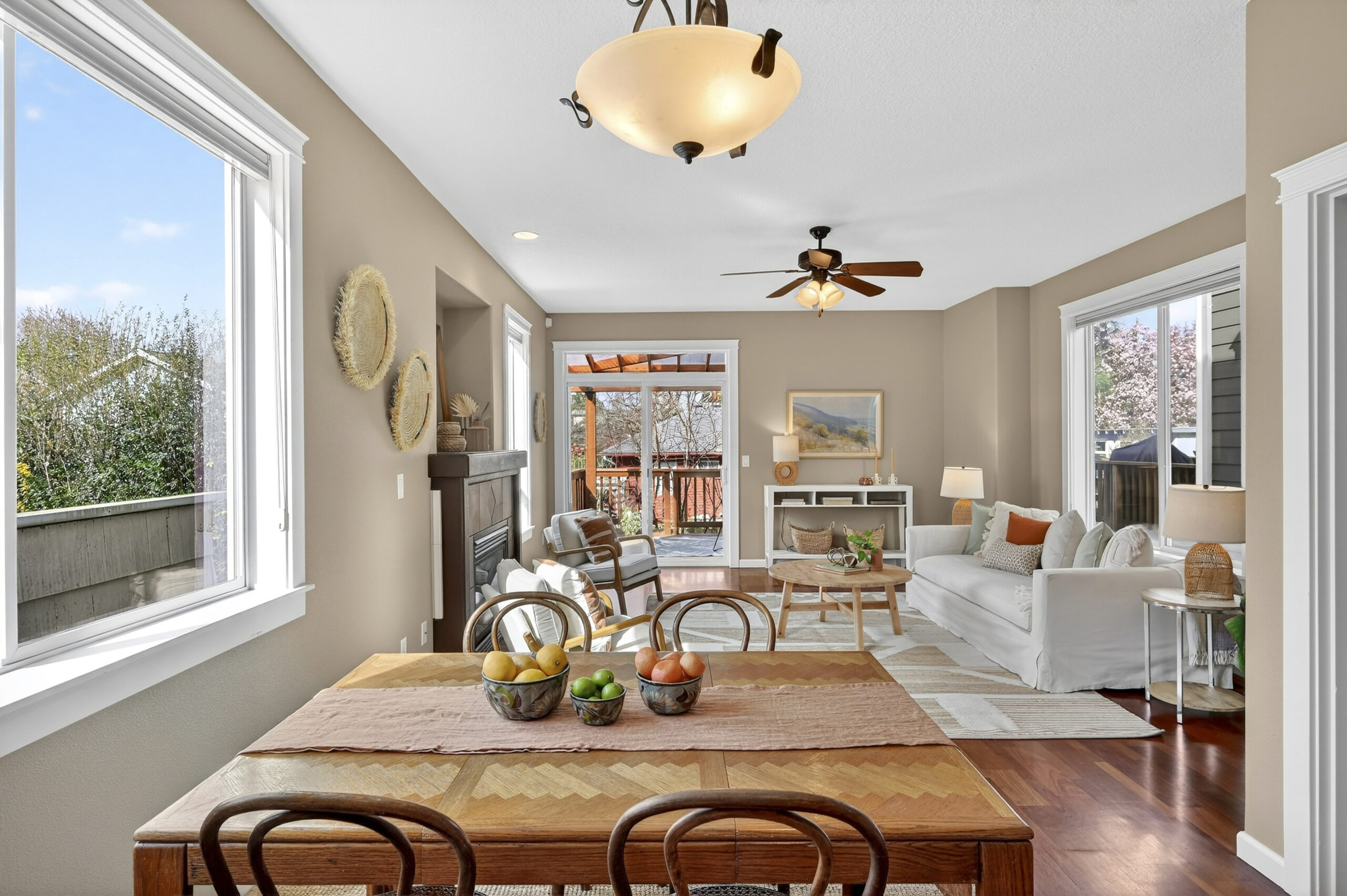 View ListingLive large! The main level features an ample great room style, space-efficient open floor plan. Festivities flow seamlessly from the airy kitchen with stainless steel appliances, to the sundrenched dining area, living room with gas fireplace and out to the covered deck, awash in the filtered light of nearby trees. Up one flight of steps, the vaulted primary bedroom wows with its wall of clear fir-doored closets and en suite bath with sharp newer shower enclosure, a second bedroom with a balcony that is ideal for serene sunsets, plus a third bedroom, second full bath and a convenient laundry setup. The Brazilian cherry hardwood floors exude warmth and quality. Space abounds in the rare, daylight/walk-out lower level, smartly clad in LVP flooring and ideal for home office, lounging, or gym, and a family room with a second gas fireplace and sliders out to a tranquil, protected semi-permeable, covered patio. A garage fit for 3 bikes and a car, basement storage area, and a fantastic location where you can head out on foot to Mt. Tabor, QFC, a dog play area, Belmont, and more! Bike, bus and pedestrian friendly, yet tucked into a quiet residential street – an unmatched choice for your new lifestyle!