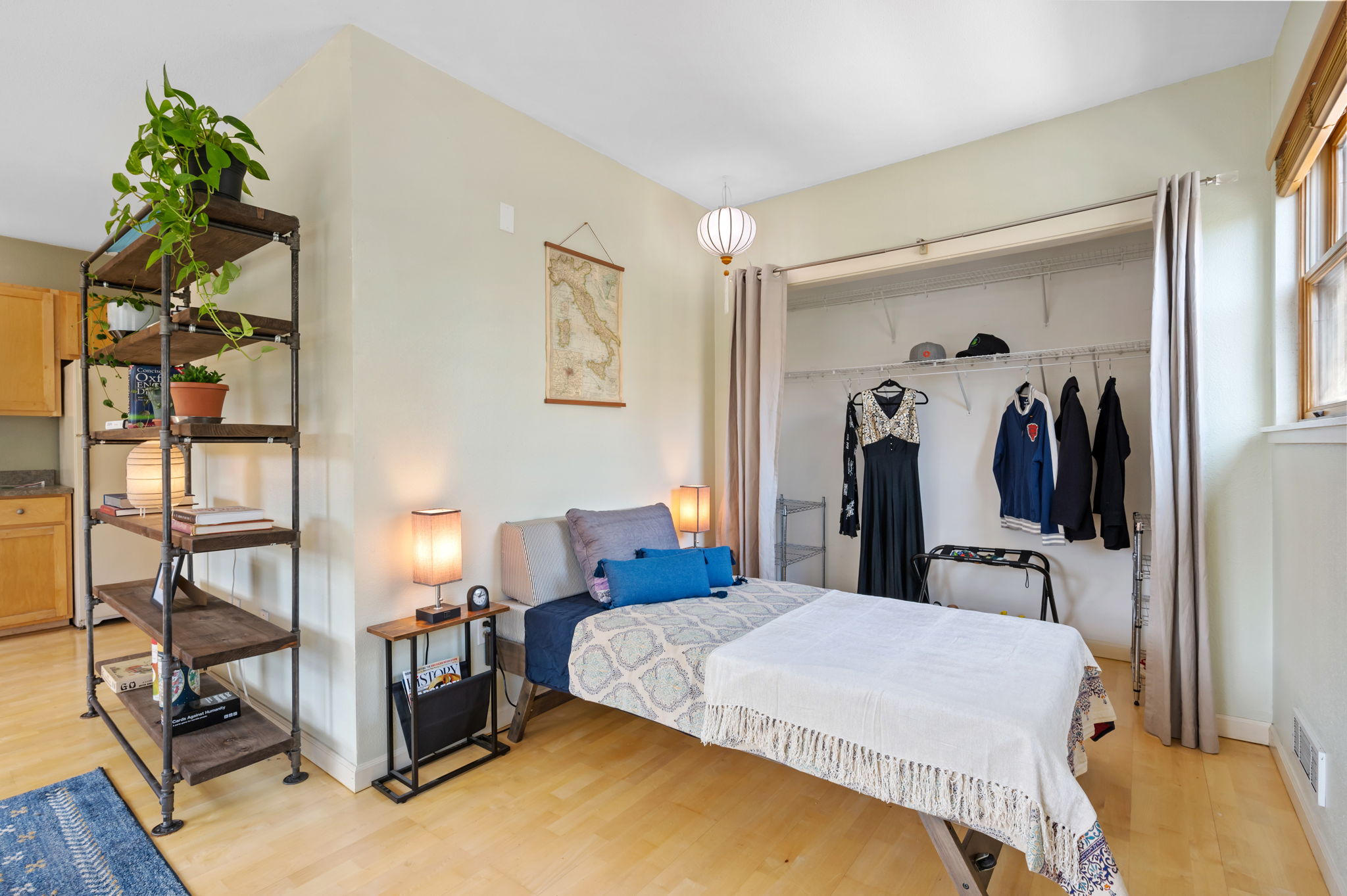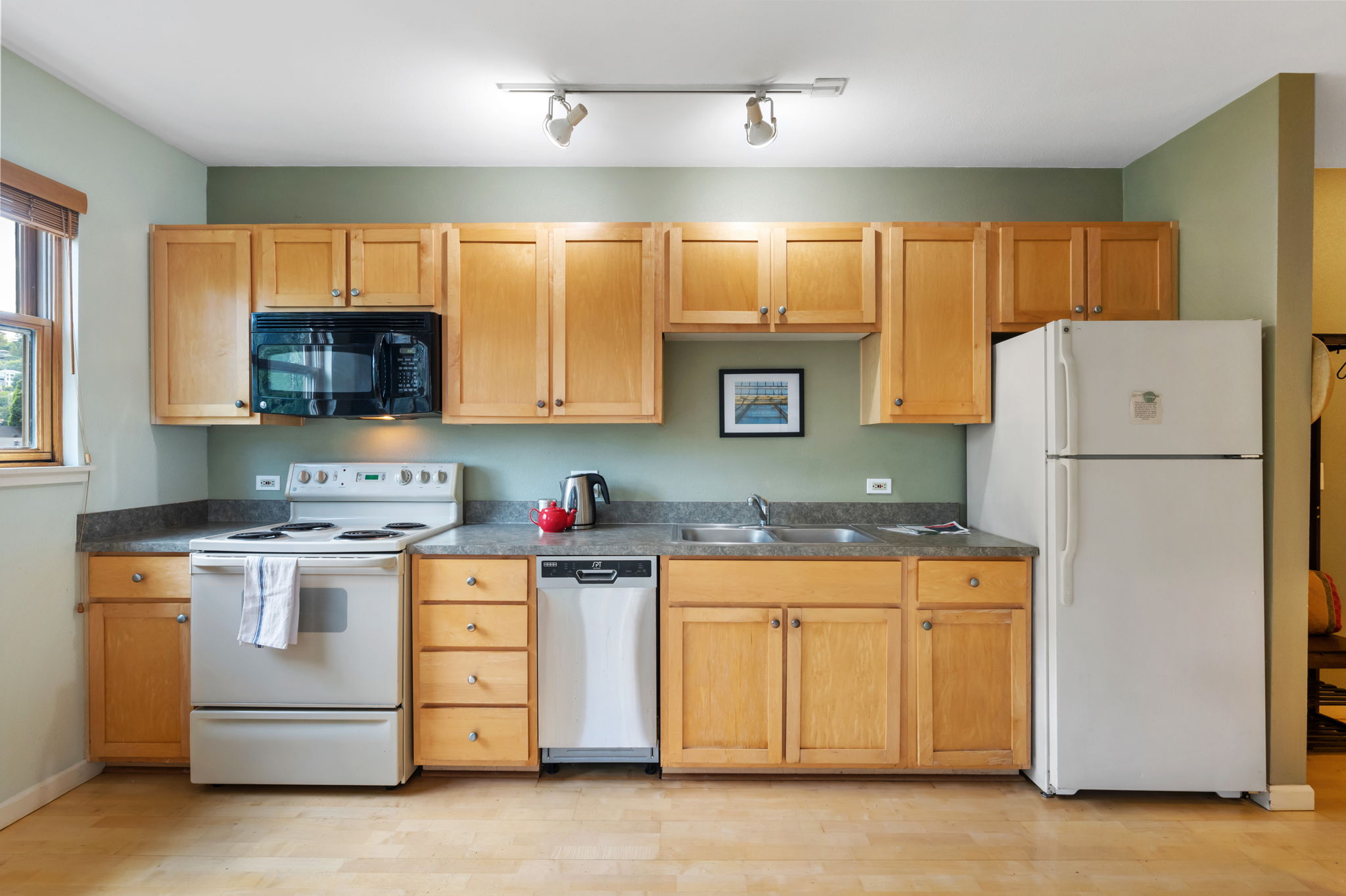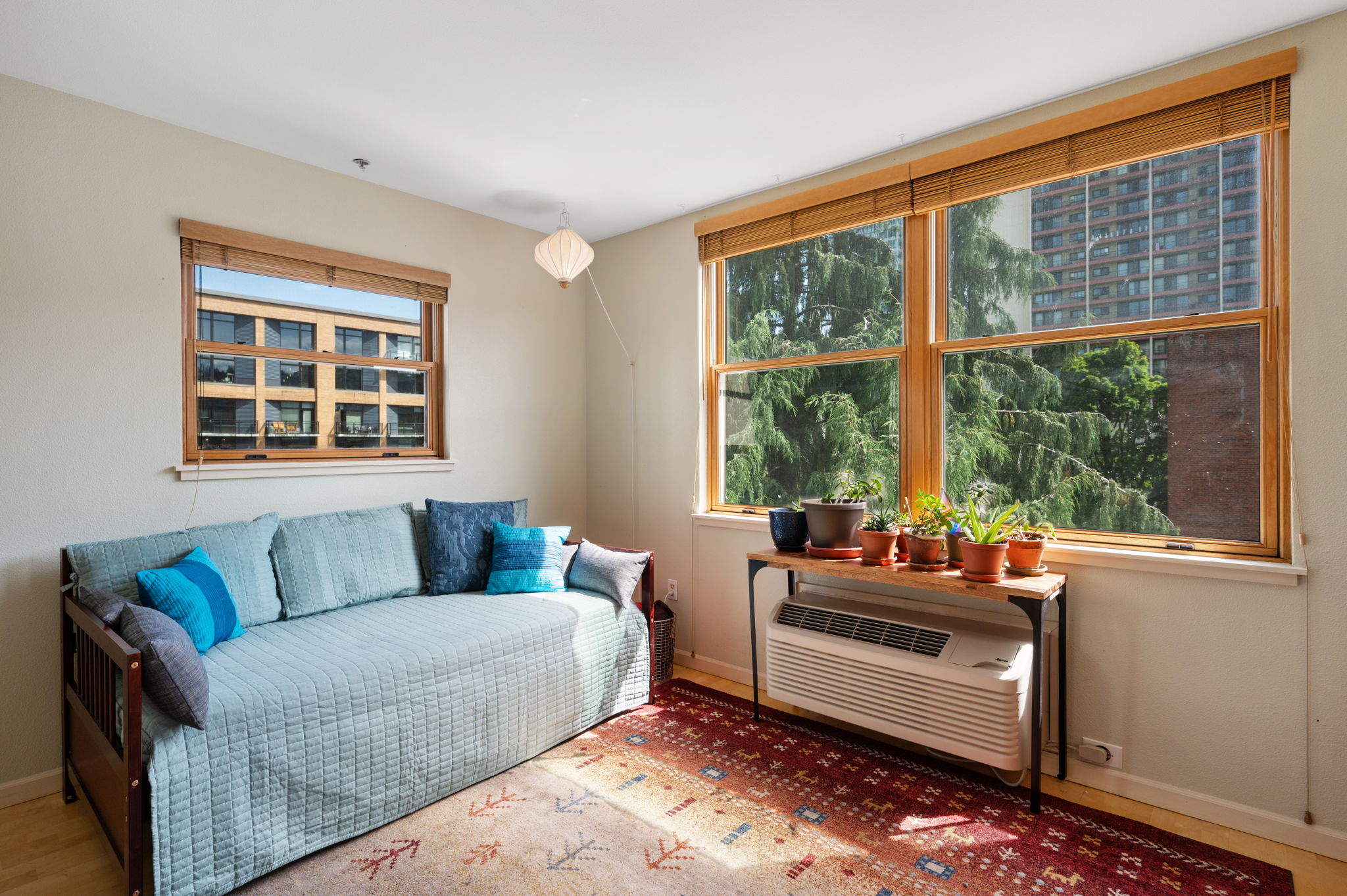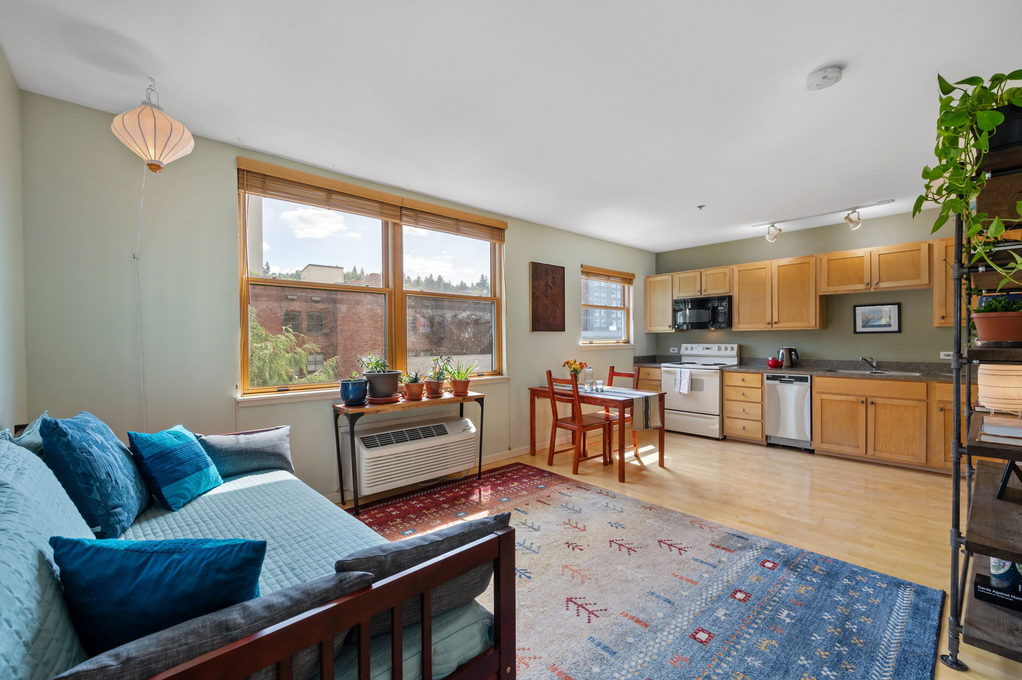 View ListingDressing up or down, this pad in the center of the city has you car free, out the door and on your way to it all! Whether you are heading to class or the Farmers Market at PSU, the Schnitz, Keller, Portland Center Stage or catching a Timbers or Thorns game, a flick or exhibit at the museum – you’ll be living large in this well designed pied-à-terre! Make your college or grad school years the best they can be; enjoy sleeping in your own bed in your home away from home, or just tuck yourself in at this rare find – affordable, convenient housing with a sunny disposition and leafy outlook! Pet, plant and human approved with lots of light streaming through the double paned, wood framed windows overlooking the arched brickwork of the neighboring early PDX “high rise”. A great room style studio plus a bedroom alcove with ample closet. The fully equipped kitchen features maple shaker cabinets, a built in dishwasher and track lighting. In-unit and community laundry. Downstairs there is a dedicated 4X6 storage cage and shared bike area. Secure entry and lobby. The P-Tac provides efficient heating and air conditioning. With access to MAX, bus routes, street car and bike lanes – this SE corner unit is a walker-rider-biker paradise! Don’t miss taking a peek in the west stairwell with its glass block wall framing a magical view of Portland’s iconic Envoy.