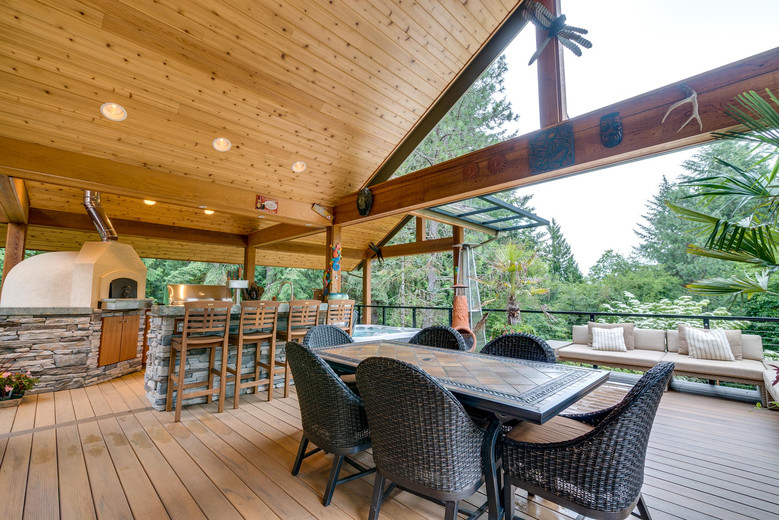 Superb Happy Valley executive home, with nearly 4,500 square feet of custom-designed living spaces, perched on a spectacular, private acre of artfully landscaped grounds. Entertain in style with a full outdoor bar, Italian pizza oven, bar with taps, hot tub and seating area complete with flat screen TVs. Tranquil Koi pond, water feature and Zen fire garden for relaxation spaces. Open floor plan on main, with entertainer’s kitchen as the heart of the
