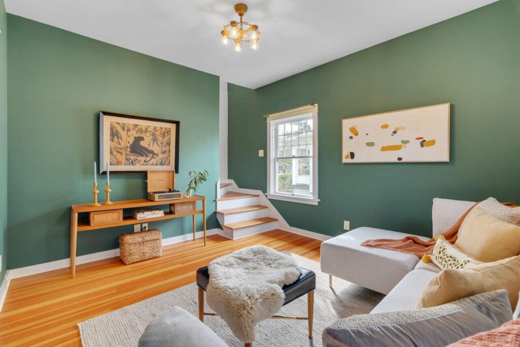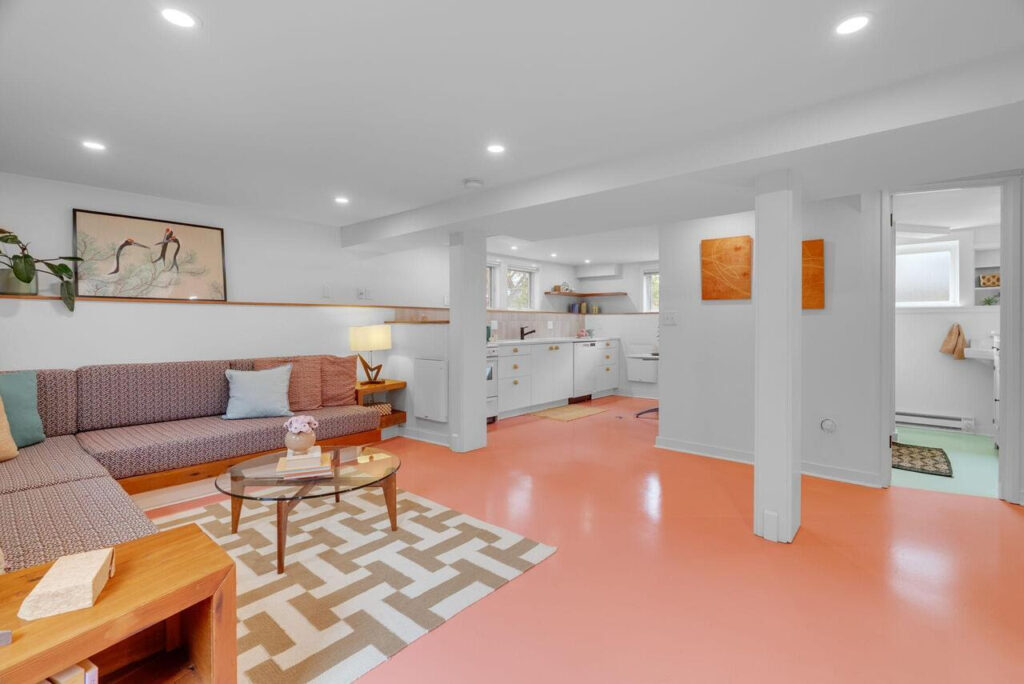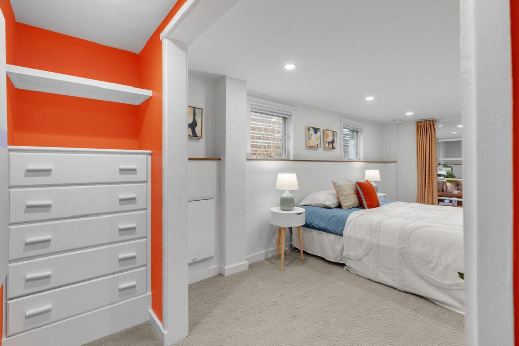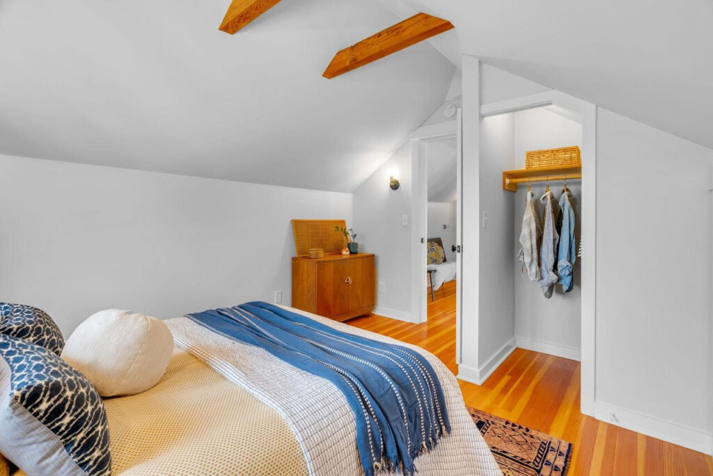 Upstairs, two additional bedrooms feature exposed salvaged beams from the original home and share a beautifully updated bath with custom vanity—offering a peaceful, architectural retreat. The daylight lower level lives like a private apartment, featuring a separate entrance, kitchen, sitting area, bedroom, & bath. Ideal for multigenerational living, hosting guests, comfortable family living and play, or income-producing rental use—offering exceptional flexibility & strong passive income potential.