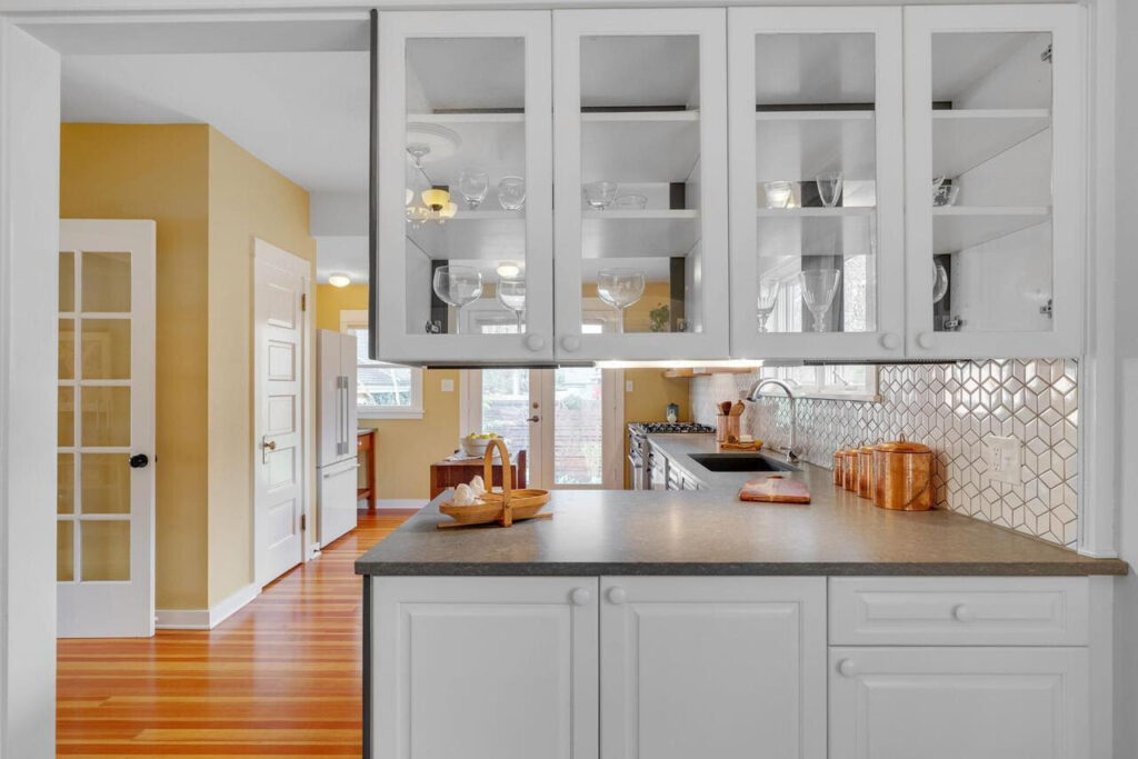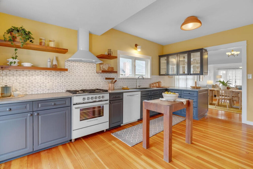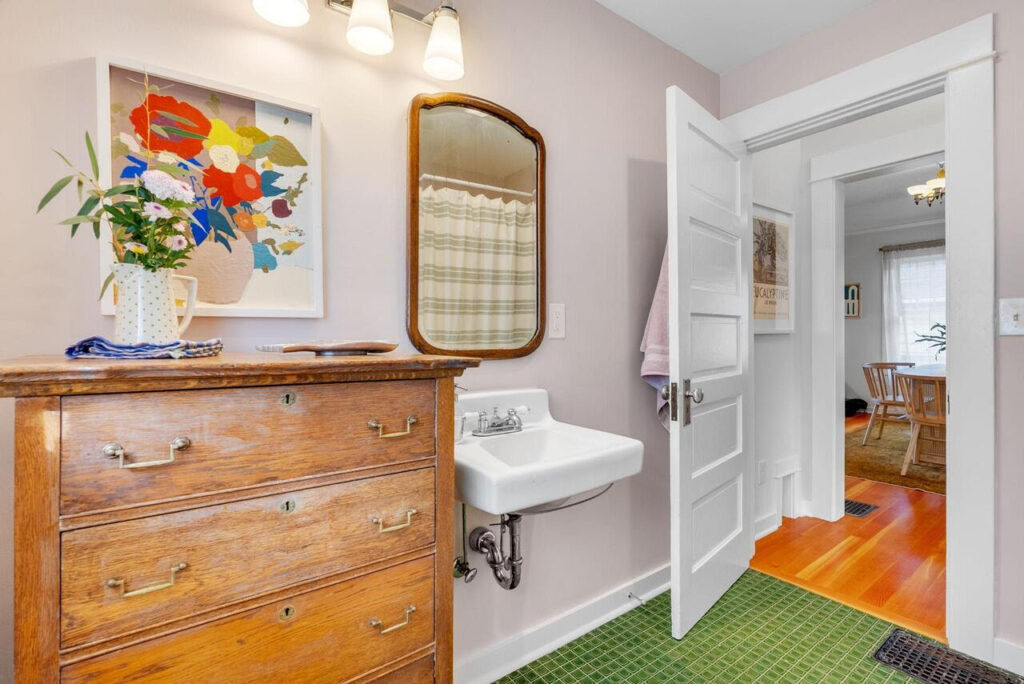Inside, high ceilings, gentle natural light, and dreamy fir floors accentuate original details and vintage lighting. The home is a beautiful marriage of historic character and modern updates, showcasing thoughtful craftsmanship and distinctive bungalow charm throughout.