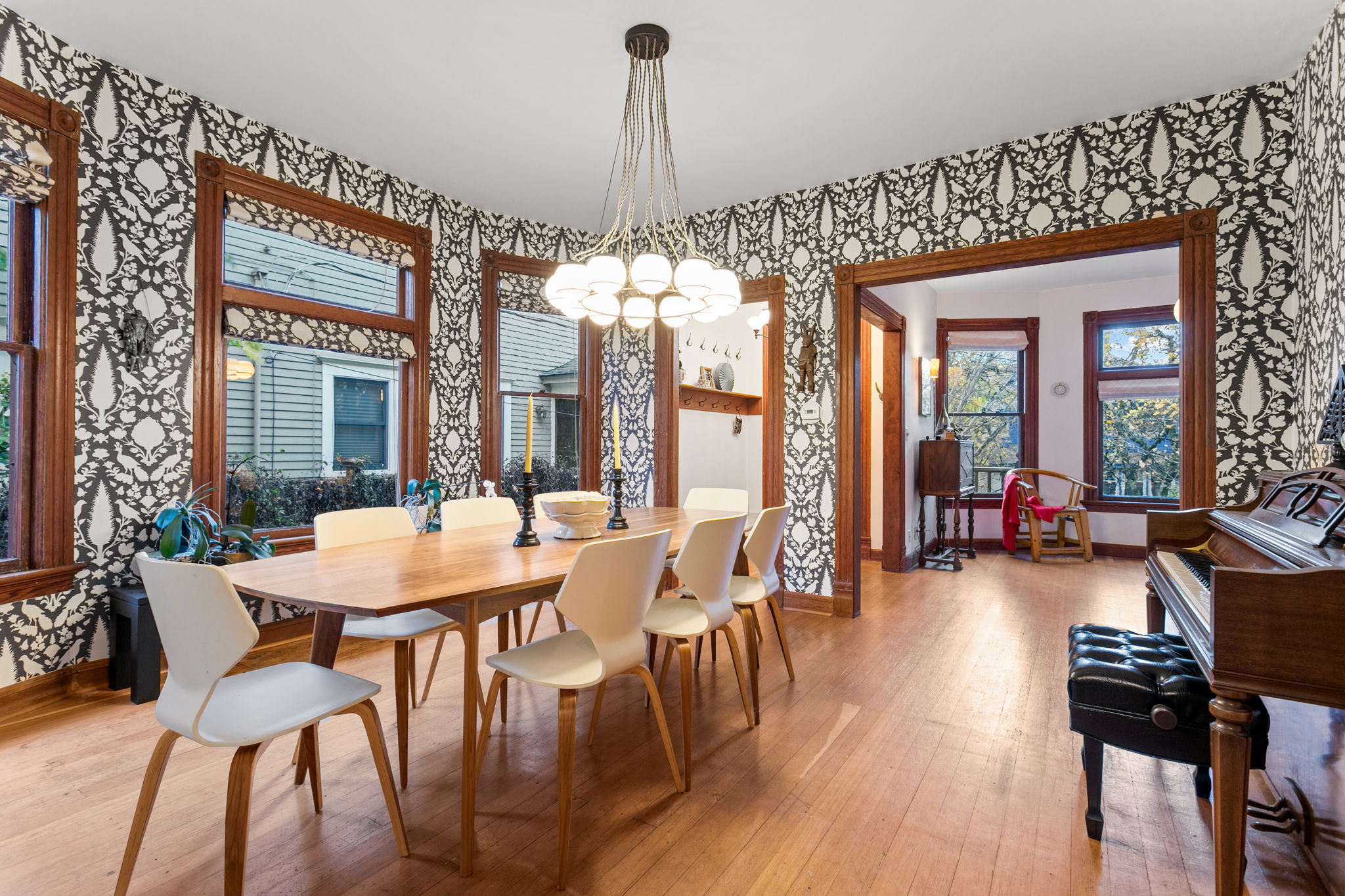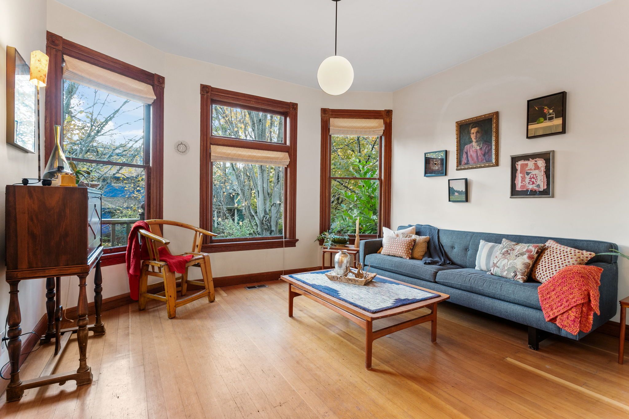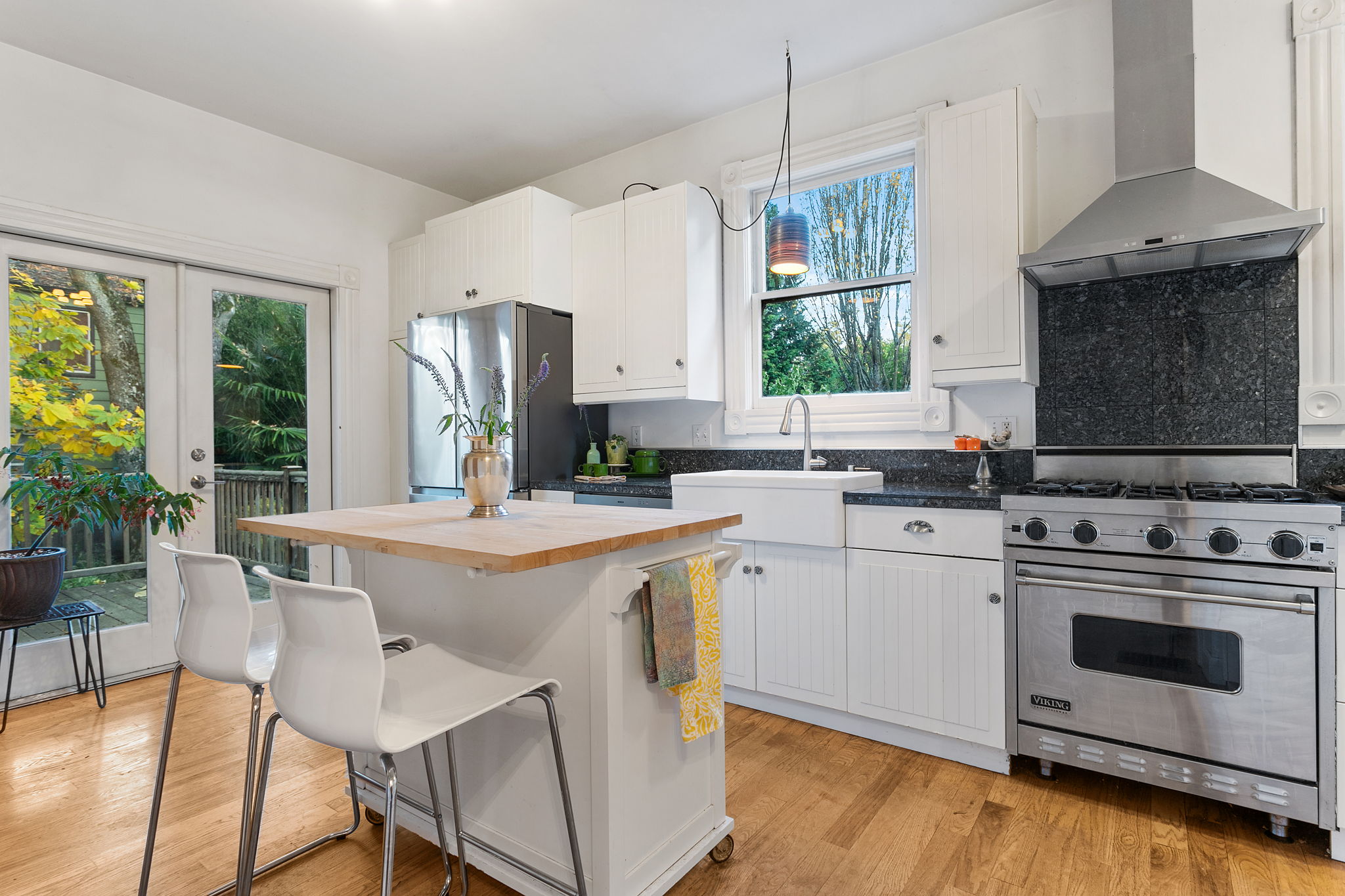 1902 Folk Victorian, a fusion of early 20th century design and contemporary flair! High up, with an outdoor sitting area, the transom-topped entry beckons. Mosey in and sit a while in the parlor till supper is served in the dazzling dining room. Gourmet kitchen featuring a farmhouse sink, Viking stove and glass doors out to the patio and fenced yard. Two bedrooms and a clawfoot-tub-endowed bath round out the main level. Meander upstairs to find a cool wood-clad ceiling with skylights in the swooping open flex zone, plus two groovy bedrooms and a tiled bath. The basement’s high-ceiling blank slate awaits your hobbies and vision. Each space bespeaks an artist’s touch while celebrating original architectural details – punctuating antique millwork with eclectic light fixtures. A treed urban oasis on a bike route in the central city! Stroll to Rev Hall, Cultured Kindness, Sweet Pea, Nostrana and more. Ramble through historic Lone Fir – Portland’s second largest arboretum!