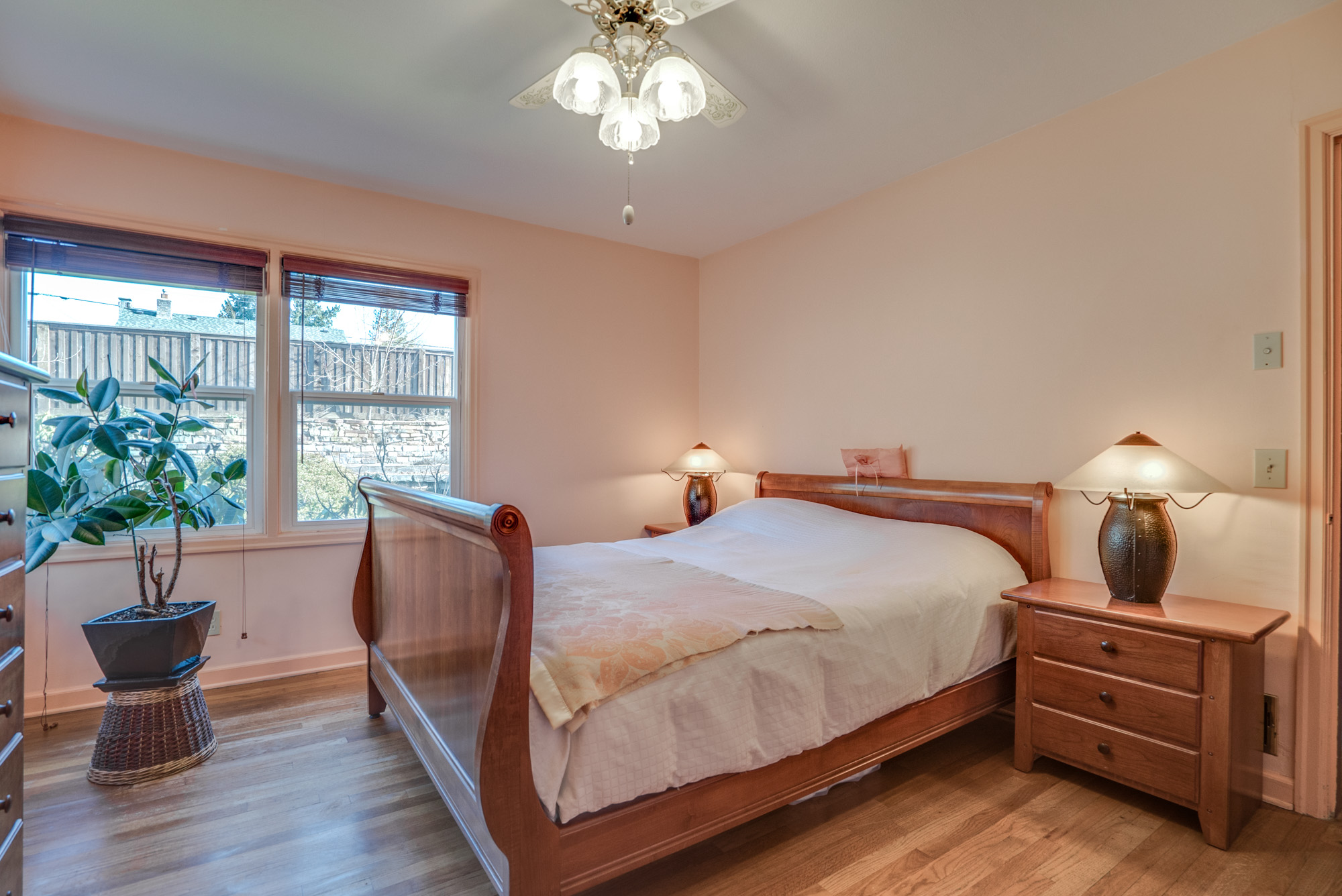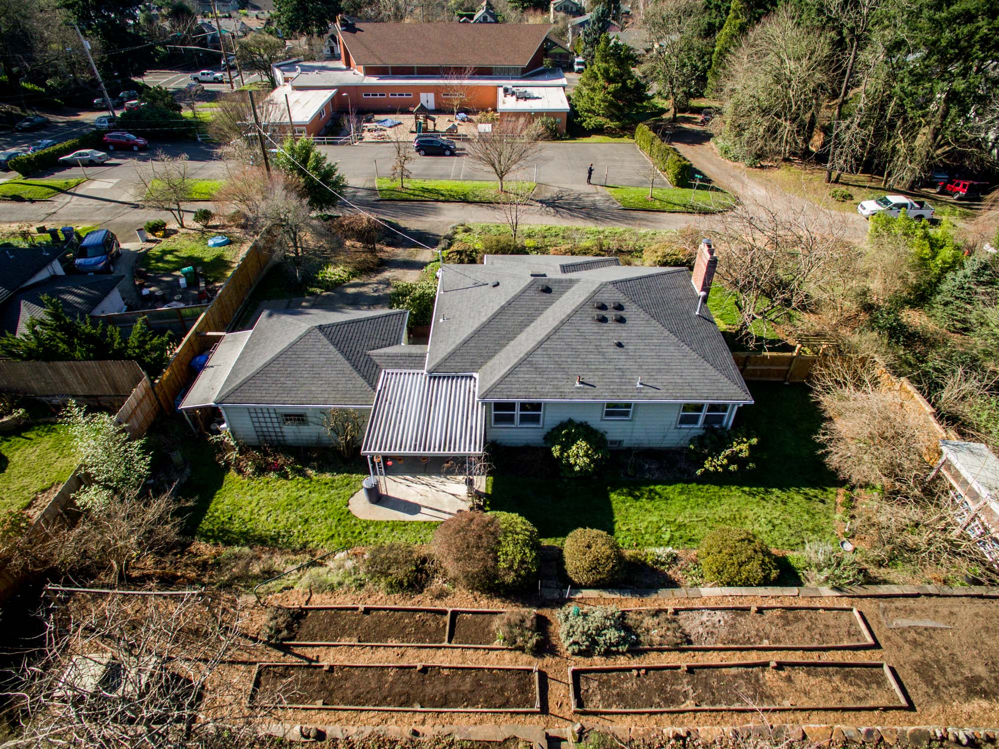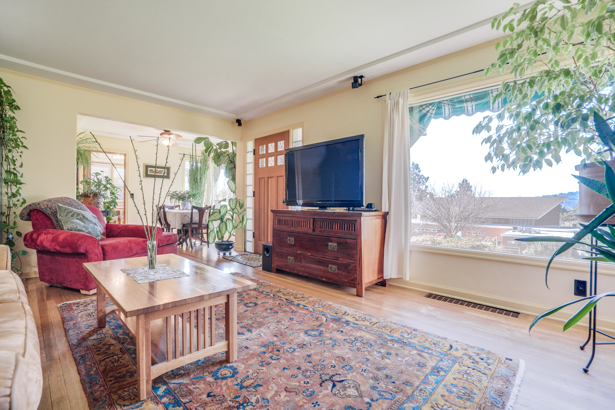 Quaint home with a view of the west hills on spectacular, large lot. 2-car garage. Organic gardener’s paradise: lush Japanese maple, wild garlic, Italian plums, cherries, blueberries, raspberries, strawberries, asparagus, pears, nectarines, and herbs. Hardwood floors. Two fireplaces. Vintage kitchen. Lots of updated plumbing, electrical, furnace, AC and many windows, yet room to make your mark—add a second story to create a beautiful, large view home, build an ADU…limitless possibilities!
