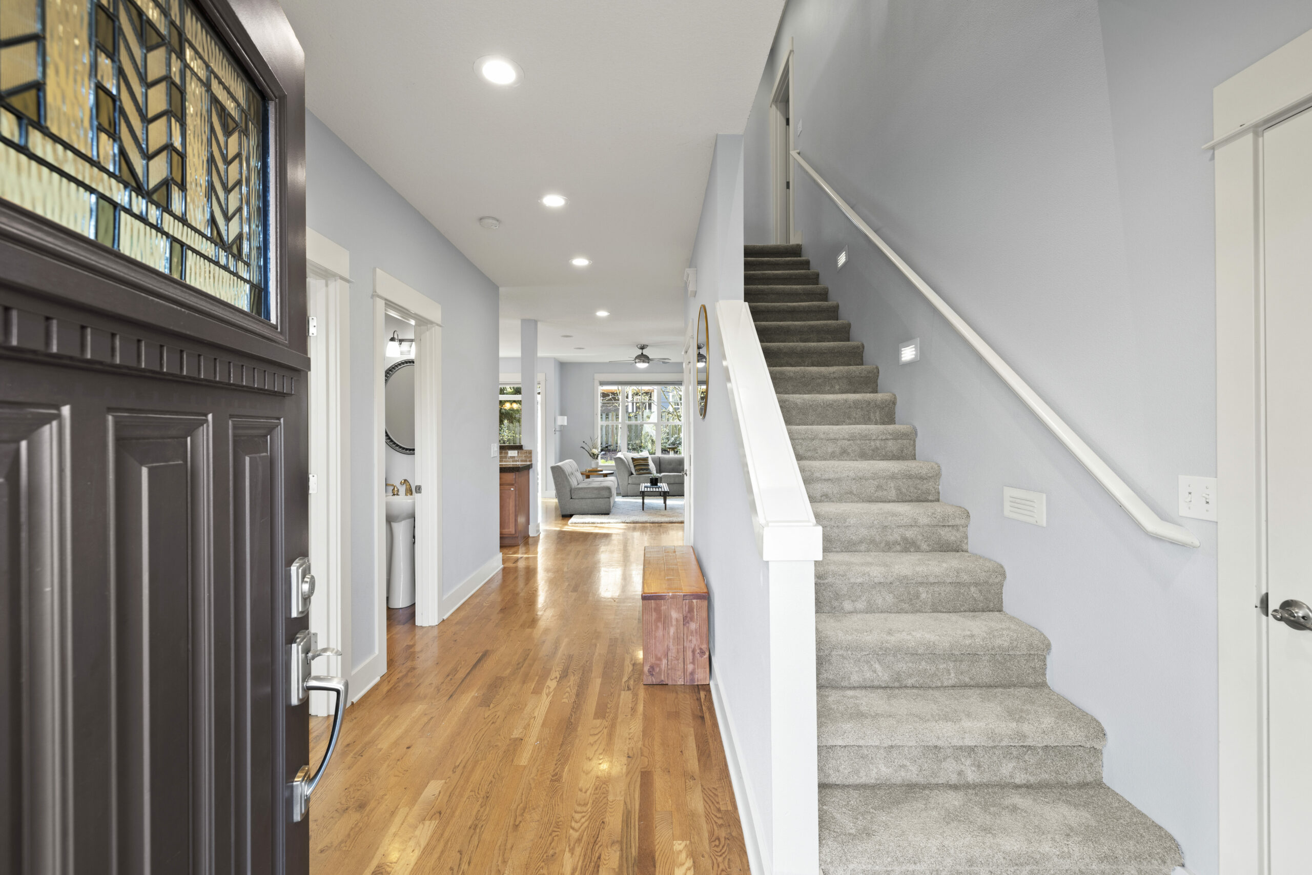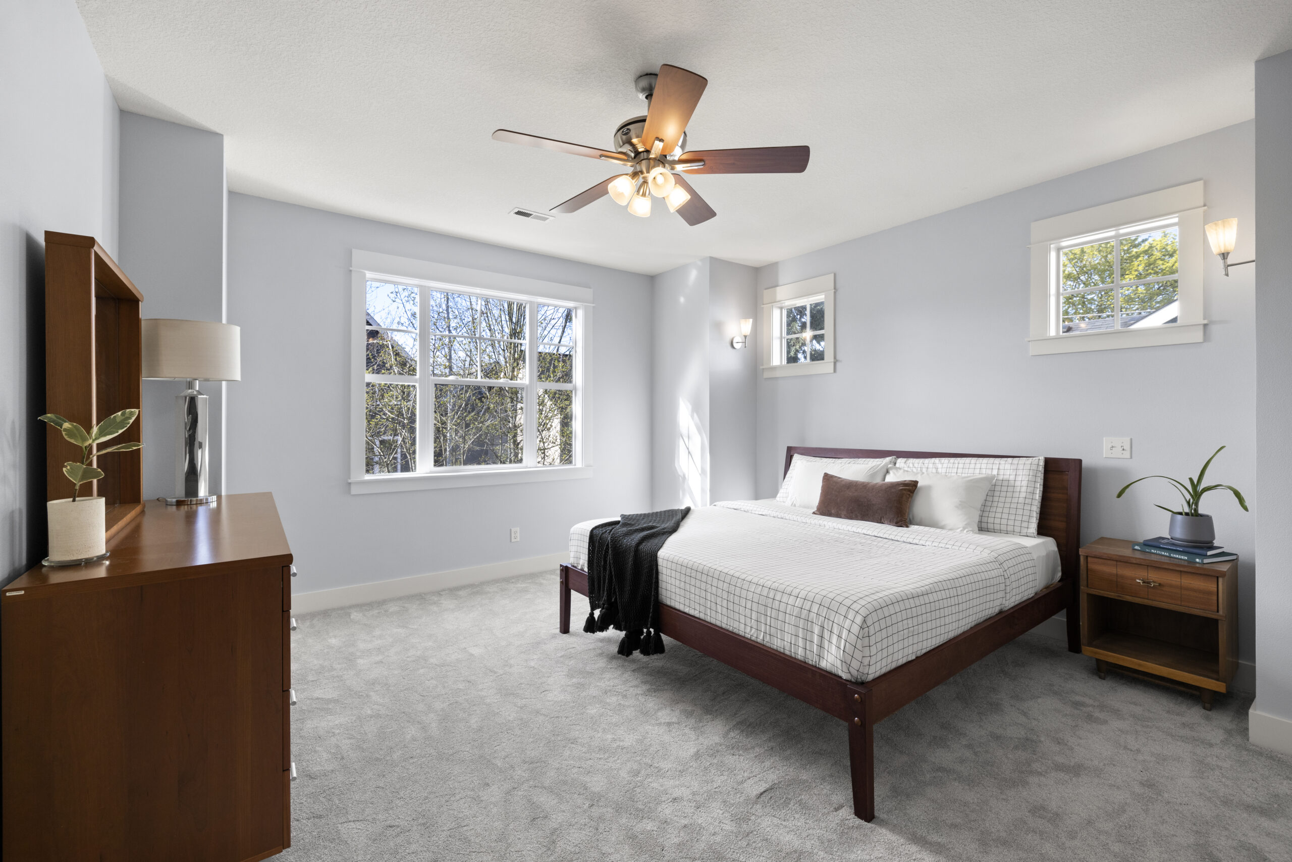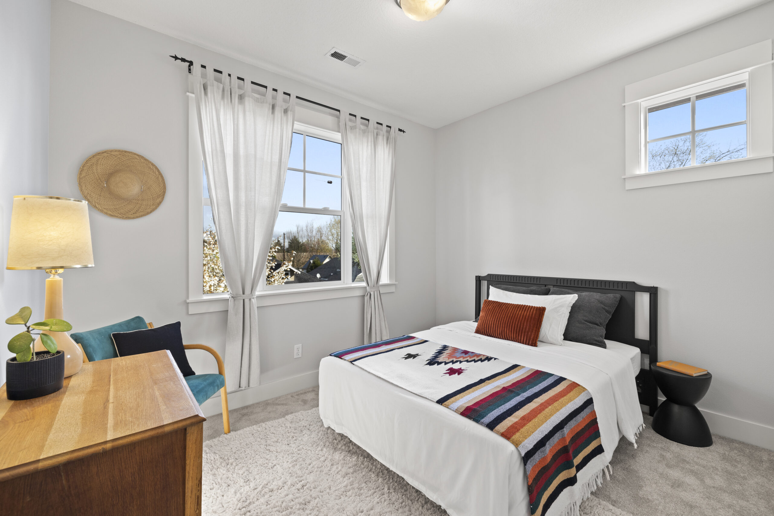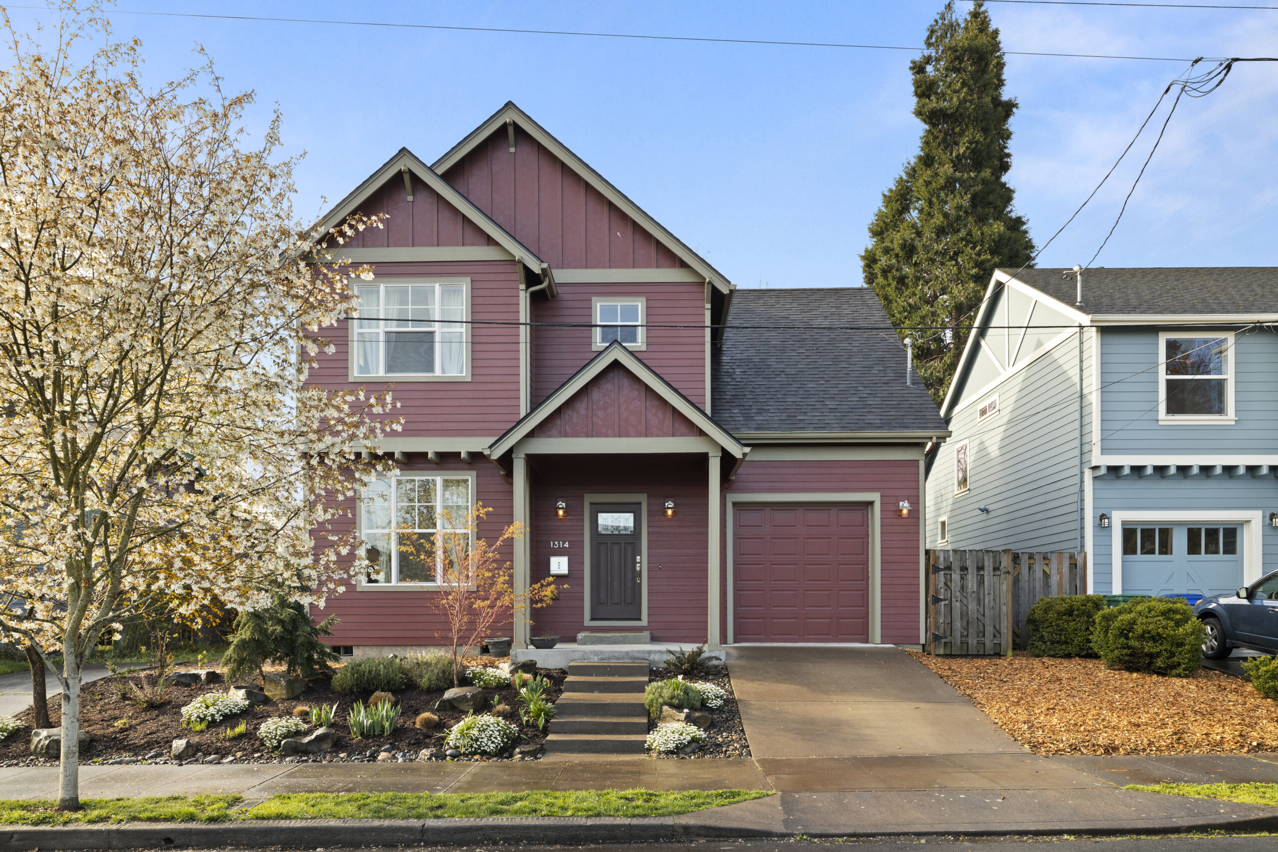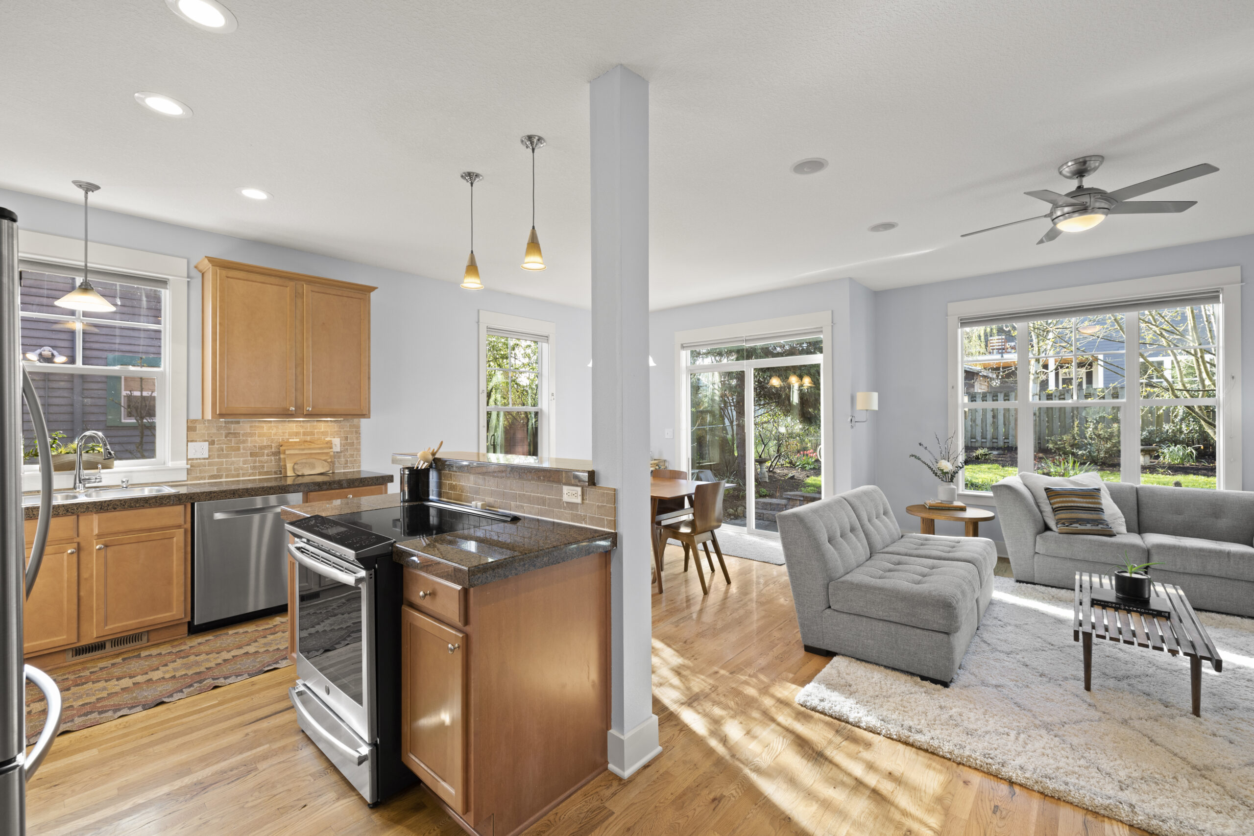 View ListingMarvelous modern living in historic Woodlawn! Architect-designed, move-in ready home with a smart, versatile floor plan, flawlessly maintained by the original owners. Beckoning garden views, an open floor plan and solid hardwood floors greet you from the wide entry. Awash in light from extensive windows on three sides, the inviting great room features a kitchen with island and newer appliances, dining area with slider, and spacious yet cozy living space with gas fireplace. Rare main floor bedroom, den or office! Feel the cushy new carpet underfoot as you head upstairs to the primary bedroom with walk-in closet, en suite bathroom and plenty of room for a king-sized bed; plus rooms for kiddos, guests, hobbies and movie nights. Oh the convenience of upstairs laundry, newer AC and an attached garage! Lovely fenced, south-facing yard with patio and summer shade. Two minutes by foot to Dekum Triangle restaurants and park! Convenient to bus, bike, and vehicle corridors.