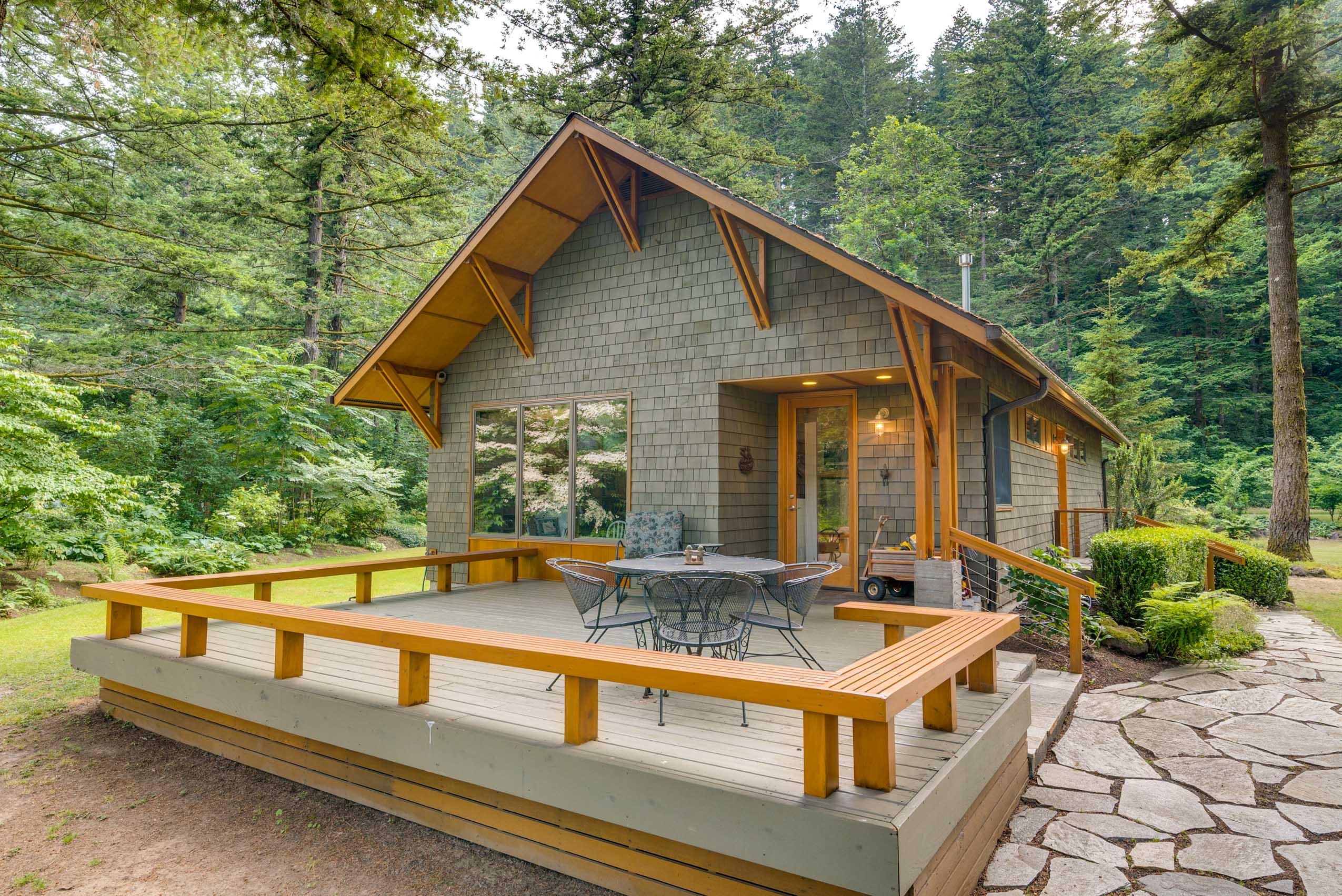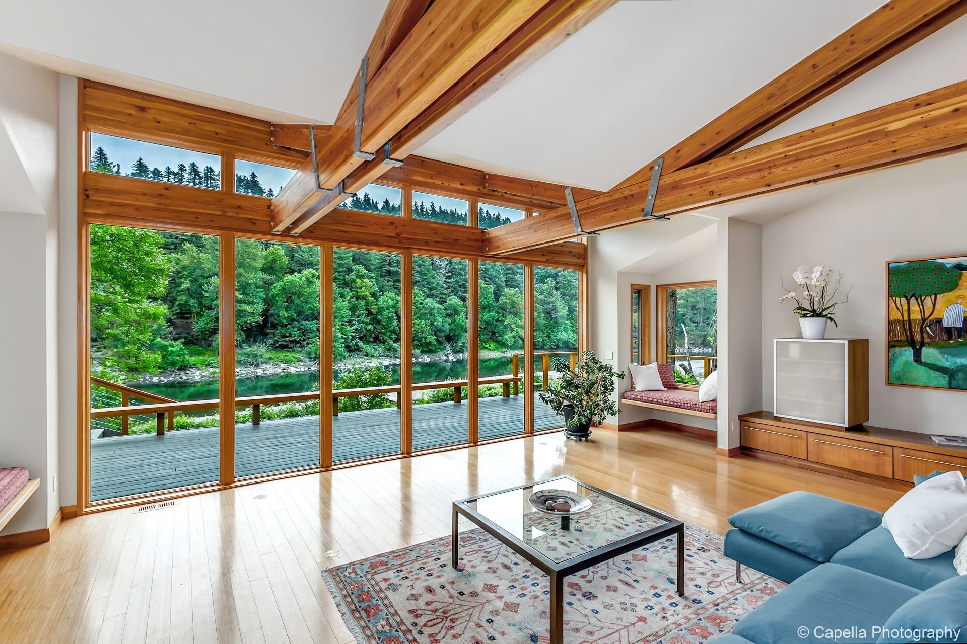Enjoy the sound, sight, and feel of the Sandy River from this one-of-a-kind property. Take it all in from the wrap-around decks, or walk a few paces to swim, kayak, or fish from your own beach. You’ll be able to get away from it all. Every. Single. Day. The separate guest cottage makes entertaining a breeze. Join a small number of families who’ve discovered how to be the perfect distance from downtown Portland—a quick 20-minutes will get where you need to be or, stay put, and enjoy the nature that surrounds you.