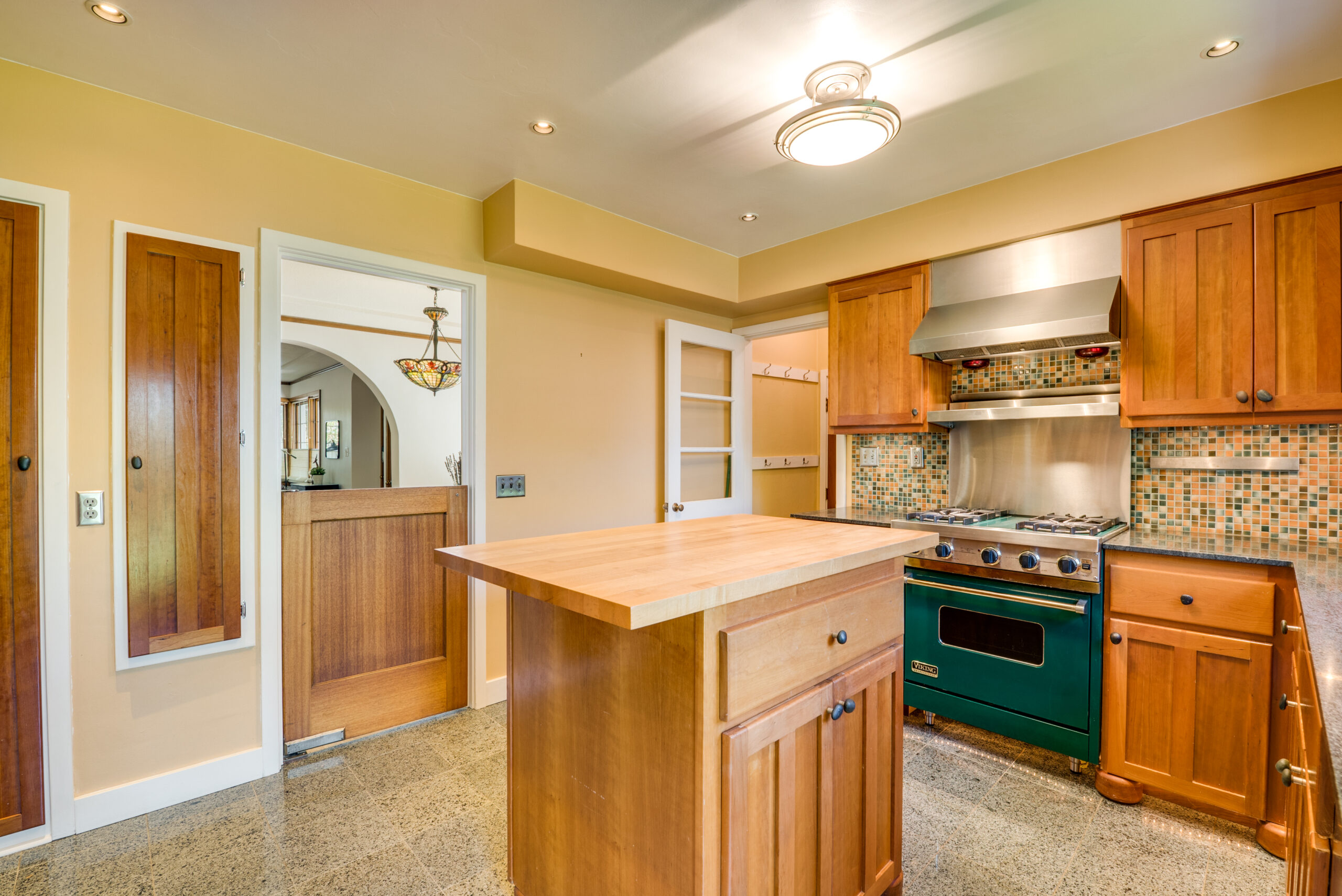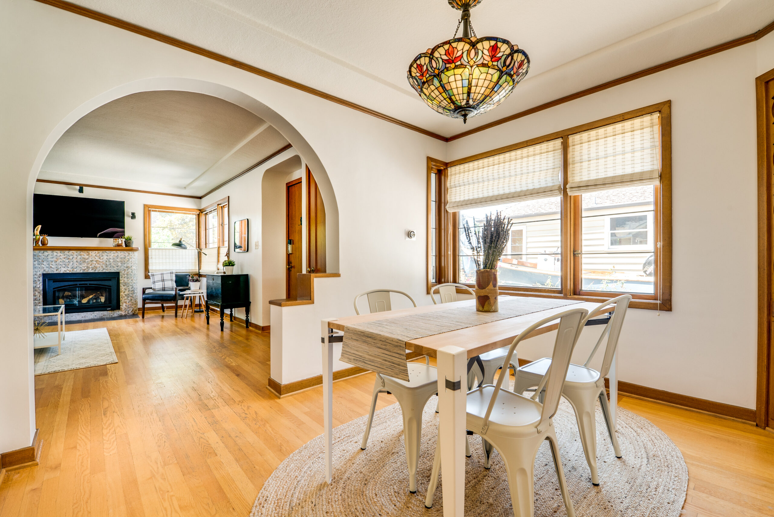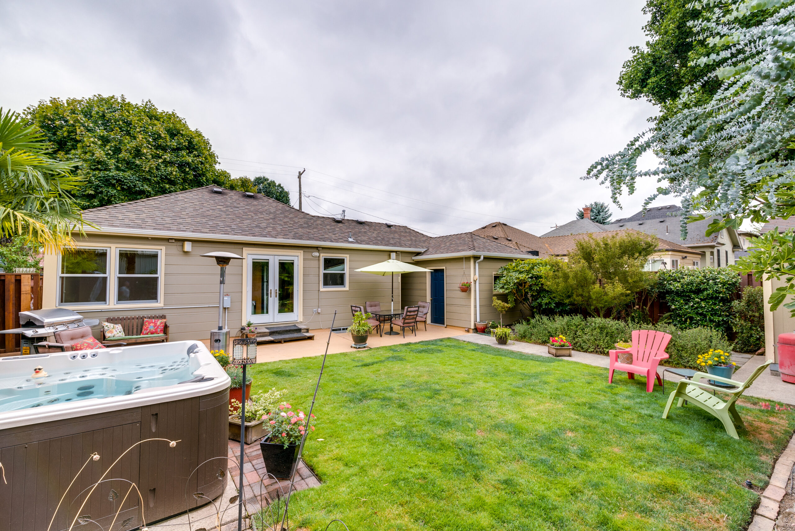 Come home to this meticulously maintained Overlook Ranch! Classic 1940’s touches include gleaming Mahogany trim, original Oak floors, and lots of great built-ins. Filled with thoughtful energy-efficient updates, including new windows, newer roof and gutters, Smart thermostat controlling a gas furnace and a powerful A/C system. Updated kitchen sports a Viking stove, custom island and cabinets, granite floors and countertops, and a great layout. French doors lead out to the professionally landscaped private fenced yard. Includes a sprinkler system, a garden shed for all your tools, and a super sweet hot tub, perfect for winding down at the end of the day! The entire house, indoor and out, is equipped with a Bose sound system, so you are never without music! Garage has a new Smart garage door opener. A great location, just a few blocks from great bars and restaurants including Milk Glass Mrkt, The Old Gold, and Backyard Social, as well as an easy walk to the MAX.