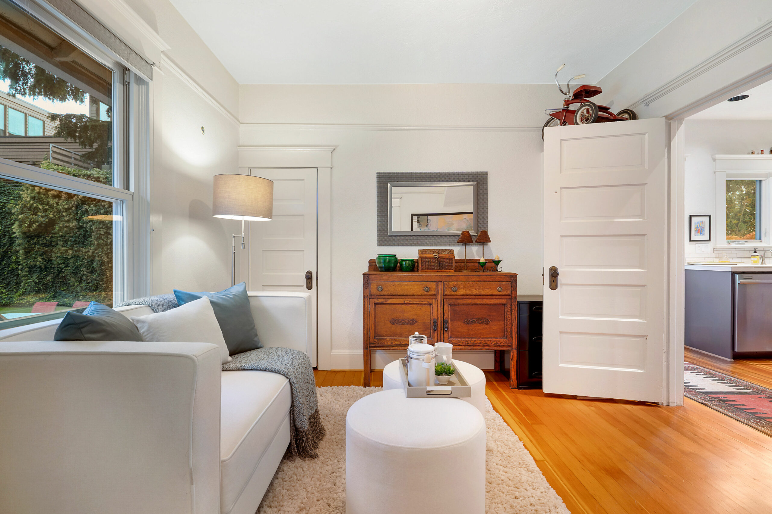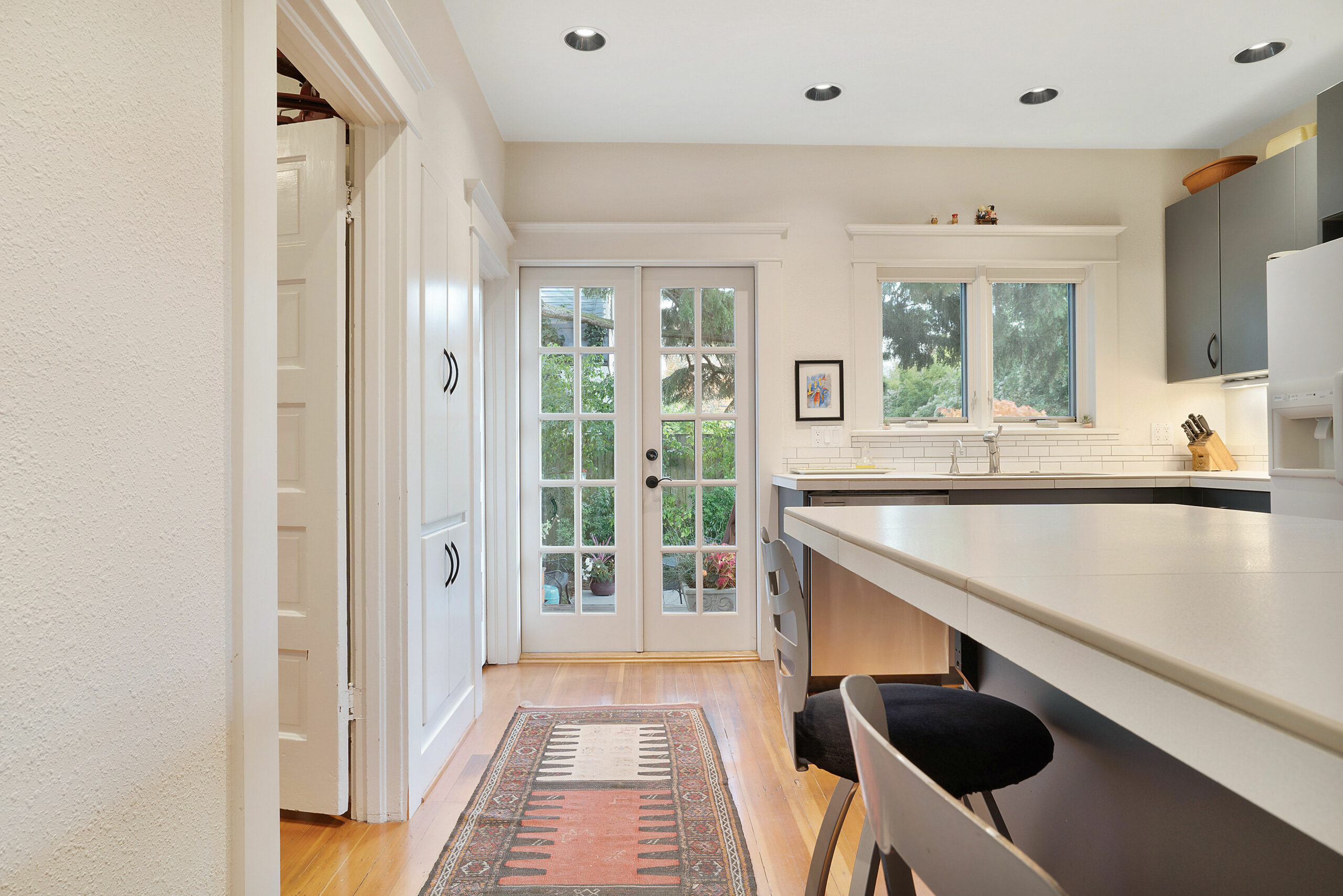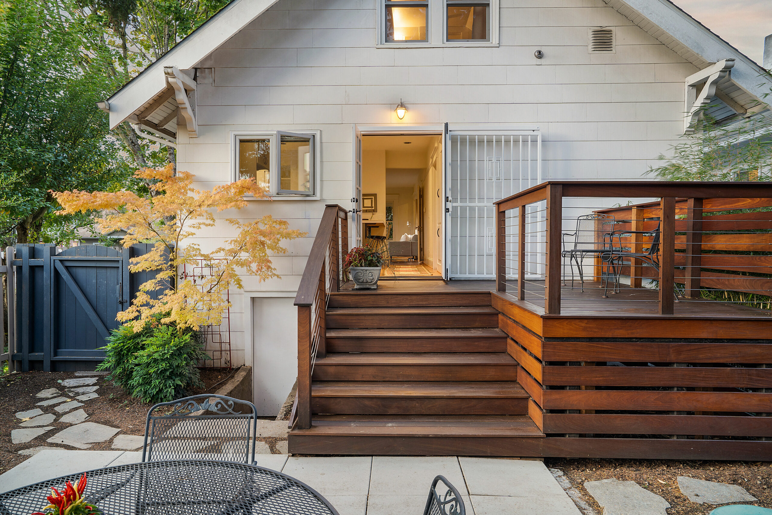 Steps from the classy Division shops lies this surprisingly peaceful bungalow. Offering the ultimate in stylish living, this home boasts thoughtful updates while maintaining the charm of a classic bungalow. The custom designed kitchen features large format tile, an eating bar, high end cabinetry with pantry, and french doors. A stunning marble tiled bathroom with high end fixtures is found on the main floor and a second classic full bathroom is upstairs. The zen-like landscaped yard in front and back is colorful year-round. Lovingly maintained, this is the perfect spot to call home.