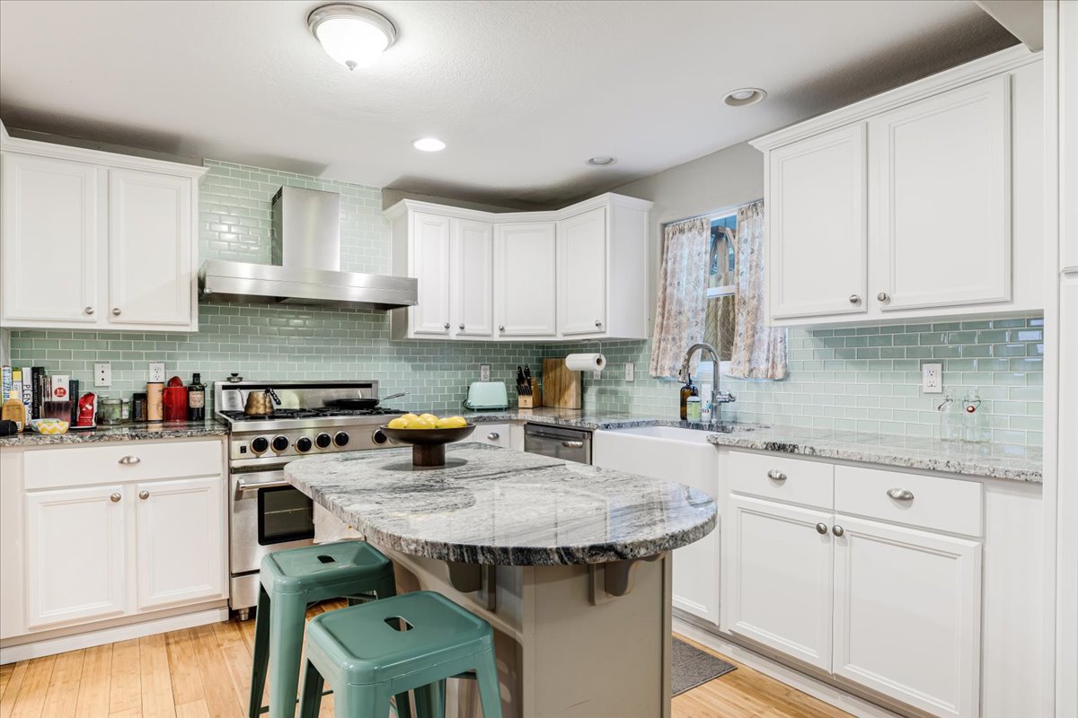 This property has been meticulously designed, featuring a flexible layout and a range of convenient amenities. It offers a spacious layout, with two ensuite bedrooms on the upper level providing privacy and comfort, and an additional two bedrooms on the lower level. Entertainment possibilities are endless with a den on one side of the house and a generously sized living room on the other, ensuring you have the freedom and space to host gatherings, entertain guests, or simply relax without ever feeling crowded. The kitchen is a food lover’s dream, complete with high-end Blue Star culinary gas range, a deep farm-style sink, Shaker-style cabinets, and a beautifully tiled backsplash. Nestled in a tranquil neighborhood, enjoy the convenience of being just a short stroll (less than 0.2 miles) from Maplewood Coffee & Tea via a scenic walking path. Gabriel Park, grocery stores and food carts are less than a mile away, and the vibrant Multnomah Village is just over a mile from your doorstep. This home strikes the perfect balance between the serenity of suburban life and the convenience of city living, in a top-rated school district!