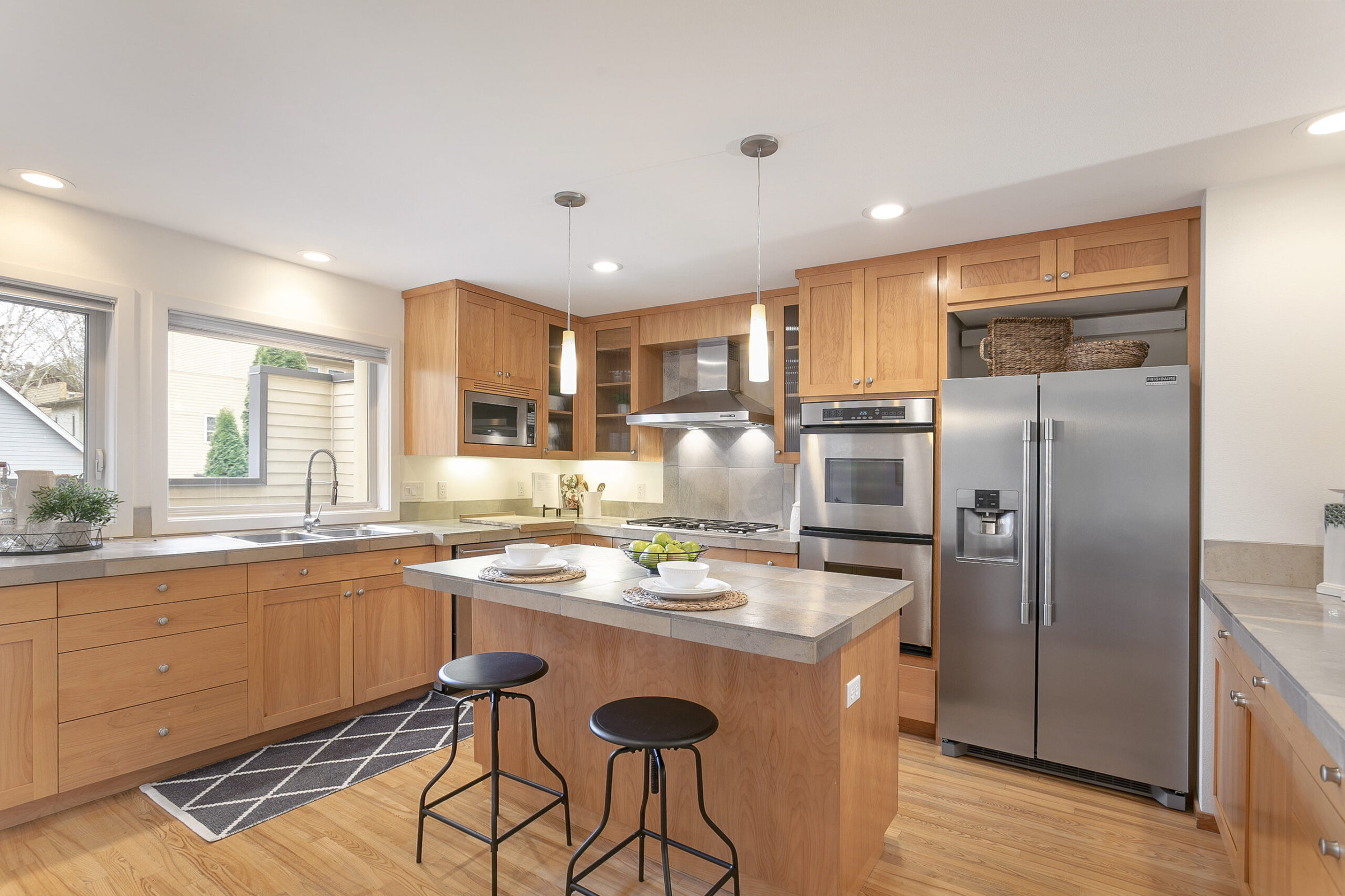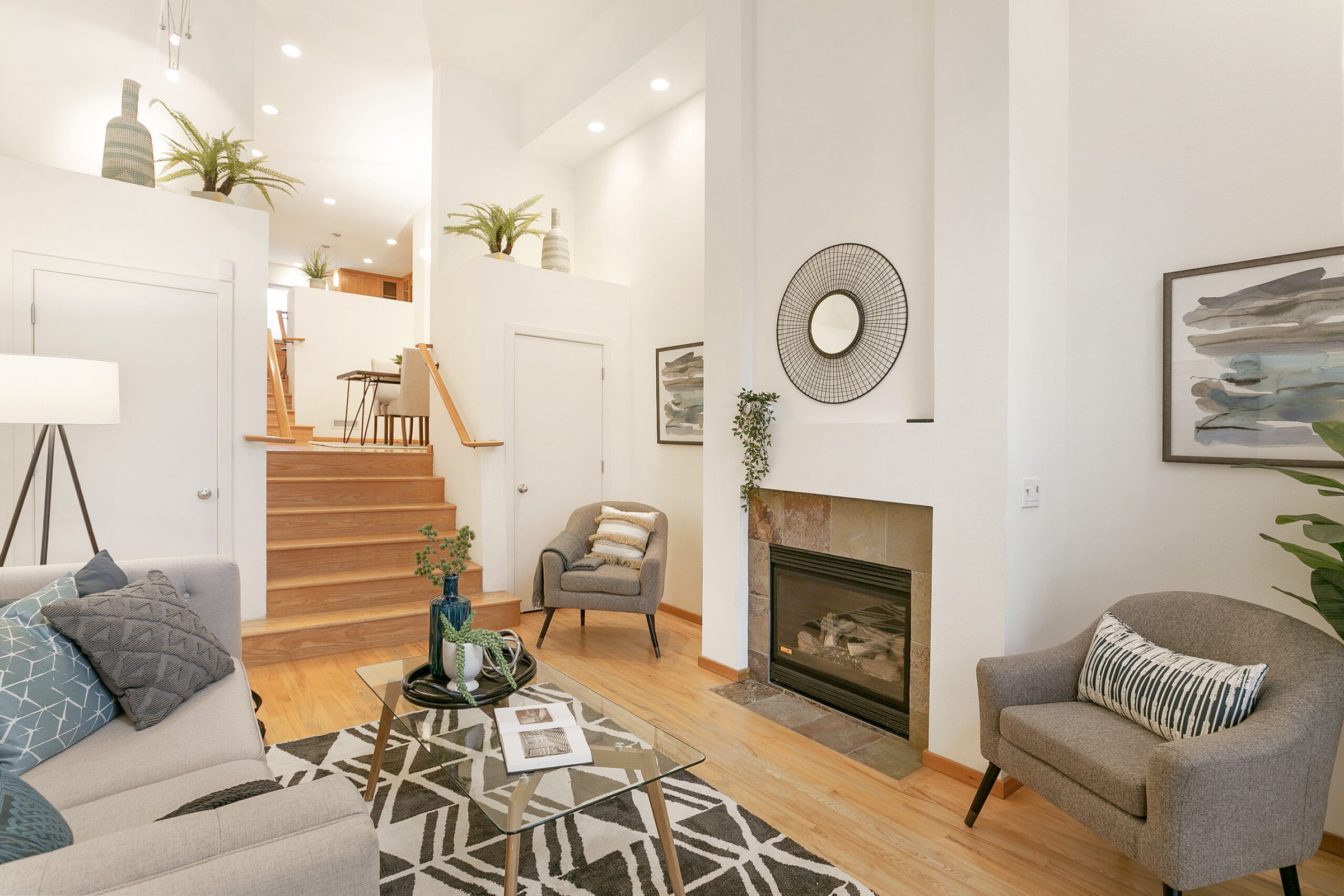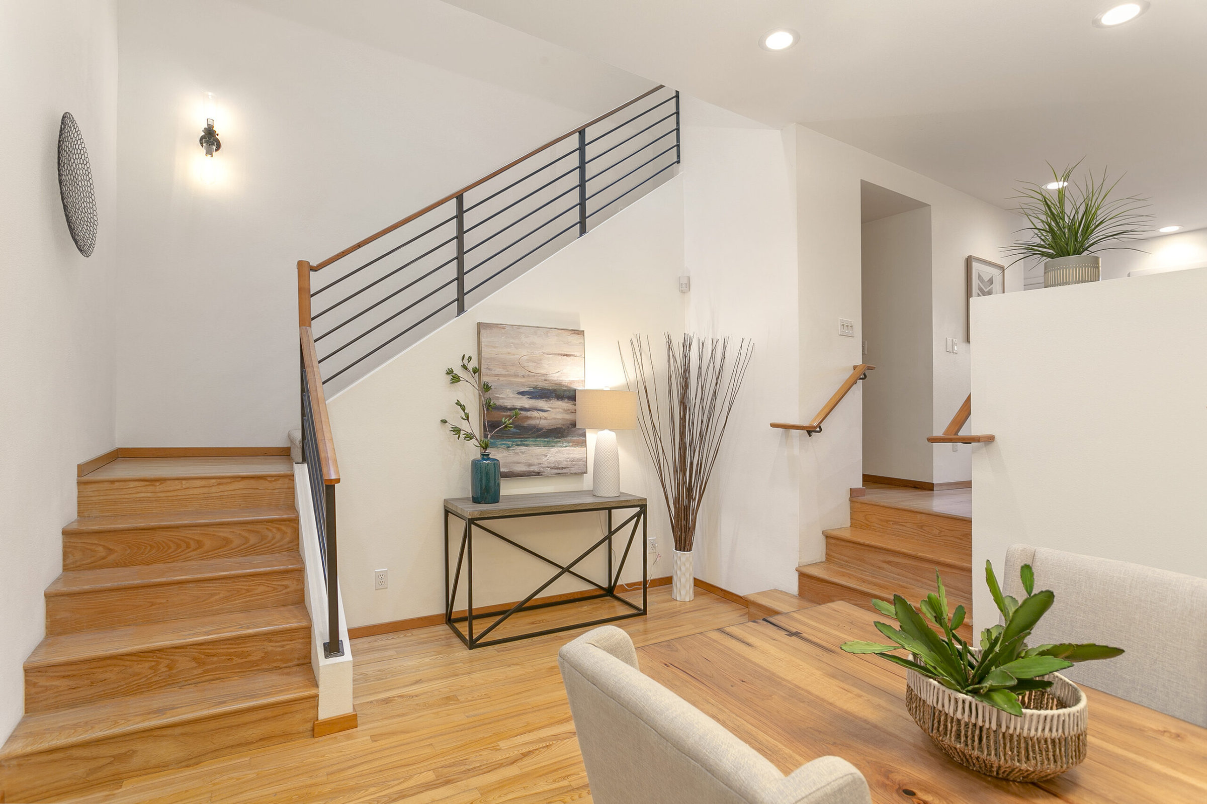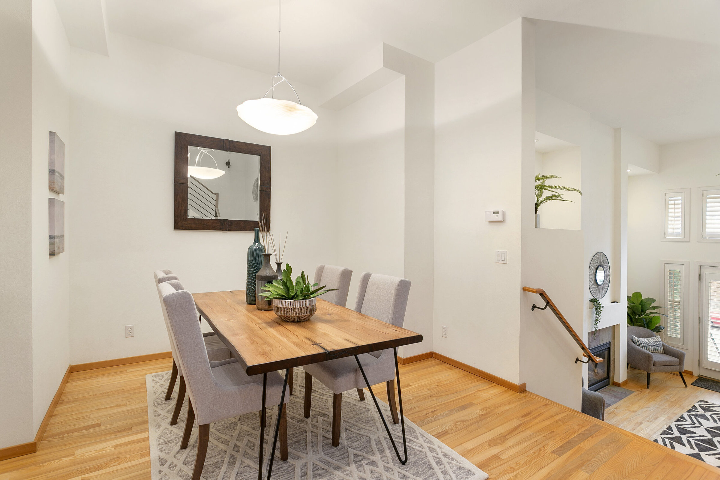 This elegant and upscale contemporary rowhome in the Sullivan’s Gulch and Lloyd Center neighborhoods is move-in ready and waiting for you, with no HOA! Boasting an inset glass front door covered entry, the modern tiered floor plan welcomes all and is ideal for the avid entertainer. Featuring an abundance of natural light, high ceilings, and sleek hardwood floors, the home enters into the living room and features a warm gas burning fireplace to gather around. A stone’s throw away is the elevated combined formal dining area and kitchen which is ready to serve. Stunning details include stainless steel appliances, a gas range, and a central dine-in island with recessed lights above. Private and sure to please, the uppermost level of the home is plushly carpeted and offers an enviable master bedroom plus two additional bedrooms, two full bathrooms, and a discrete utility closet. Behind the home, don’t miss the rear deck and two car garage underneath. You will love living here!