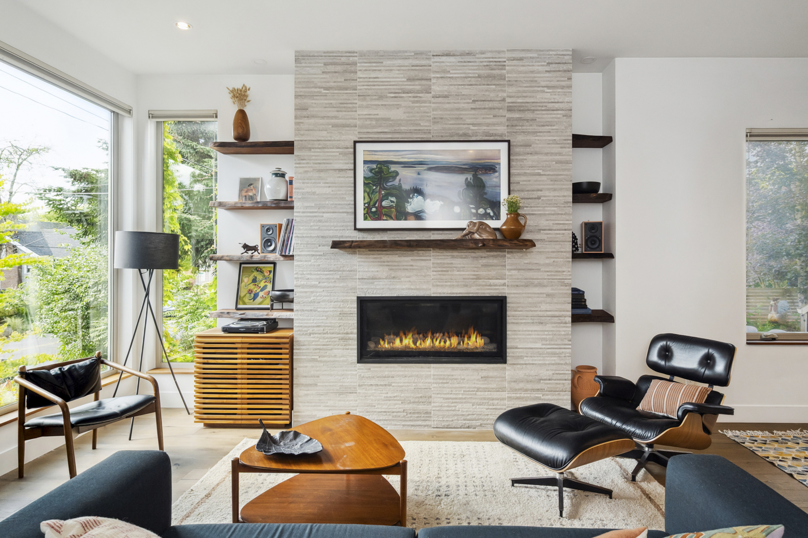 Outdoor living is just as impressive—step out from the kitchen onto a wooden deck with a large built-in gas fireplace for gatherings year-round. From there, head down to a landscaped, shaded backyard oasis—perfect for al fresco dining, summer hangouts, or a quiet moment with a book.