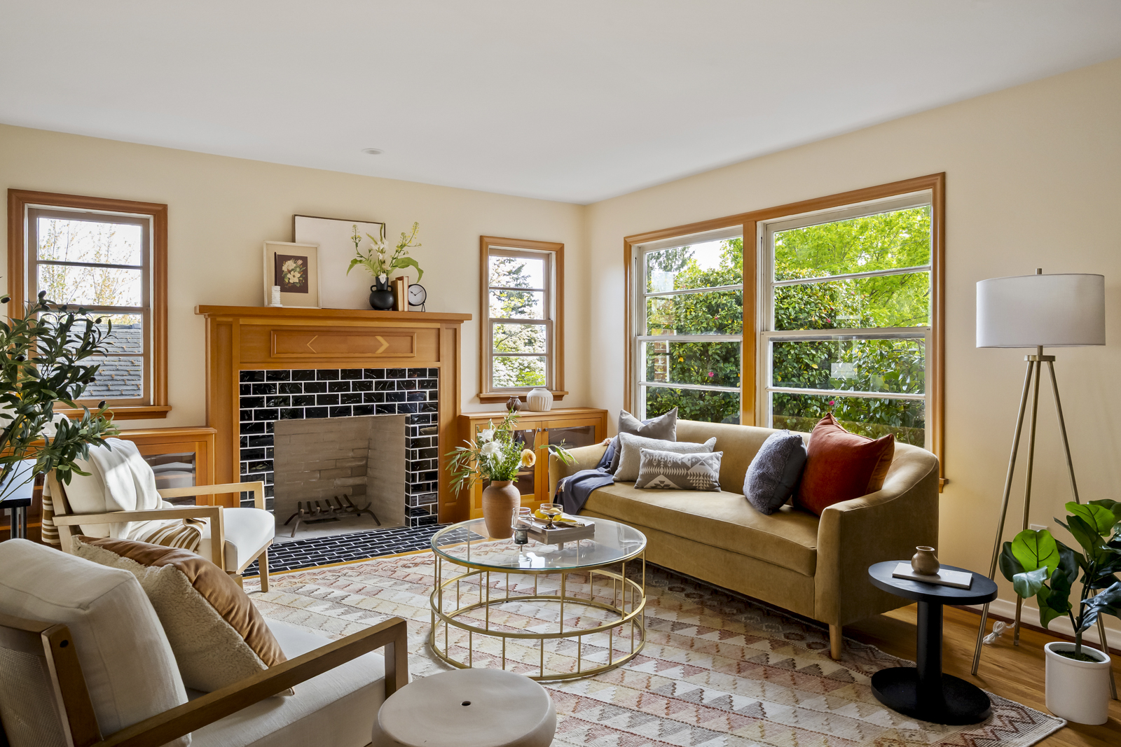 Energy-efficient with a Home Energy Score of 8, solar panels, new furnace, heat pump, and two-zone HVAC system. Significant updates include electrical, water main, seismic upgrades, and a fully rebuilt chimney, hearth, and fireplace.