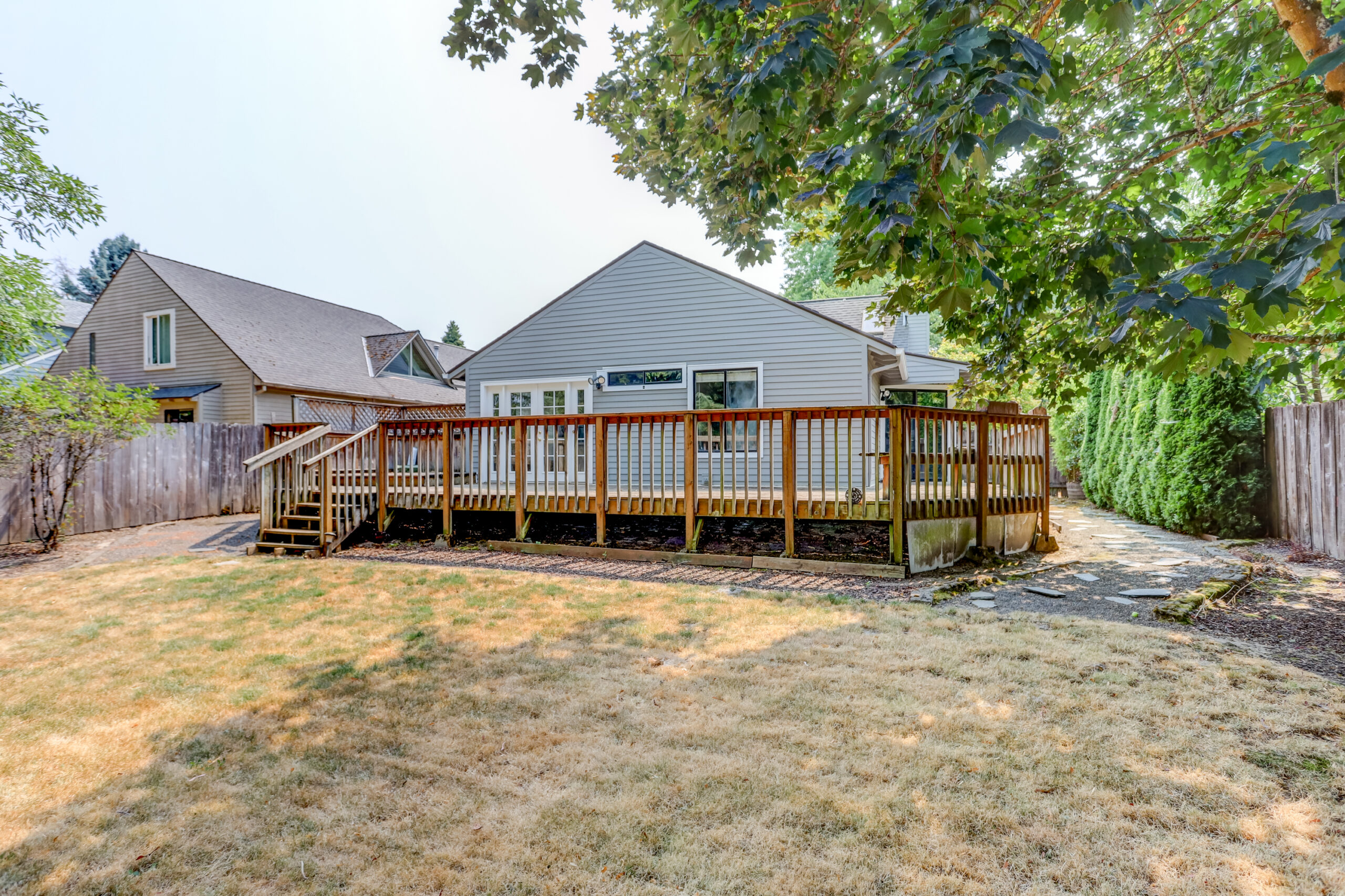 Charming home located in popular Morning Hill Neighborhood! Vaulted living room with fireplace. Two master suites, one on each level. Dining room in kitchen with french doors and large window. Large backyard w/ wrap around deck, perfect for entertaining! Freshly painted inside & out!