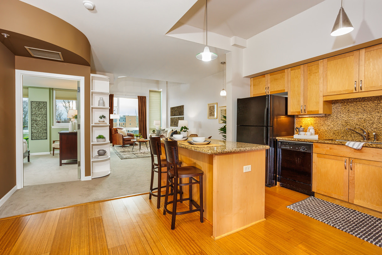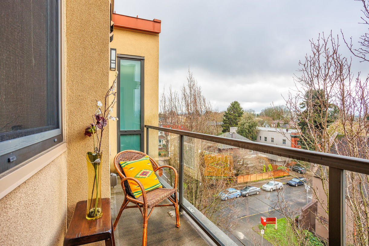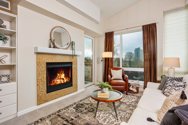 Modern living at the intersection of historic Irvington and Sullivan’s Gulch. Sunny southern exposure bathes this 5th floor unit in natural light. Luxurious living room with high ceilings and a flip-of-the-switch cozy fireplace, flanked by built-in bookshelves awaiting your personal library, and treasured knick-knacks. Step out onto the balcony to soak up some vitamin D or catch some fresh air with the cool tilt-to-vent door. The chic kitchen with modern appliances and island is perfect for hosting! This clever layout features a generous bedroom with double closets and en suite access to the spacious bathroom with ample countertop space; a rare find! Bonus- den/office provides work-guest overflow space. In-unit laundry. Lock and leave with confidence in the secure entrance and parking garage, providing peace of mind. Go car-free with a walk score of 94! Essentials, plus fun spots, just a stone’s throw away. Easy access to downtown, transit, and freeway, too.
