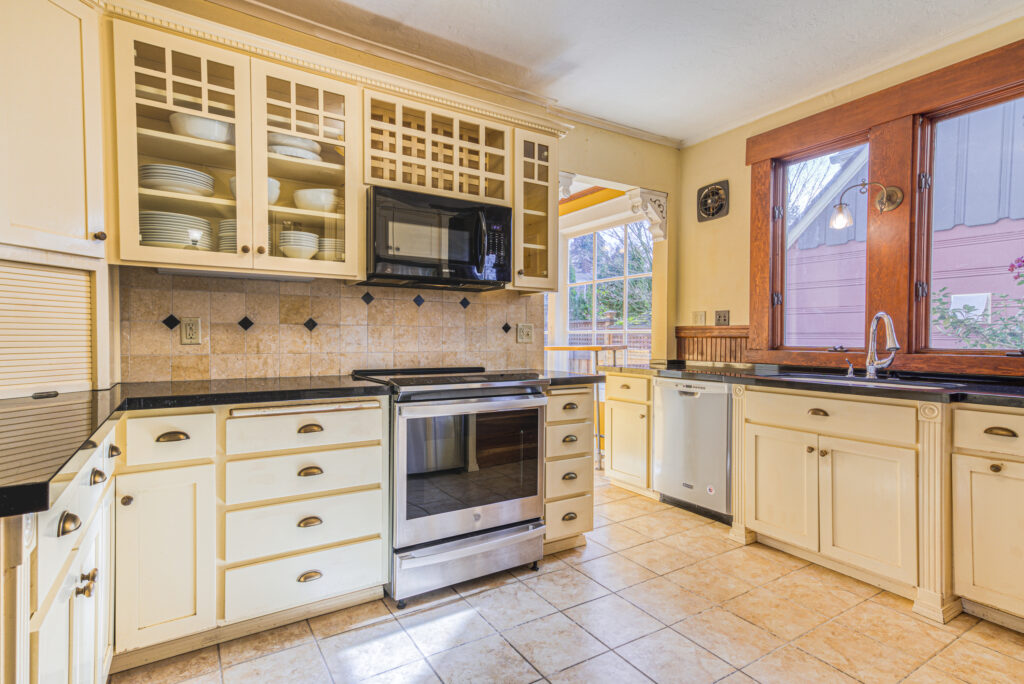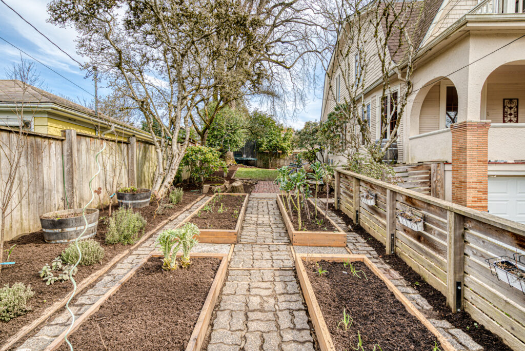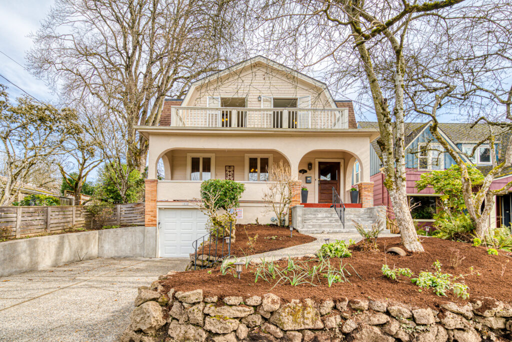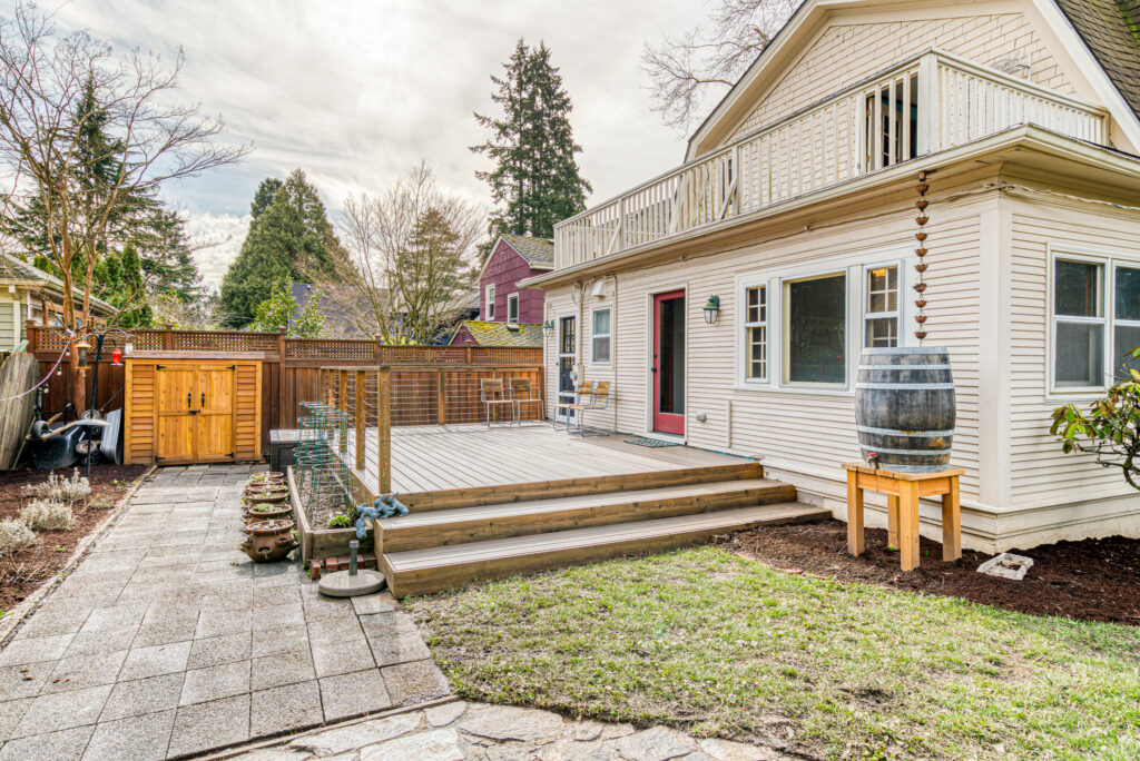 Vintage 1900 dutch colonial updated with smart home features! Graceful spaces and original features preserved. Smart updates include zoned HVAC electric heat pump for heating and cooling, ready for car charger, seismic retrofit, induction range, tons of insulation added, new garage door. Gorgeous oversized yard with composite deck, new garden beds and plenty of fruit trees. Three bedrooms upstairs with two large balconies, city and Tabor views. Tons of potential for more cosmetic updates! Energy Score of 8!