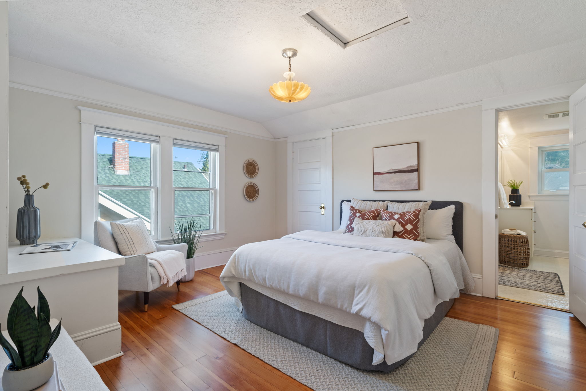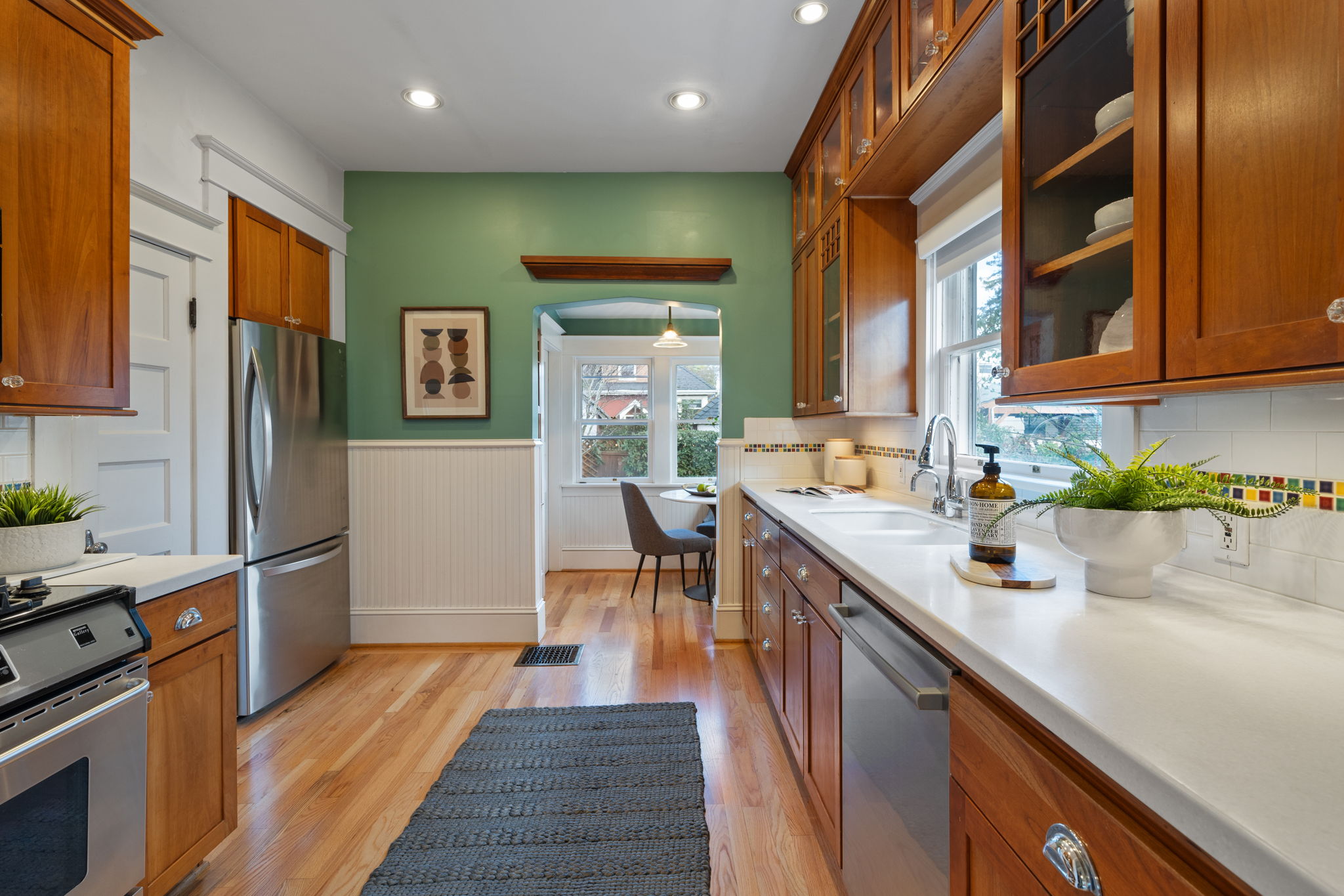 View ListingWell Maintained Craftsman in prime Alameda/Beaumont location. Welcoming Front Porch and Formal Entry. Light-filled living room with gleaming newly refinished hardwood floors, a wood-burning fireplace, and airy windows opens to formal dining room with gorgeous millwork and built-in cabinetry. Kitchen is roomy with corian solid surface countertops, stylish fixtures, a walk-in pantry, and an eat-in nook. A good sized bedroom, bonus/office room and a full bath round out the gracious main floor. On the second floor you will find two large bedrooms, a full continental bathroom, a second bonus room AND closets galore! Newly refinished wood floors in both upstairs bedrooms. New paint throughout. The lower level includes a media/rumpus room with built-in shelving, laundry, storage and a wood shop. The back yard is a peaceful retreat, with a useful deck and a lush manicured garden. Nicely paved driveway leads to a functional one car detached garage. GREAT systems: 200 amp electrical panel; Furnace/AC (2022); New Sewer, Water Line and PEX plumbing in 2023. Foundation and Seismic retrofit in 2017. Location is a 10/10 — Nestled on the picturesque Alameda ridge yet close to all of the shops, restaurants and hot spots of Beaumont Village!