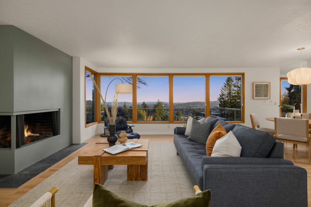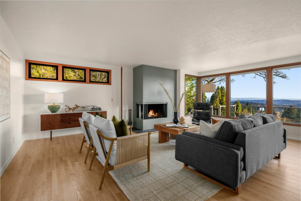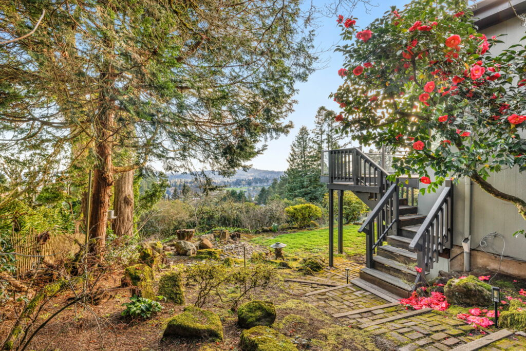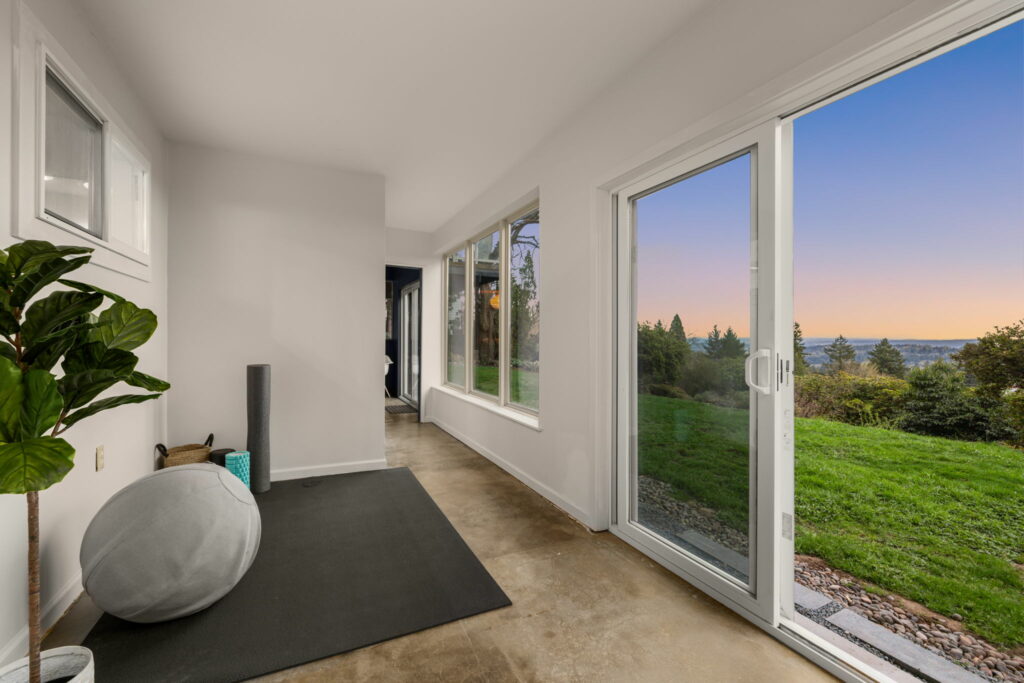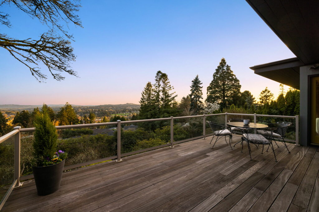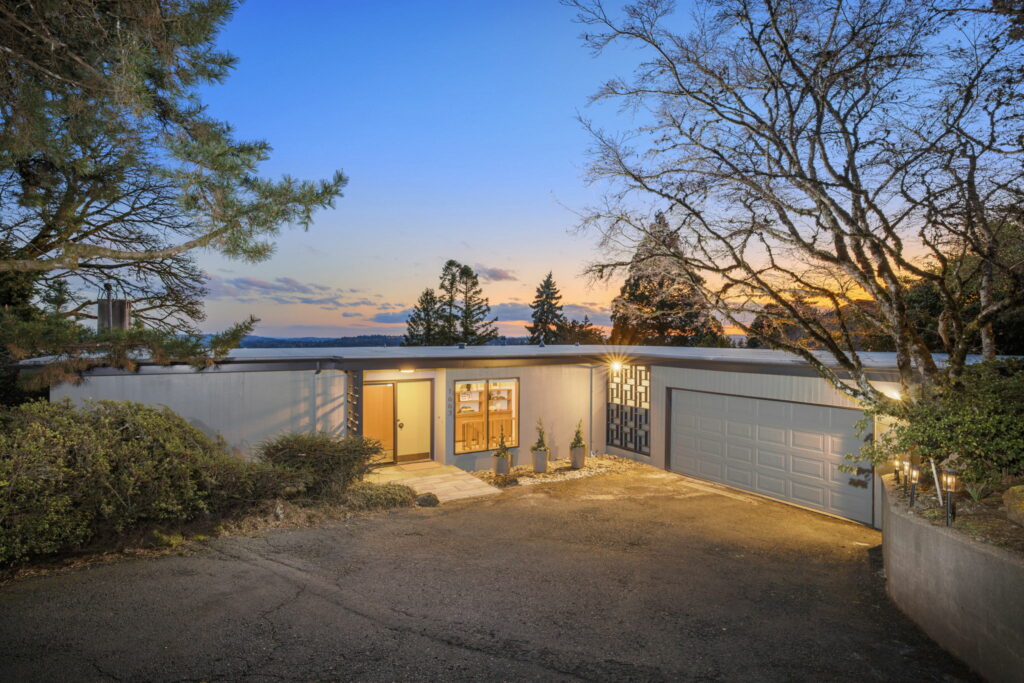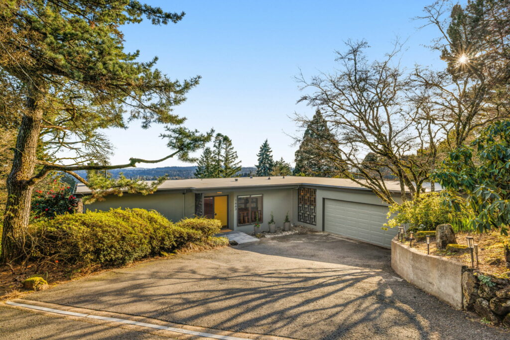 This 1957-built residence is a sight to behold. A modest, quiet aesthetic gives way to remarkable views as far as the eye can see. From east to west–the foothills of the Mt Hood National Forest, the Willamette River winding its way, and expansive southern exposure with valley views. Look west for many varied sunsets. It’s the best of all worlds here; where nature + the city are closer than you think.