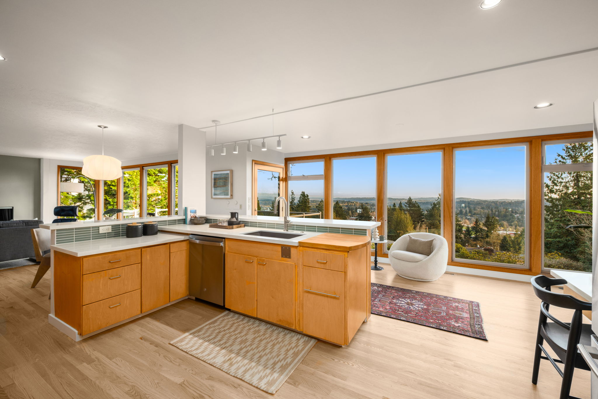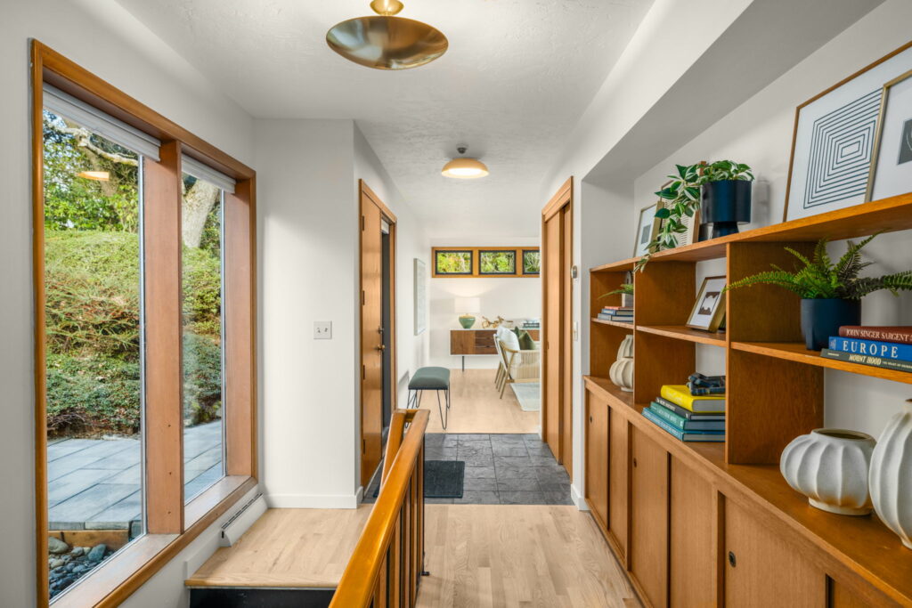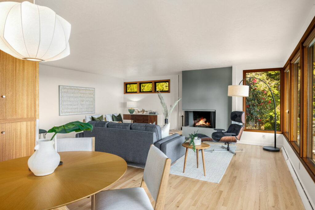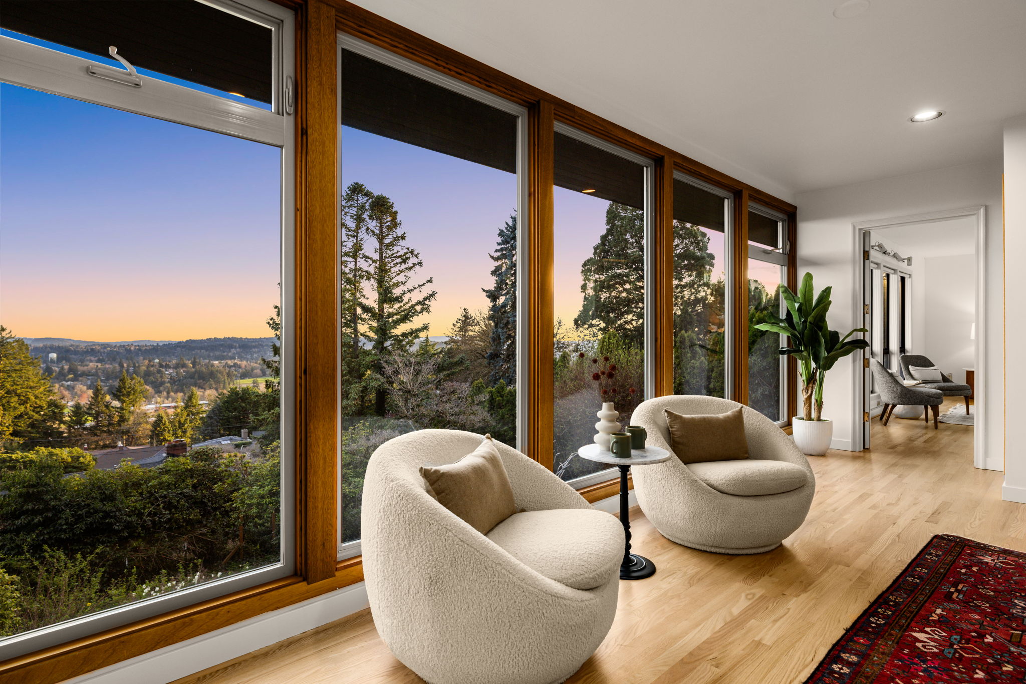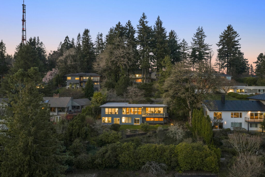 This 1957-built residence is a sight to behold. A modest, quiet aesthetic gives way to remarkable views as far as the eye can see. From east to west–the foothills of the Mt Hood National Forest, the Willamette River winding its way, and expansive southern exposure with valley views. Look west for many varied sunsets. It’s the best of all worlds here; where nature + the city are closer than you think.