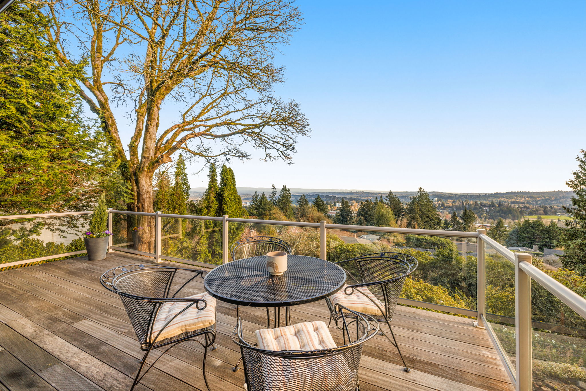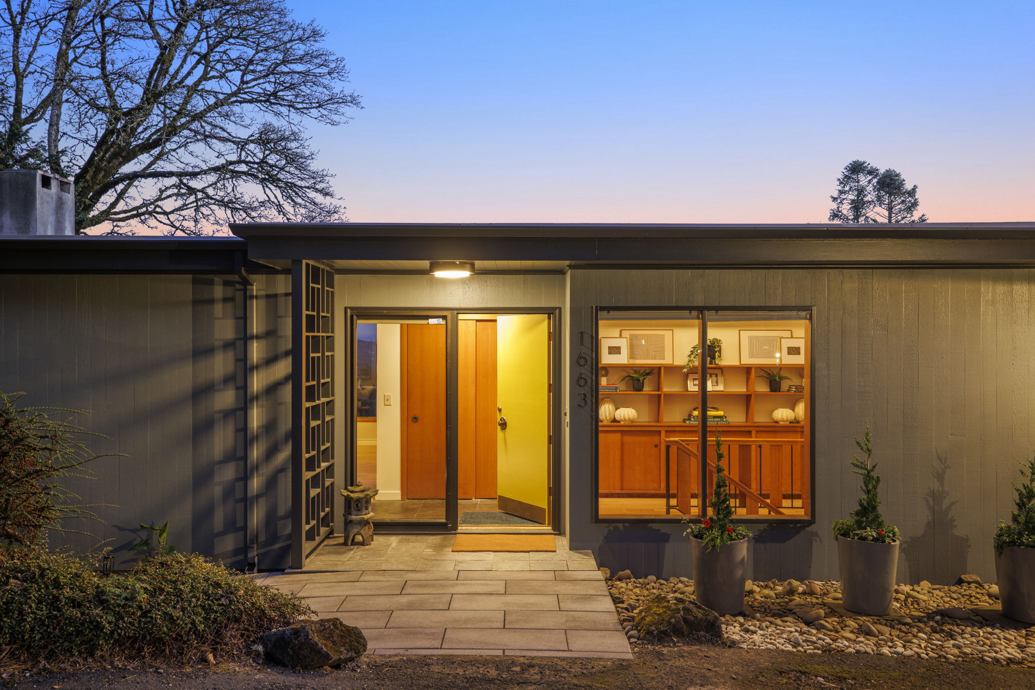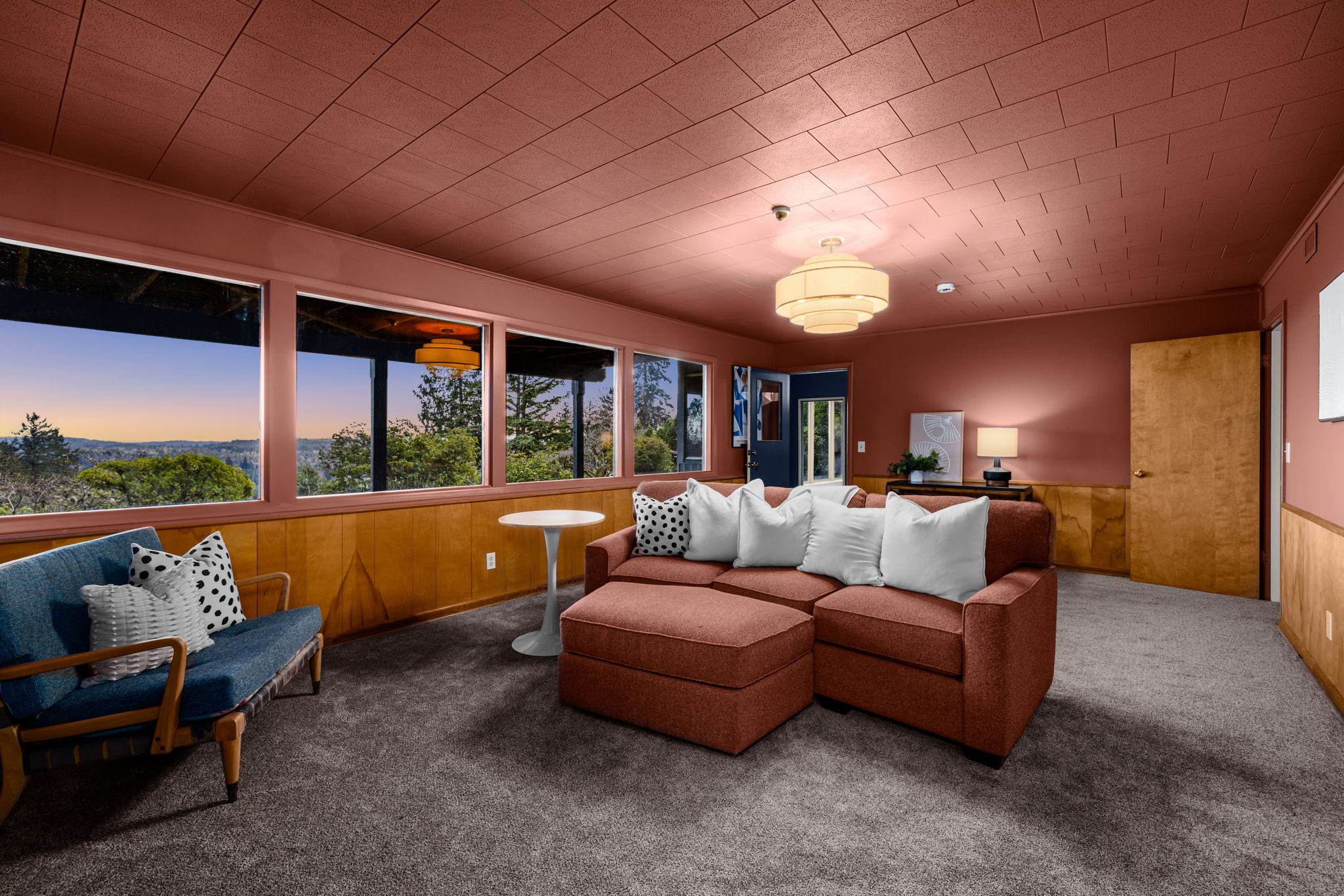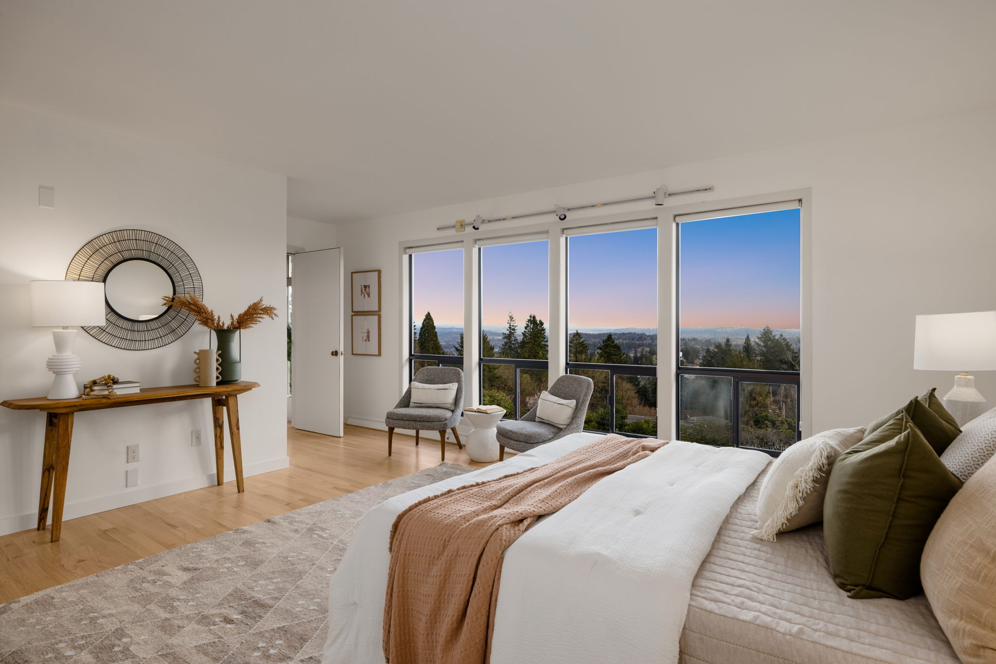 This 1957-built residence is a sight to behold. A modest, quiet aesthetic gives way to remarkable views as far as the eye can see. From east to west–the foothills of the Mt Hood National Forest, the Willamette River winding its way, and expansive southern exposure with valley views. Look west for many varied sunsets. It’s the best of all worlds here; where nature + the city are closer than you think.