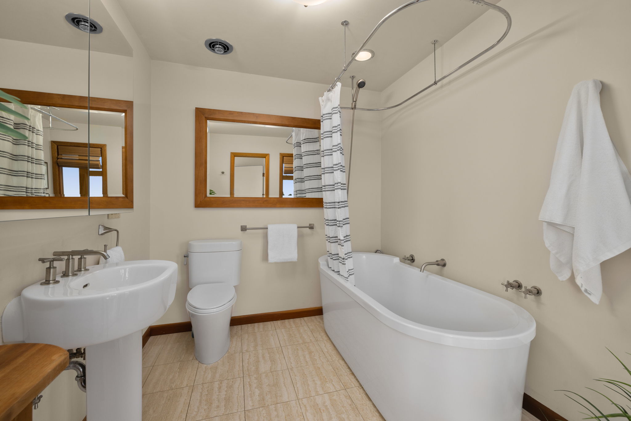 This floorplan offers such ease of living with the primary suite on the main level, with incredible views, even from the bath. Also on the main level is the 2nd bedroom plus a newly renovated guest bathroom with a tiled walk-in shower.