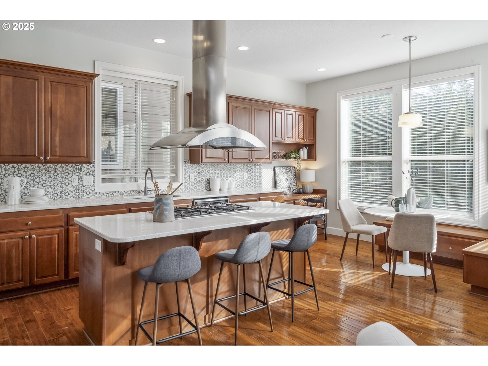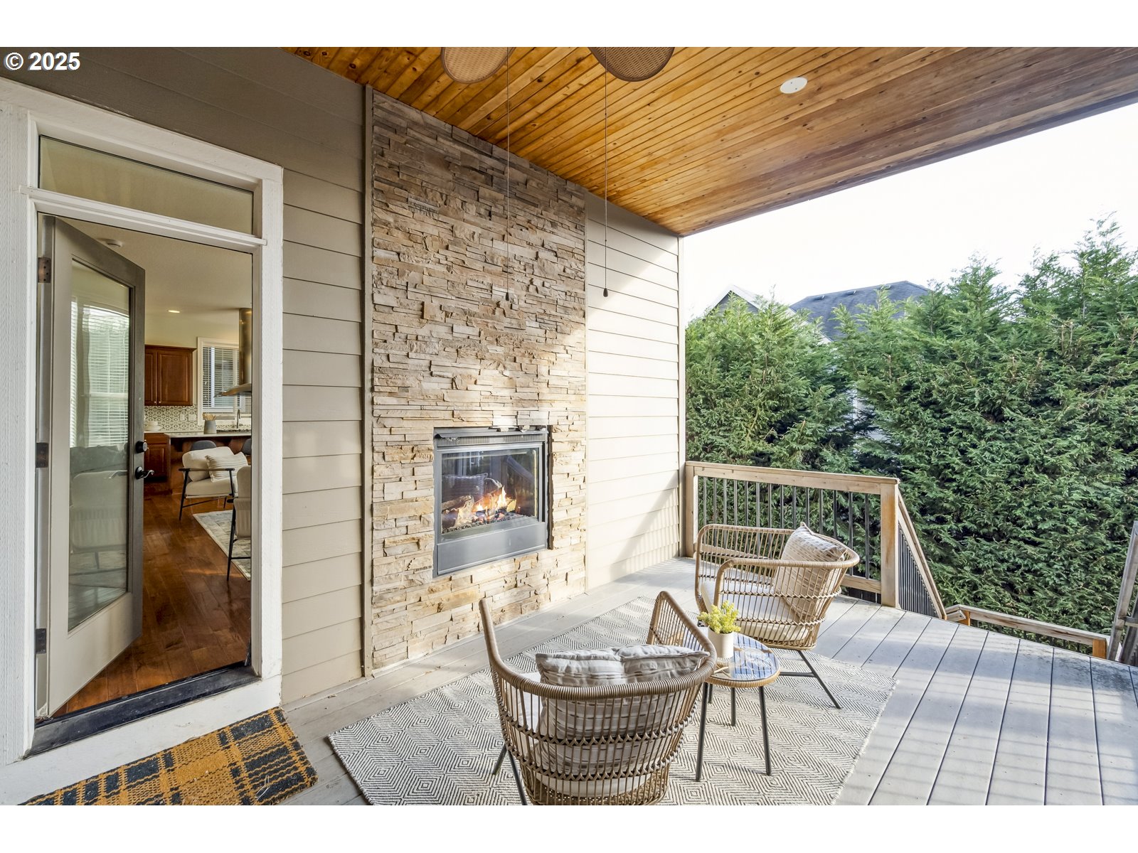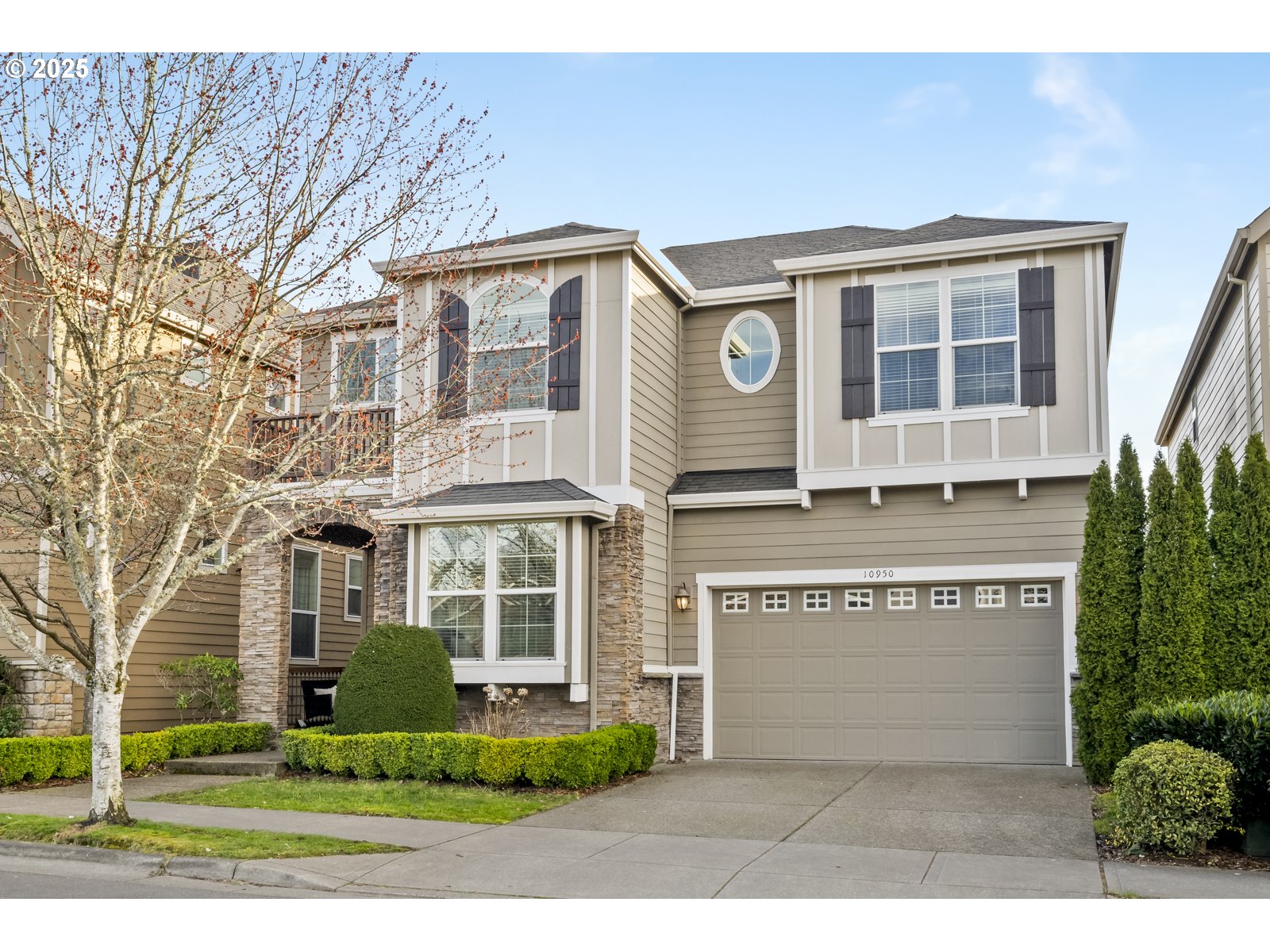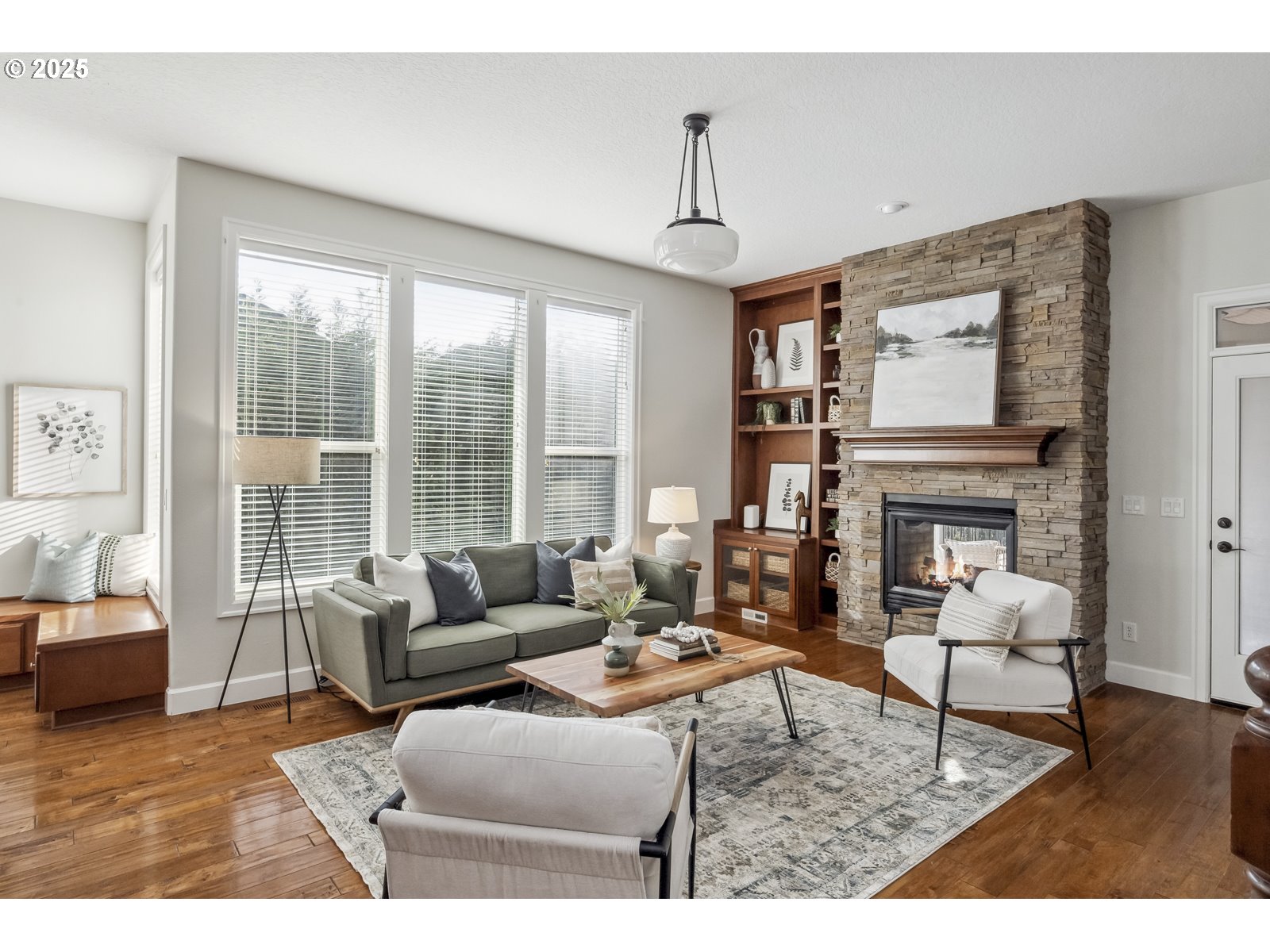 Classically styled, with an inviting front porch, this 5 bedroom, 3 ½ bath home has three levels of living, and offers everything you could want. The high, 9’ ceilings and open floor plan welcome you into this beautiful Iron Ridge Estate home. The main floor offers a large kitchen and living room with a built-in breakfast nook, an eat-in island, pantry, and oodles of counter space. This great room design is perfect for entertaining. Just off the cozy, double sided fireplace, you will find the main floor deck which leads to the private yard. All this plus, an office/den and formal dining room, completes the stunning main floor. The recessed lighting of the stairs invites you up to the 2nd floor which has four bedrooms PLUS a large bonus/entertainment room. The gracious primary bedroom has a vaulted ceiling, huge walk-in closet with built-in closet organizers, soaking tub, and glass encased shower. The 2nd story also offers a large utility room and small deck at the front of the house. The lower level has a third living area with a fireplace, plus a bedroom, full bathroom, and sliding glass door to the lower deck and yard. All this plus an attached oversize garage.