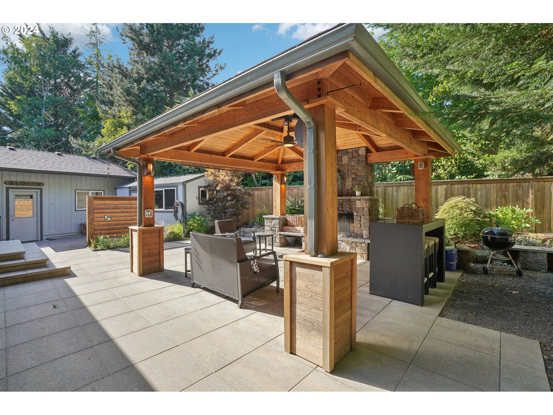 Tucked away on a private 1/2 acre lot in the heart of Cedar Mill, this charming 4 bed / 2 bath home gives you the feeling of being in nature while conveniently located just minutes to Cedar Hills shopping, NW 23rd, and quick access to Sunset Hwy. Take in Southern territorial views from the front deck, enjoy urban farming in the terraced gardens complete with mature berries and chicken coop, and entertain year round in the luxe covered back patio complete with fireplace and bar. Multiple great parks including Lost Park and the Jordan Woods Natural Area are just a quick walk from the front door. The home has lovingly received many updates throughout such as updated bathrooms and kitchen appliances including an induction cooktop and convection oven. The oversized garage is a nice upgrade offering plenty of space for creative projects and storage. The lower level has two spacious bedrooms, an updated bath, a family room that opens out to a patio with viewing area. The lower level also has a laundry room and cold storage area for wine.