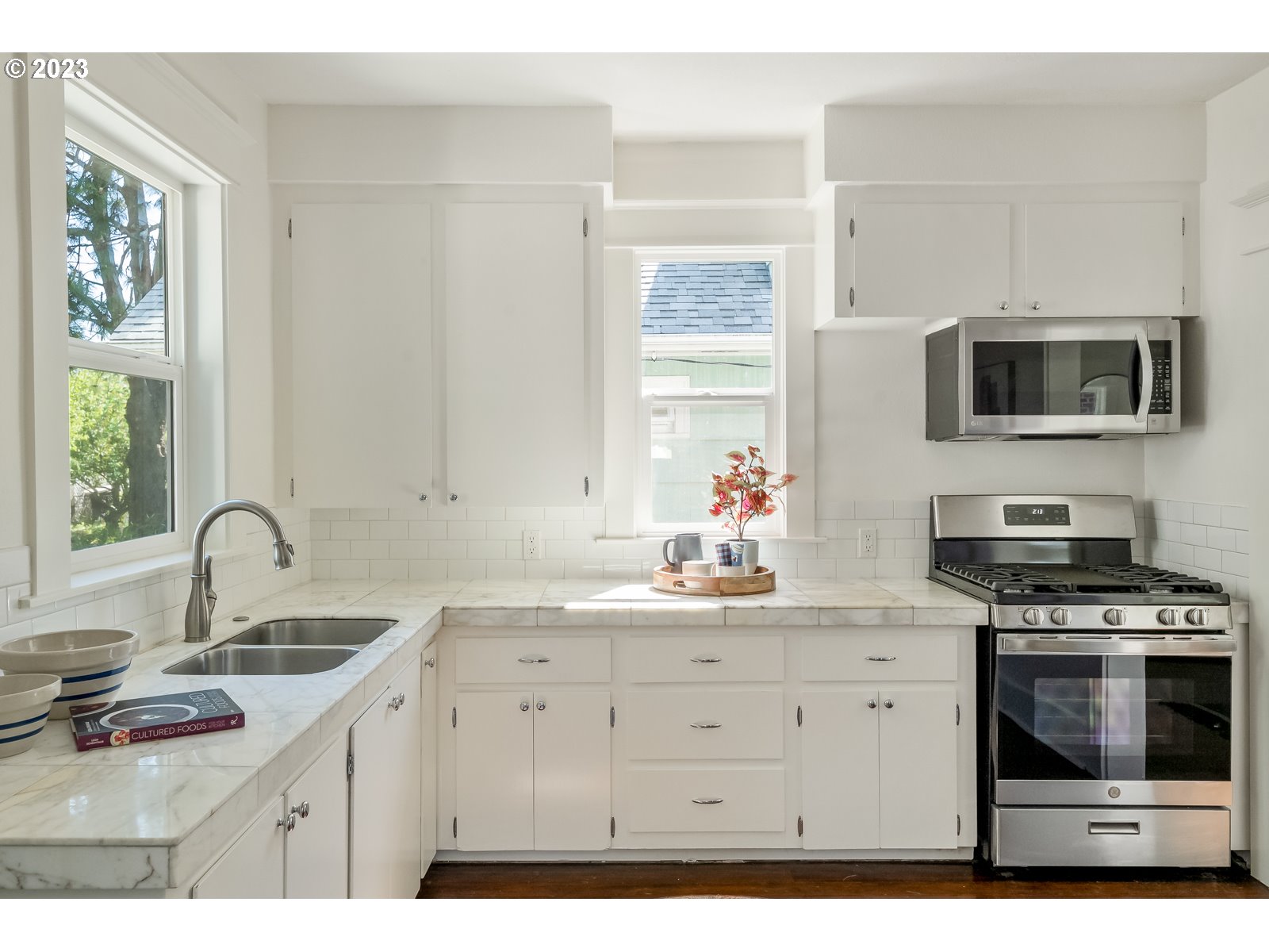 This charming Creston Craftsman is nestled onto a quiet neighborhood street yet close to all the things – parks, schools, shops, cafes, restaurants, transit. When you enter from the large and inviting front porch you’ll find period details such as original hardwoods throughout, wainscoting in the dining room, gorgeous built-ins, period moldings, a clawfoot tub and generous closets in most every room. The main floor has a wonderful circular floor plan with plenty of functional and flexible spaces such as the custom built bookshelf room complete with a window seat for gazing out at the thoughtfully planned and drought resistant landscaping. Upstairs are two generously sized bedrooms with walk-in closets and a newly added (and permitted) bathroom. The unfinished basement has a separate entrance for ADU potential and has been waterproofed, insulated and prepped for your vision. Roof, electric, sewer, windows and plumbing were all updated in 2013. High efficiency gas furnace was installed in 2019, water heater in 2018 and both the interior and exterior were just painted.