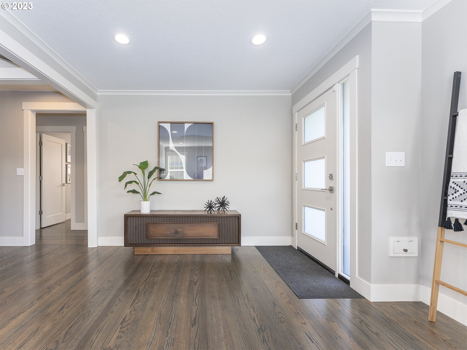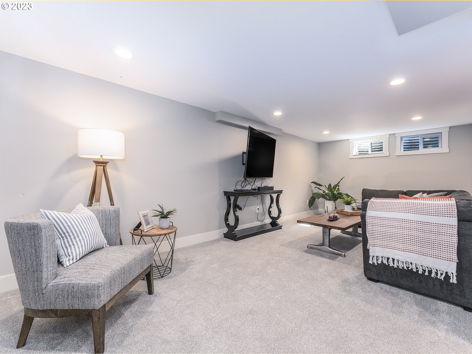 Beautifully remodeled Mid-Century ranch in the Roseway neighborhood. The main floor provides three bedrooms, full bath and hardwood floors throughout. A bright & airy living room with period fireplace and bay window greets you as you enter the home. The open concept kitchen and dining room boast vaulted beam ceilings, 2nd fireplace, & a additional seating area. An expansive island, quartz counters, and stainless-steel appliances complete the kitchen. The fully finished lower level offers space for a generous family room, 4th bedroom, full bath and laundry room. The private fence yard is a tranquil oasis perfect for outdoor entertaining or just relaxing. offering both covered & open patios. Updated mechanical systems, new windows, and tuck-under one car garage.