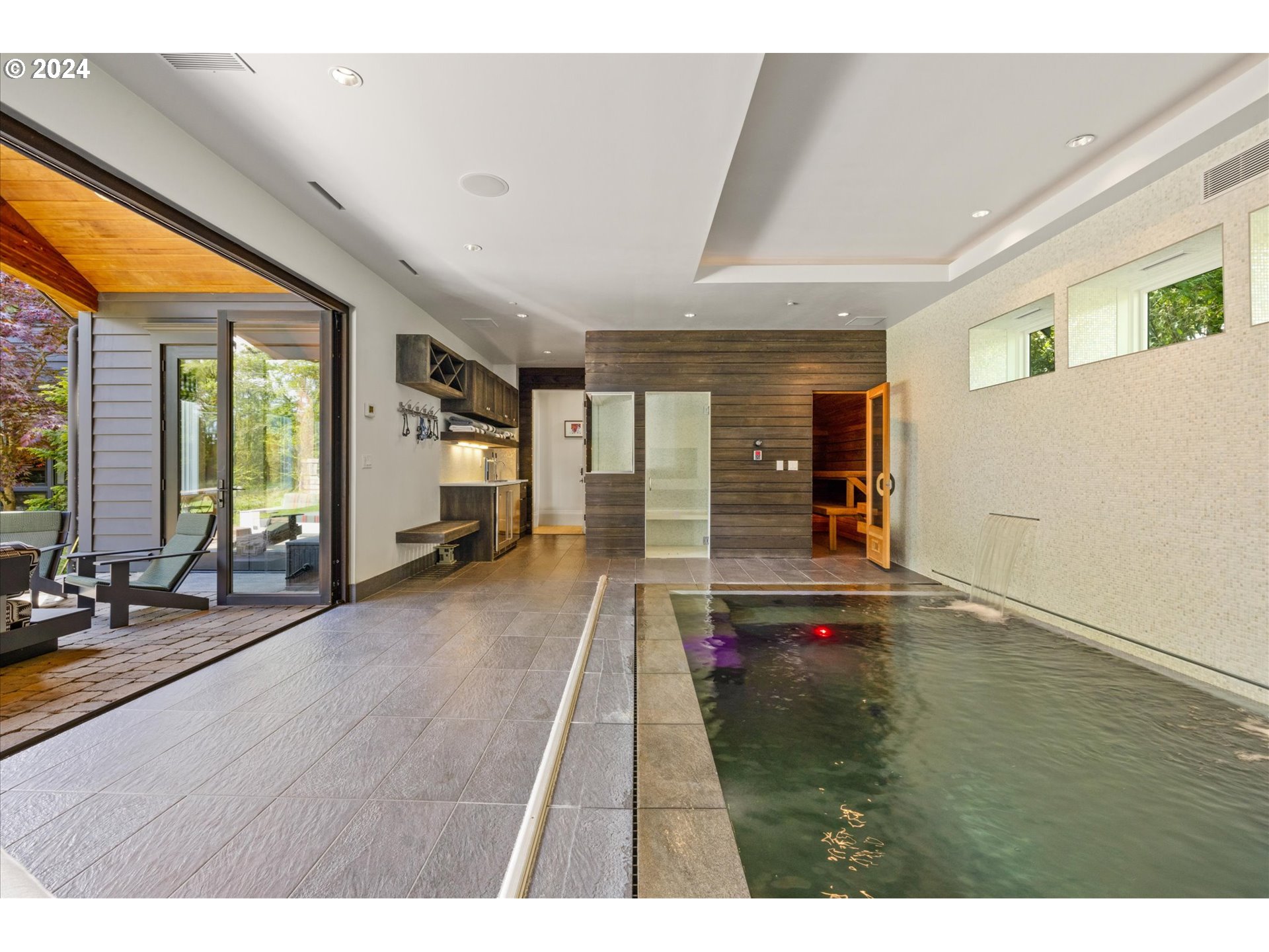 Rare opportunity to purchase one of Dunthorpe’s most spectacular homes combining Old World beauty with modern luxury. This home is truly a work of art. Tucked away on a private drive just a short walk to the Riverdale Grade School, this custom designer home is a dreamy oasis loaded with advanced systems and bespoke finishes. Find tranquility in the luxe relaxation suite with a sauna, steam room, and swim spa adorned with large glass doors opening to the gorgeous covered patio and level yard. Spoil your loved ones with a meal prepared in the decadently equipped chef’s kitchen and sleep soundly in the vaulted primary suite knowing a whole house generator will kick on instantly if power goes out. Surprises greet you around every corner including a hidden entrance in the office which leads to a phenomenal lower level speakeasy bar and lounge with walk-in safe and wine storage, and upstairs you’ll be wowed by the most spectacular crafts / laundry room. The expansive layout feels spacious yet cozy with artfully crafted built-ins and custom features in every room. Enjoy territorial views from the vaulted light-filled primary bedroom with a dreamy en suite bathroom and a sprawling walk-in closet. Superb location just two blocks from Riverdale Grade School and a short hop to excellent shopping and restaurants in Lake Oswego and Portland.