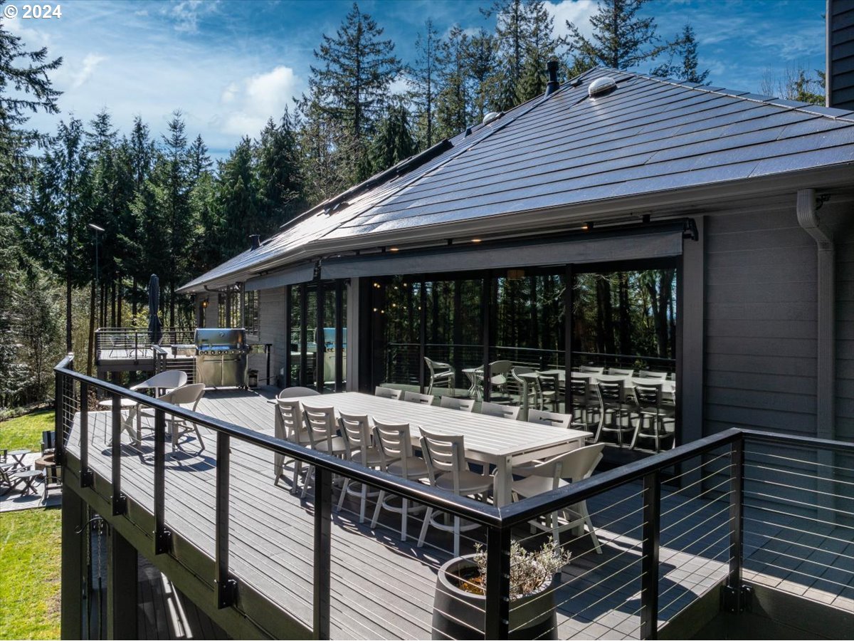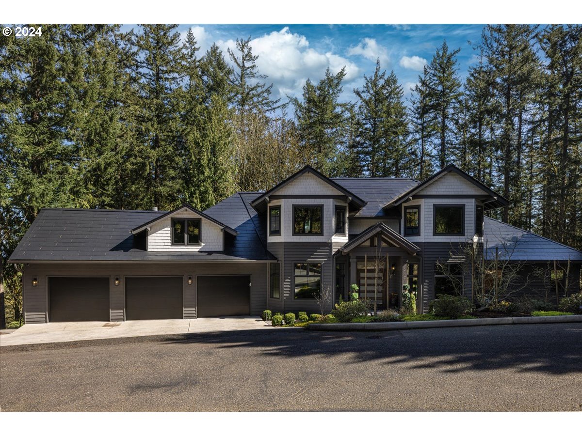 Forested privacy meets modern luxury in this sanctuary of unparalleled sophistication. This impressive, eco-conscious home is perched on 5+ acres of private, enchanting woodland in the iconic West Hills and has been recently & extensively remodeled w/ impeccable design & appointment inside & out. The intuitive smart home “brain” can manage everything from climate control to ambient lighting & the cutting-edge Tesla solar panel roof tiles & power walls & backup generator ensure uninterrupted, efficient power sourcing. No surprise this residence obtained a 10/10 Home Energy Score. The spacious chef’s kitchen is warm & approachable while boasting quartz counters, attractive tile backsplashes, 2 expansive islands, & an incredible list of state-of-the-art appliances including a BlueStar Platinum 8-Burner Range & Ventahood, Miele Wall Oven, Miele Steam Oven, 2 Sub-Zero Refrigerators, a Sub-Zero Beverage Center, Sub Zero Produce Drawers, and a Perlick Dual Zone Wine Reserve – just to name a few. Indoor/outdoor dining & entertaining is seamless via the stunning, contemporary formal dining room or the roomy deck complete w/ high-end sun awnings. 6 spacious bedrooms, 5 w/ ensuite bathrooms & walk-in closets + private balconies off 2 bedroom suites ensures privacy & convenience for all. Additional ½ bathroom on the main – conveniently located off the family room & next to the laundry room complete w/ 2 washers & 2 dryers. Working from home is a breeze thanks to hard-wired, high-speed internet throughout. Get your physical workout in now & wine later in the fully equipped gym and dedicated wine safe. Relax w/ family & friends around the large, built-in firepit, take a swing on the swing set, or a hike thru your own forest. Park & store in the immaculate, epoxy-floored, three-car garage. Easy commute to Nike, Intel, & proximity to the vibrant shops, eateries, & cafes of NW 23rd & NW 21st. This exceptional property is not just a place to live, but a retreat to thrive.