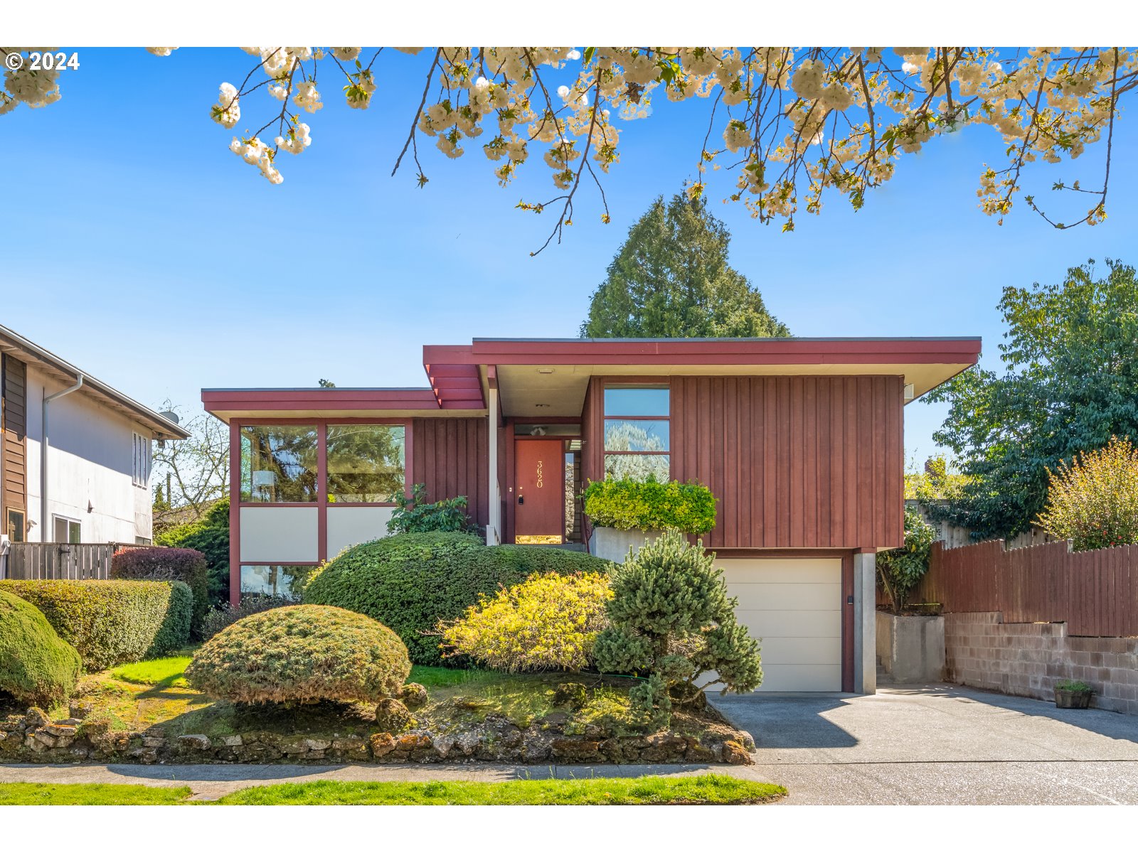 A Mid-Century Masterpiece. A Usonian Unicorn in Coveted Concordia. Custom built with an honorable history. In 1955 Lillian Durig asked her architect brother Stephen Mayer to design her a Usonian style home here in Portland. Famed Frank Lloyd Wright was the acclaimed designer behind this stunning style of architecture. The Usonian style celebrated simplicity. Straightforward interiors that lacked ornamentation. This treasure boasts tried and true Usonian characteristics including an open floor plan, floor to ceiling windows, loads of natural light, handsome horizontal lines, a low flat roof with overhangs, and beautiful board-and-batten cedar siding. Well preserved and pristine. The interior is incredible with handsome handpicked fir grain paneling, a central fireplace with a comfortable concrete hearth, sleek shelving, cool cabinetry, honorable hardware, original light fixtures, and warm and welcoming earth tones. The functional layout includes 3 bedrooms and a bathroom upstairs and a lower level that lures with a fabulous family room, second bathroom, laundry room, and storage. The oversized two car tandem garage is gold. The backyard is private and peaceful with lovely curated landscaping. In a noteworthy NE neighborhood close to Fernhill Park, NE 42nd, Killingsworth and Alberta. An outrageous opportunity to own an awe-inspiring work of art.