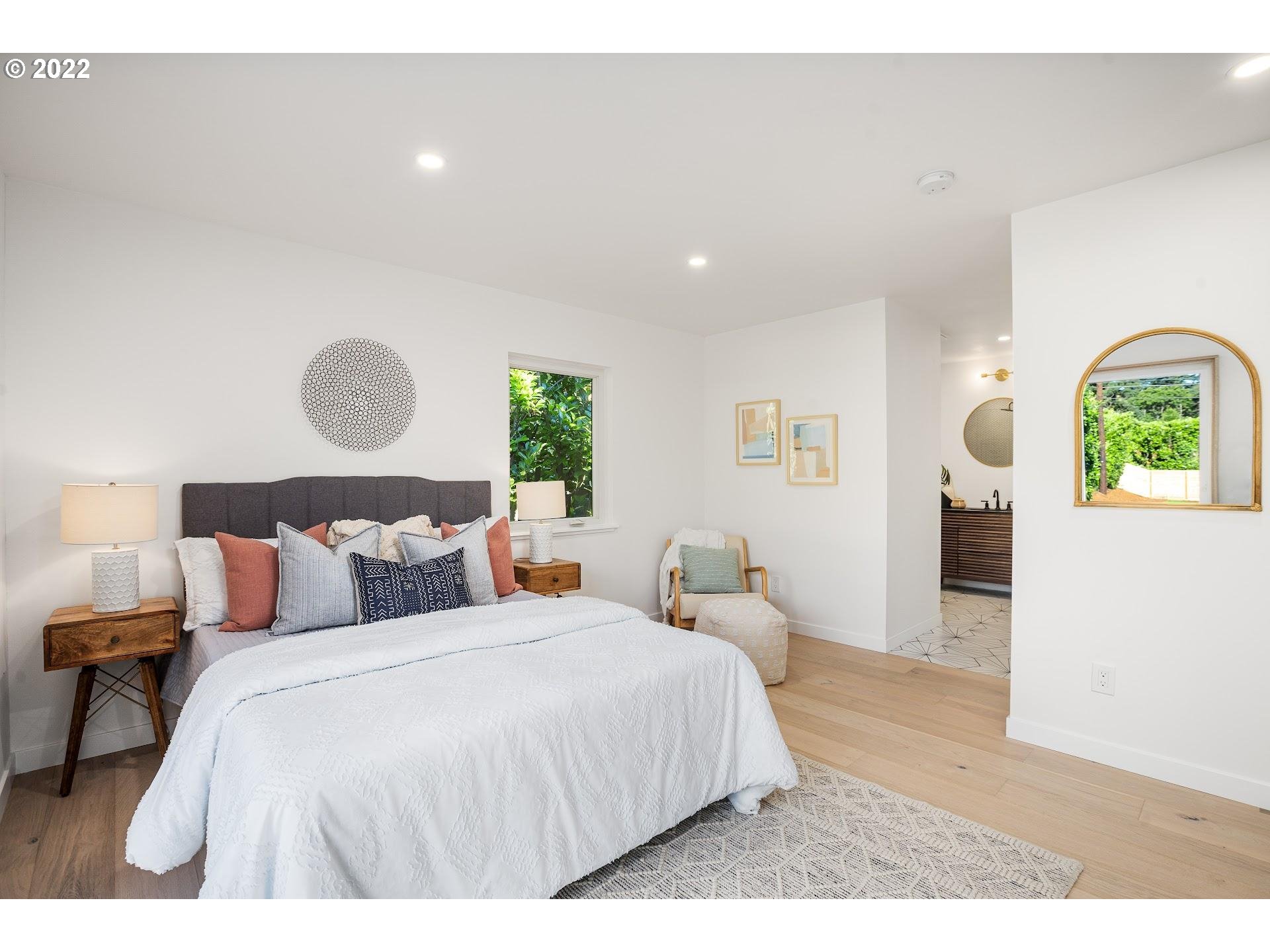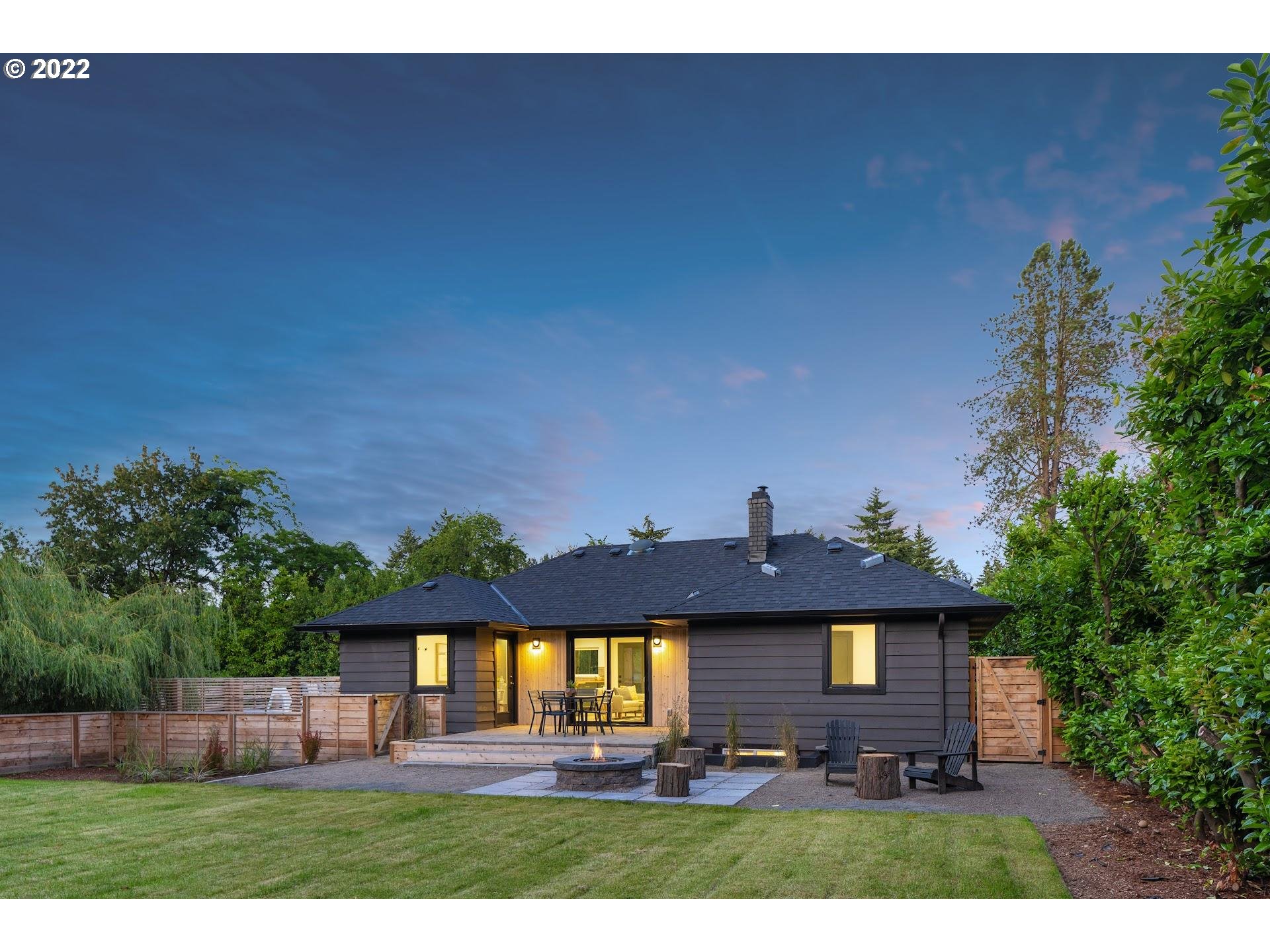 Rare opportunity to own a stylish modern home on a sprawling 1+ acre lot in a serene country setting with a peaceful creek, level fenced yard, private grounds, and endless space at the intersection of SE Portland and Milwaukie. This home has been masterfully updated with designer finishes and a fresh open layout. Natural light flows the interior spaces which feature two bedrooms on the main level and a large 3rd bedroom plus bonus office / den space in the large lower level. A private oasis!