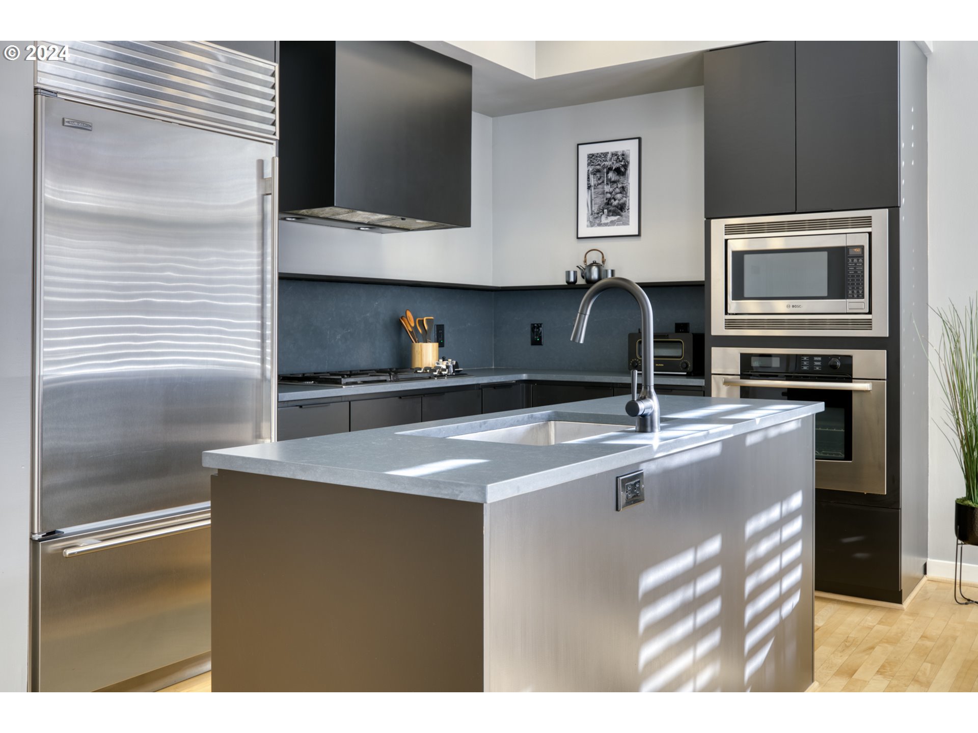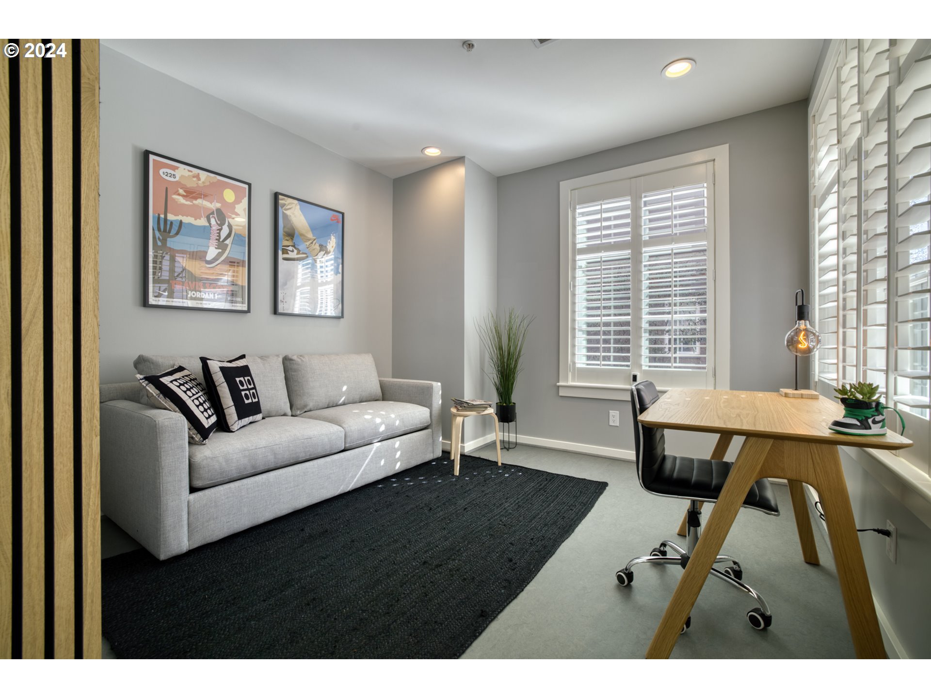 End-unit townhome incredibly located in the heart of The Pearl with EV charging and storage in the attached garage. Combining the best of Japanese and Scandinavian modern design elements, the Japandi style shines through in this stunning light-filled home. Step inside to see the perfect blend of simple elements with a connection to the earth that come to life through oak slats, stone counters, black cabinetry & hardware, and cement tones. Brand new Forbo Marmoleum flooring throughout the home is made from natural raw materials and imported from Europe. Both flooring and wooden slats have sound reduction properties, bringing additional acoustic protection to an already extremely well sound-proofed property.The recently remodeled designer kitchen features a Sub-Zero fridge, Wolf range, matte Soapstone counters, new cabinet door fronts, an extra deep 30″ sink, updated electrical, a stylish built-in range hood, and a balcony to bask in some sunshine with your morning coffee.The ground level features a bonus 3rd bedroom or office along with the garage which is conveniently accessed from a quiet alley and features an EV charging outlet and generous storage. The third level features two bedrooms and two full baths including the spacious primary suite with a custom walk-in closet, double sinks, an oversized double shower, and a high-end Toto bidet. This central Pearl location is a dream for walking to the incredible restaurants, cafes, shops, and parks that are right outside the front door.