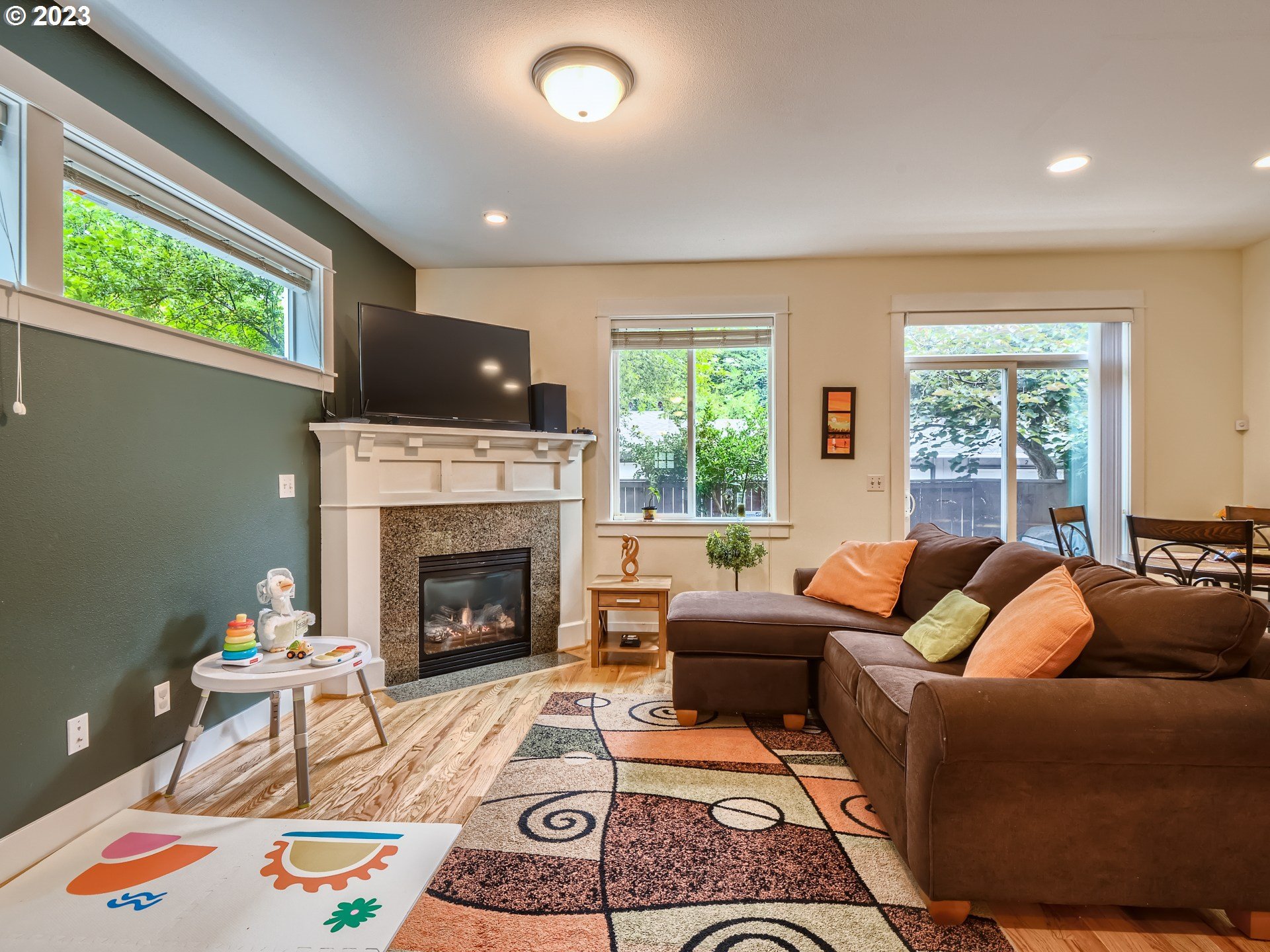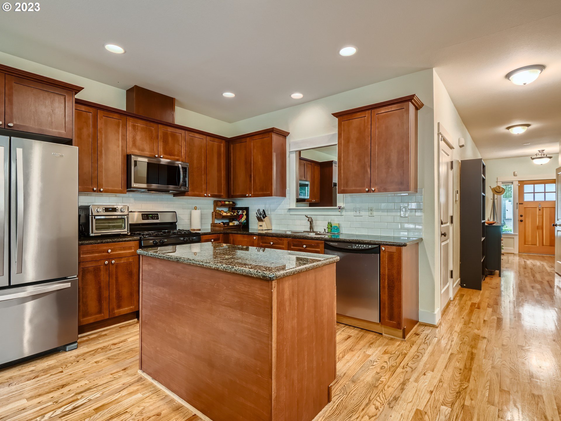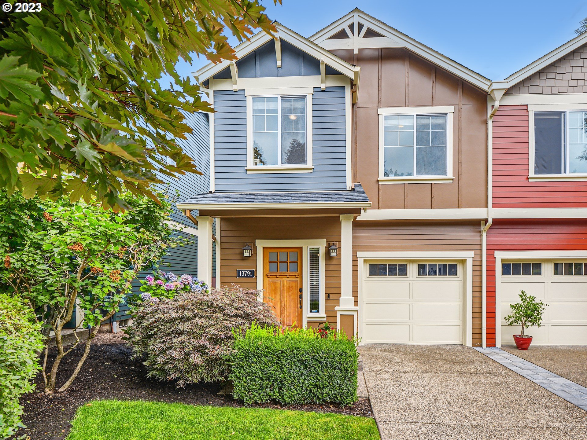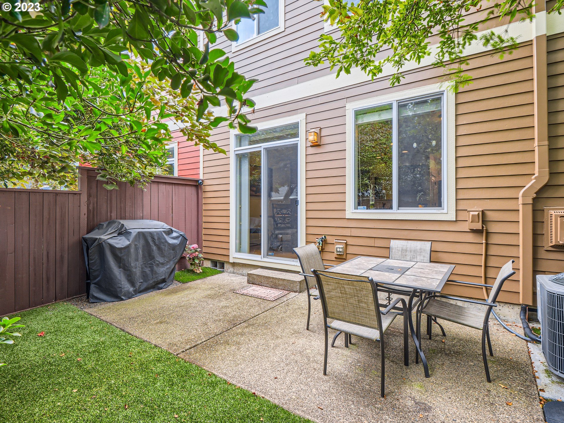 Nice end unit Townhome that provides additional windows for light! Beautiful island bar kitchen with granite counters and stainless steel appliances, including the refrigerator. Cozy gas fireplace in the great room that leads to private low maintenance back yard with newer artificial grass and patio! This home has many upgrades including real hardwood floors on through out both floors and the staircase steps! Vaulted owners suite with a soaking tub, double sinks, walk-in shower, tile floor and walk-in closet. Tile floor in hall bath and laundry room. New A/C! Secluded fenced back yard with no houses behind. 4 additional visitor parking spaces across the street. HOA covers the exterior maintenance, front yard maintenance, common area’s and insurance on portion townhouse, Newer exterior paint and all the front doors in this community will be re-finished at the HOA’s expense. Washer & Dryer included. Progress Ridge Mall, New Seasons, restaurants, Big Al’s, Cinetopia and shopping all just minutes away! You will be impressed!
