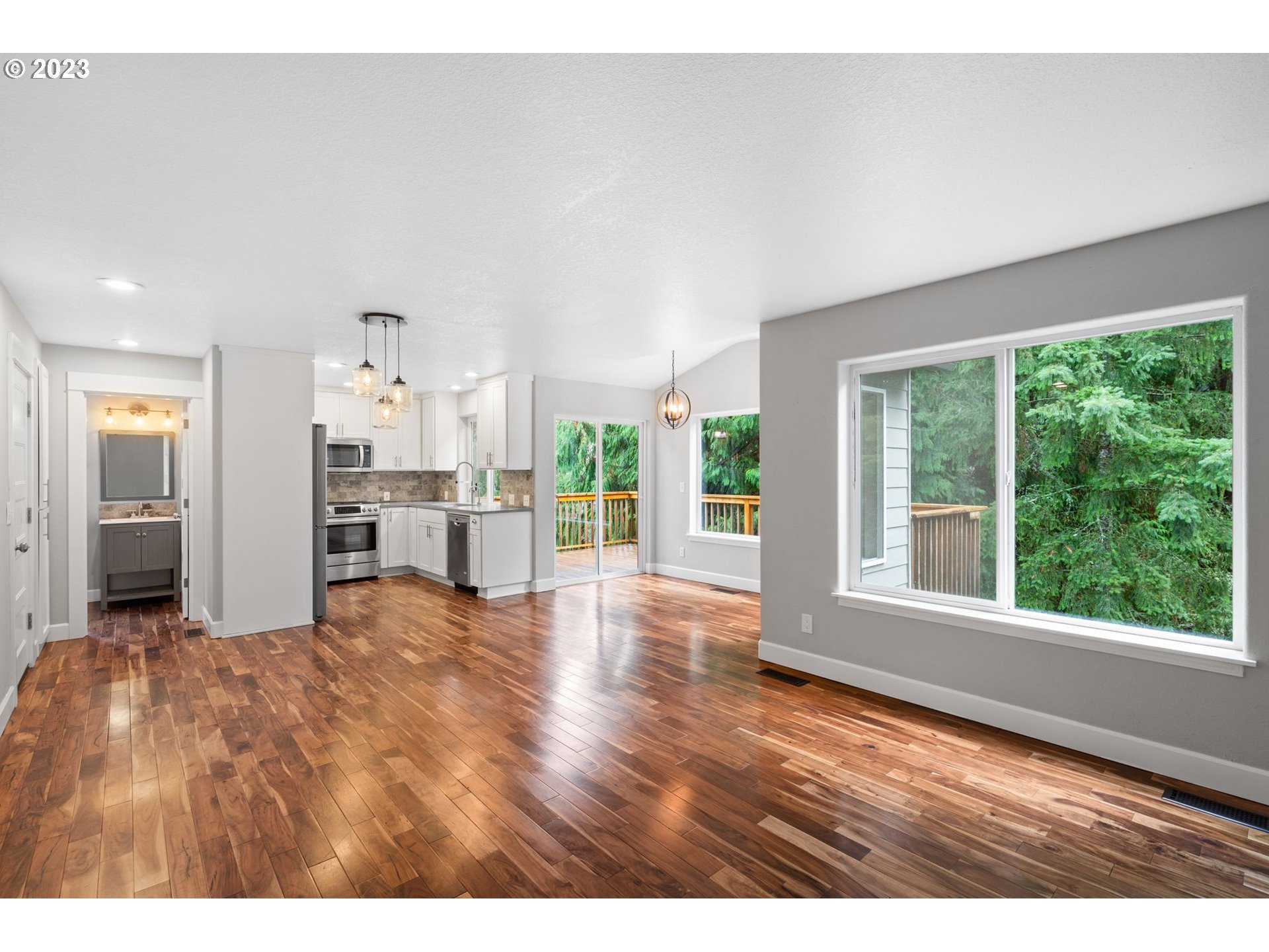 Welcome to your dream home nestled in the heart of Progress Ridge! This charming 3-bedroom, 3.5-bath home perfectly blends comfort and convenience. The living space offers a seamless floor plan that comes to life with an abundance of natural light and gorgeous acacia hardwood floors. The kitchen features stainless steel appliances, sleek cultured-stone countertops and ample cabinet space. But the allure doesn’t stop there! This home includes a large finished basement that could be used as a home theater, home office, fitness area or an entertainment space. The basement conveniently opens to a separate deck, creating an ideal spot for outdoor gatherings or a quiet retreat. With a private entry off of the side of the house, this space could also be utilized as an additional living quarters.The low-maintenance yard captures the essence of Oregon beauty with a Forest Park-like setting that offers both tranquility and privacy. Picture yourself enjoying morning coffee or evening cocktails in this peaceful retreat.Situated less than a half-mile away from Progress Ridge, you’ll have access to a vibrant array of amenities including restaurants, retail shopping, a grocery store for your daily needs, a movie theater and bowling for family fun. Located within the Beaverton School District boundary, this home is in the Mountainside High School, Conestoga Middle School and Scholls Heights Elementary attendance area.