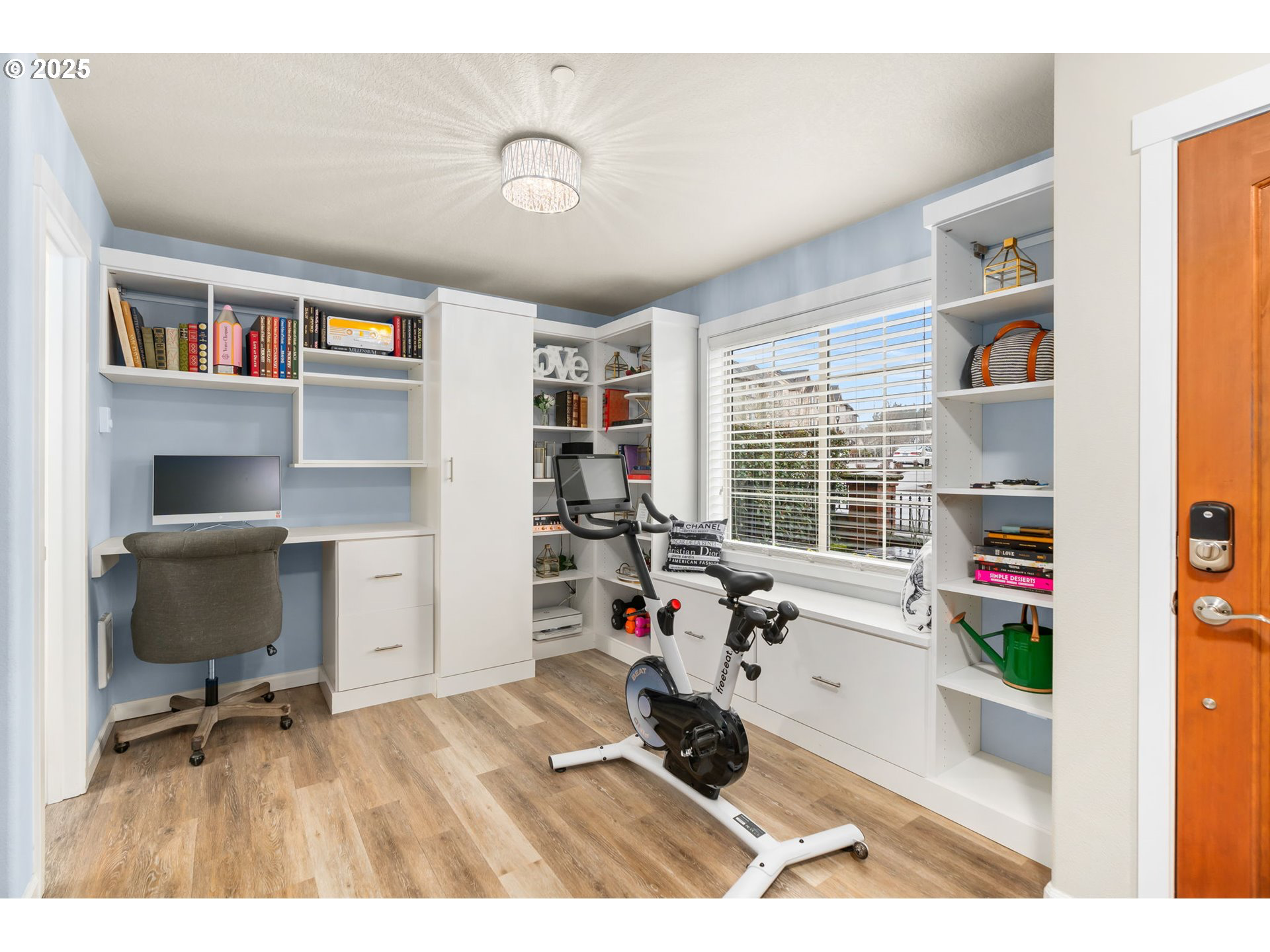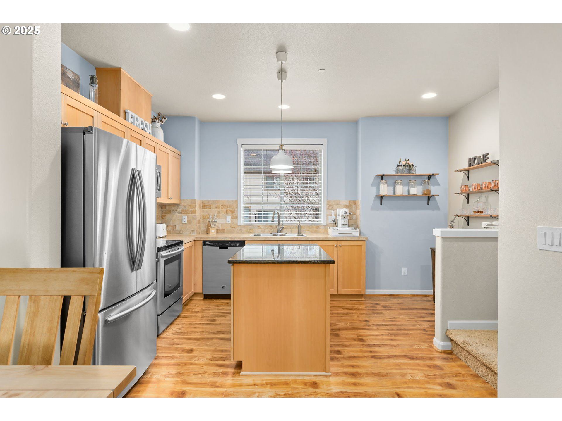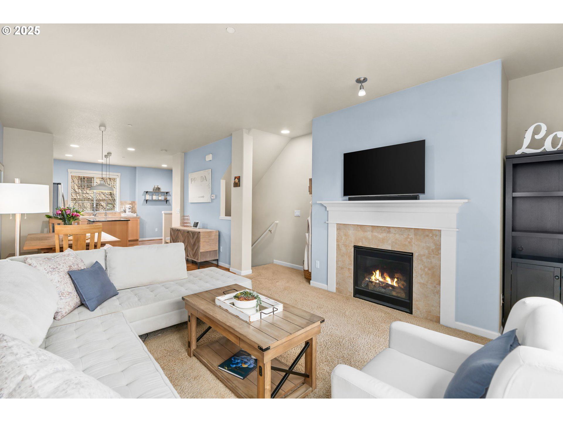 Charming townhome in Villebois featuring a front courtyard perfect for a firepit and outdoor seating. The first floor flex space has custom built-ins and a half bathroom. The main level has a balcony, cozy fireplace, and a spacious kitchen with stainless steel appliances, tile countertops, and an island with granite counters. Large windows let in plenty of natural light. Short walk to many community amenities including pools, parks, and pickleball & tennis courts.
