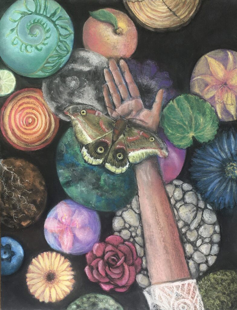 Working in pastel allows her to be nimble. Ideas can be worked into an existing composition spontaneously. Details can be purposefully vague or carefully articulated. Color and texture are easily transformed. Ideally in the end, the finished piece has not been transcribed from an original idea, it has evolved.