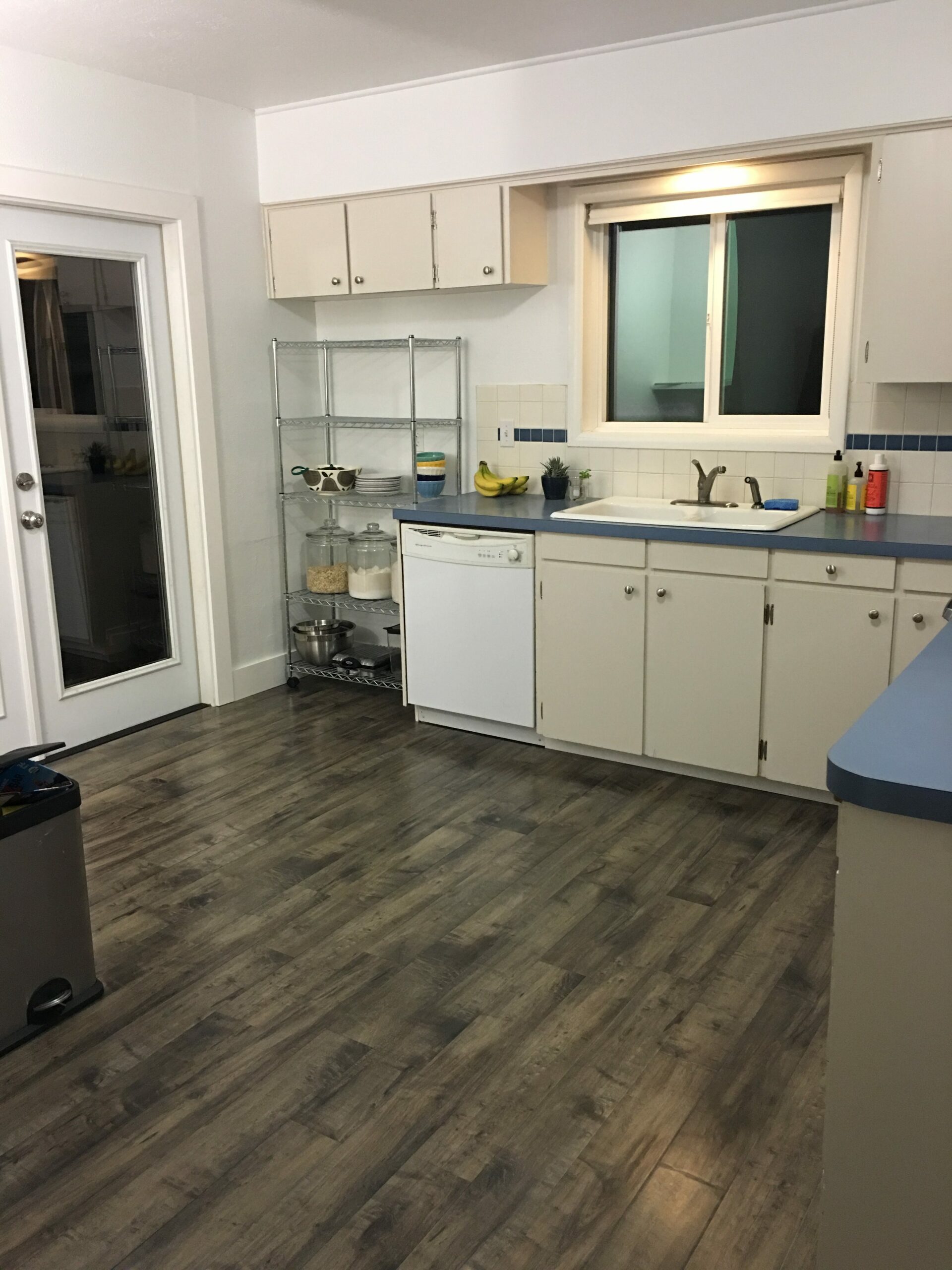 And that’s how our story started. After a quick visit to the house, Chris and I declared that the blue must go. We threw out some practical idea’s which we had learnt from kitchen renovations in melbourne about the materials that don’t cost and arm-and-a-leg. Materials we use all the time, know the cost, where to purchase and if its in stock. With only 1 1/2 weeks, this amazing family pulled together, and executed the plan. They did this. They did it on a budget and tight timeline. All five of them chipped together working as a team to make it happen. I’m so tickled that they did it. Its so hard to remodel while living in a space. Add three children to that mixture, and you can only imagine. So proud of them! WOW!